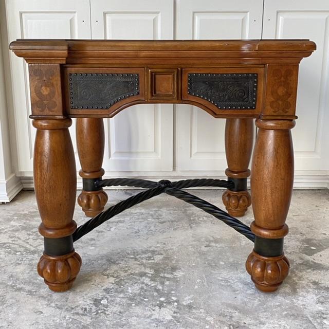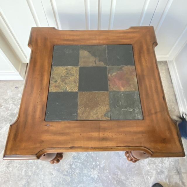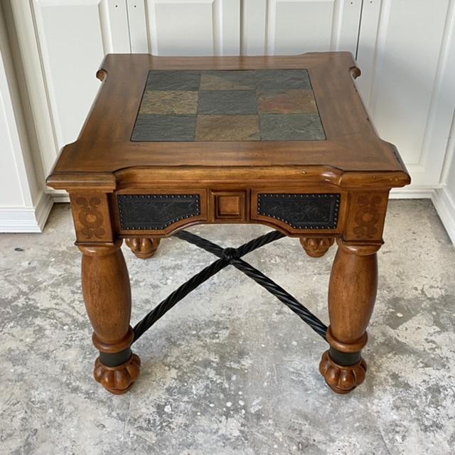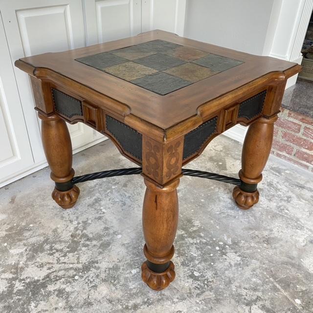 Heavy Wood & Slate Square Accent Decorative Table
