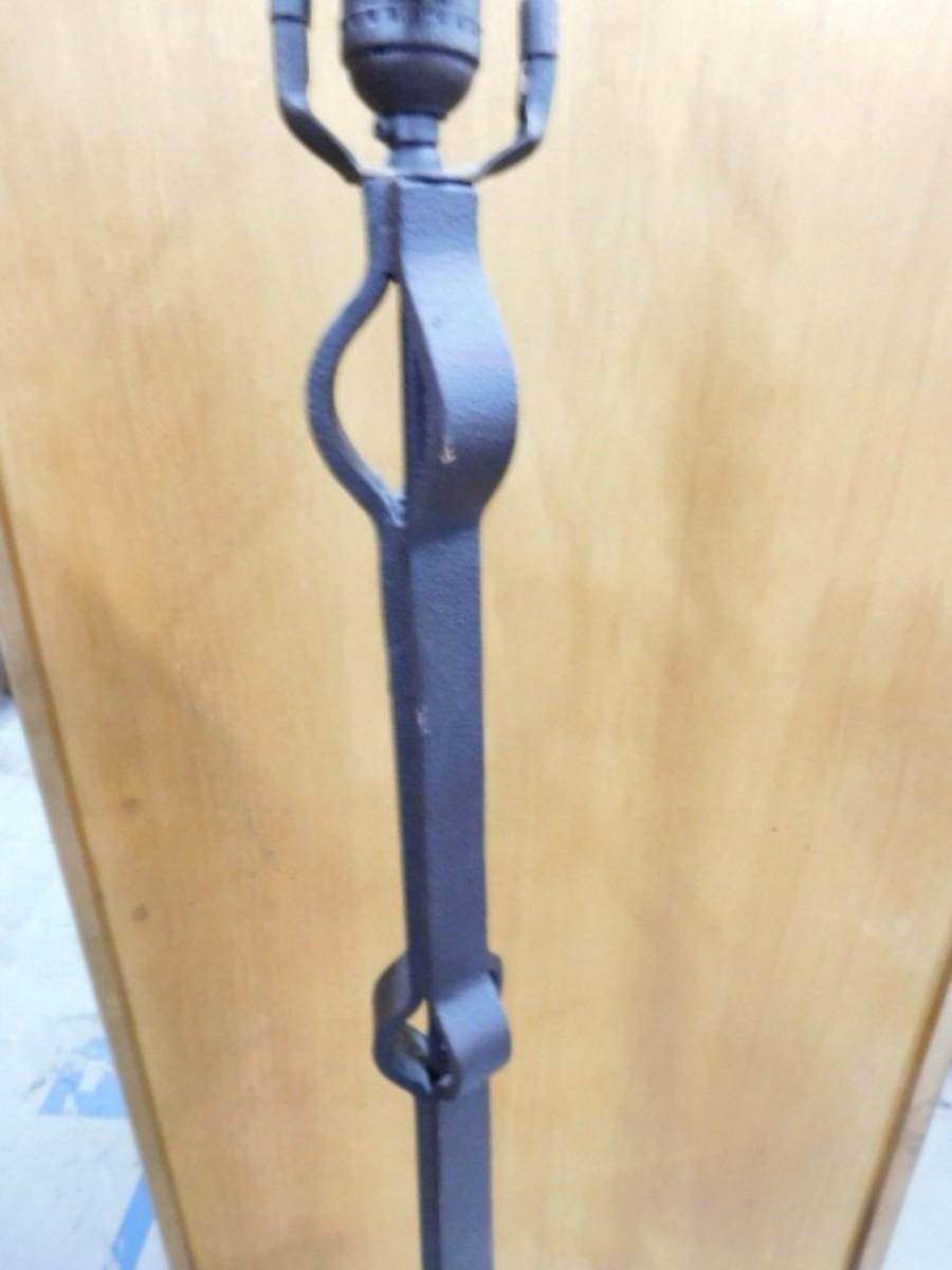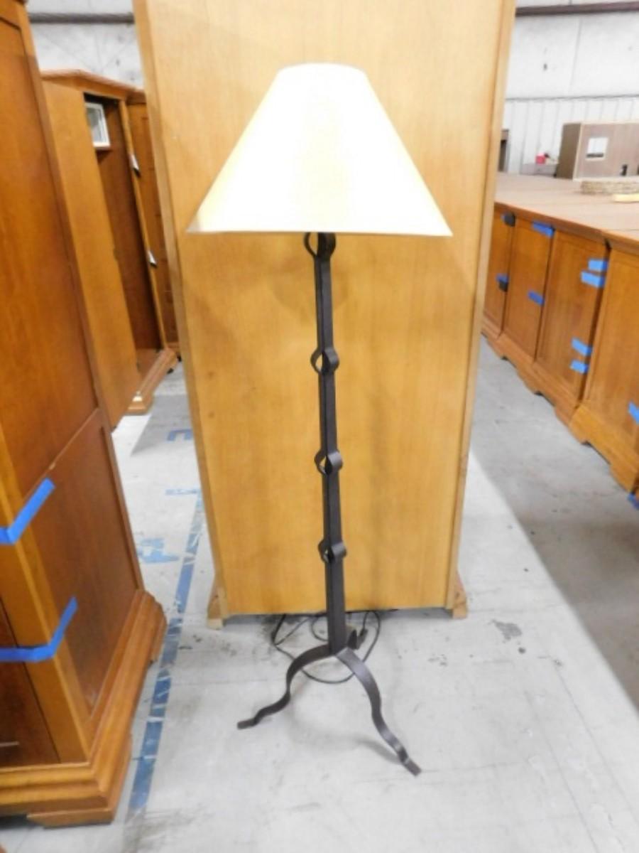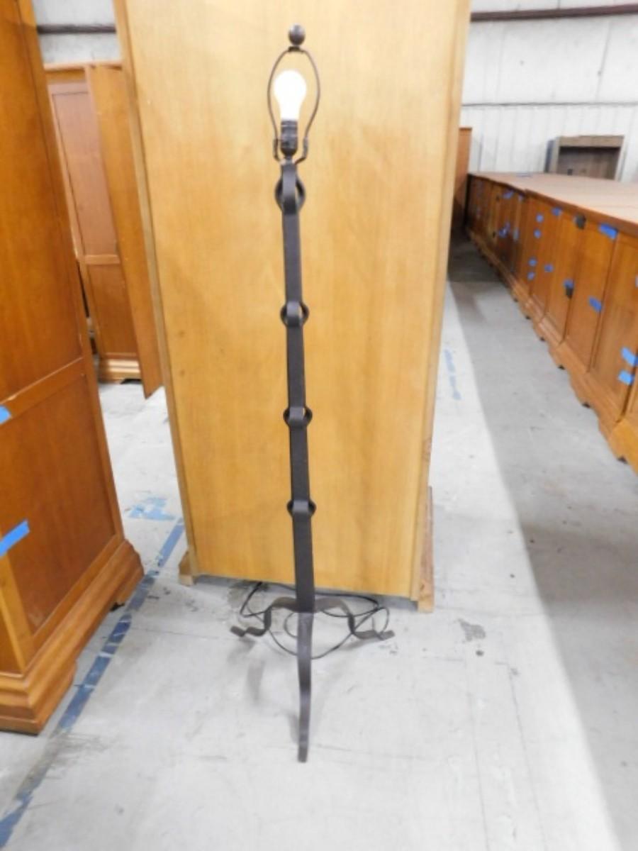 Heavy Wrought Metal Rustic Tri-Ped Floor Lamp Choice B. Expect some wear or scratches to the finish. Shipping option available via freight or local mover at Buyer's expense. Buyer must have all shipping scheduled within the stated dates and times of pickup. Recommended local mover is Beaty Bros. Moving 828-201-2982