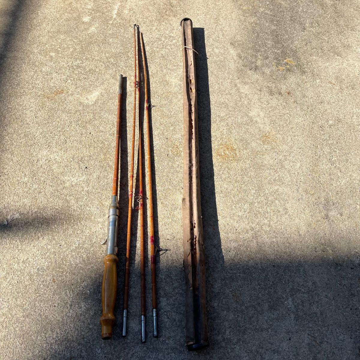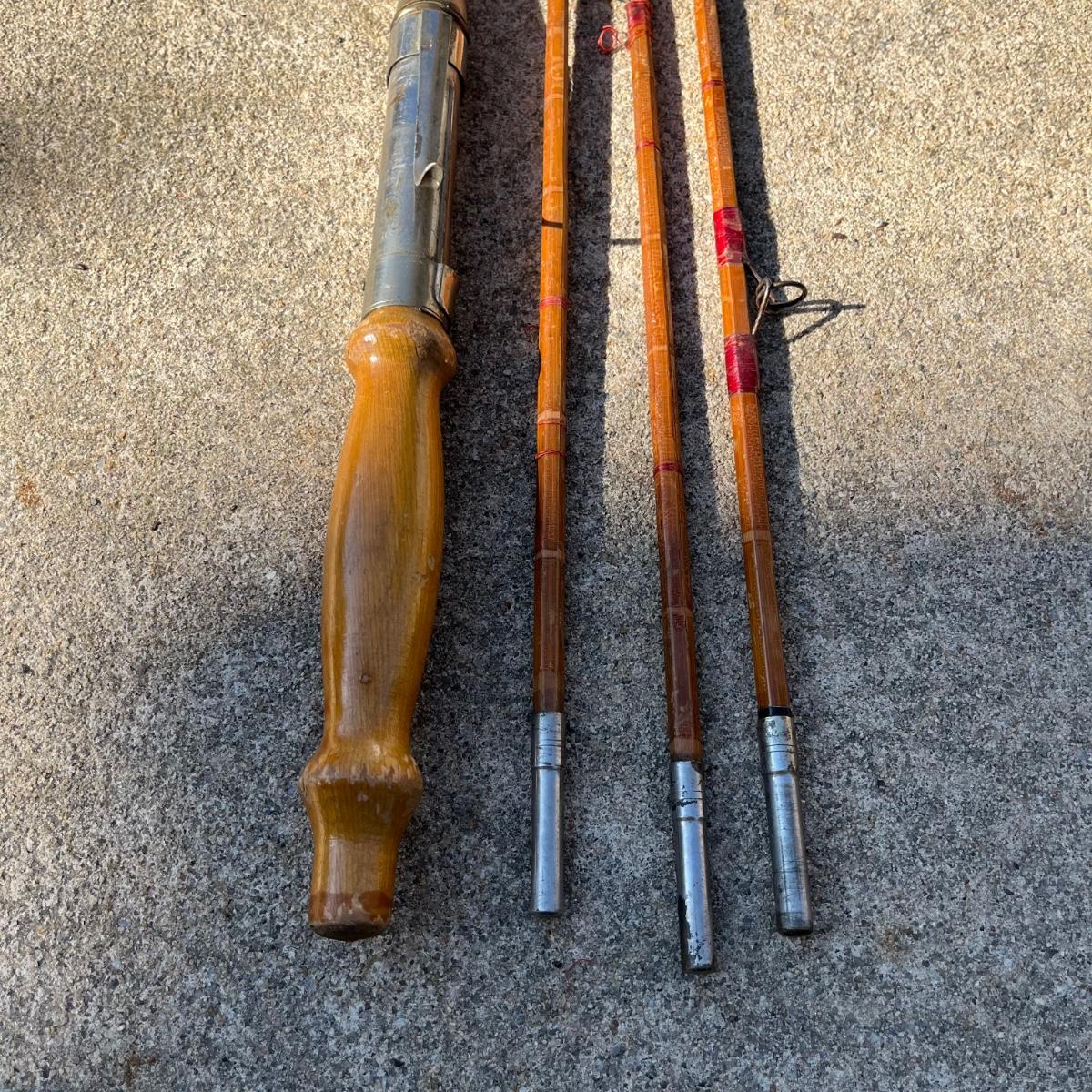 Lot includes a Heddon Dowagiac bamboo fly rod. Rod come on four pieces, with three end pieces. Three end pieces measure 36” long and reel mounting piece measures 26”.