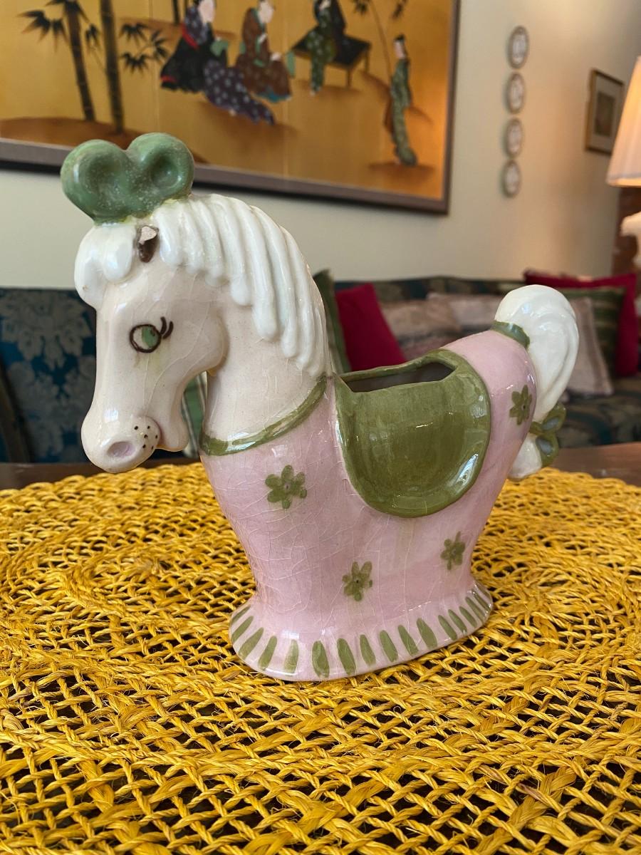 Hedi Schoop Porcelain Figurine Green and Pink Pony