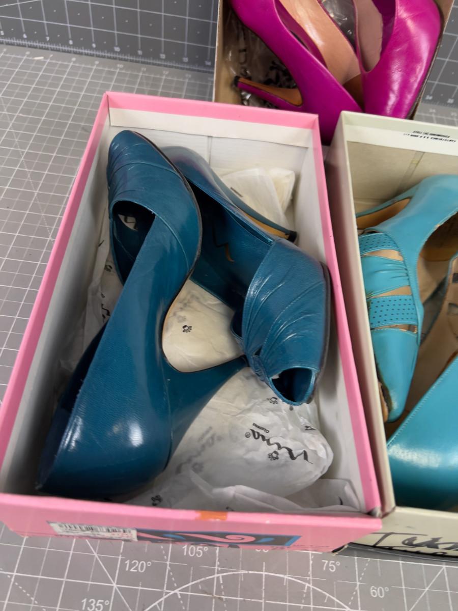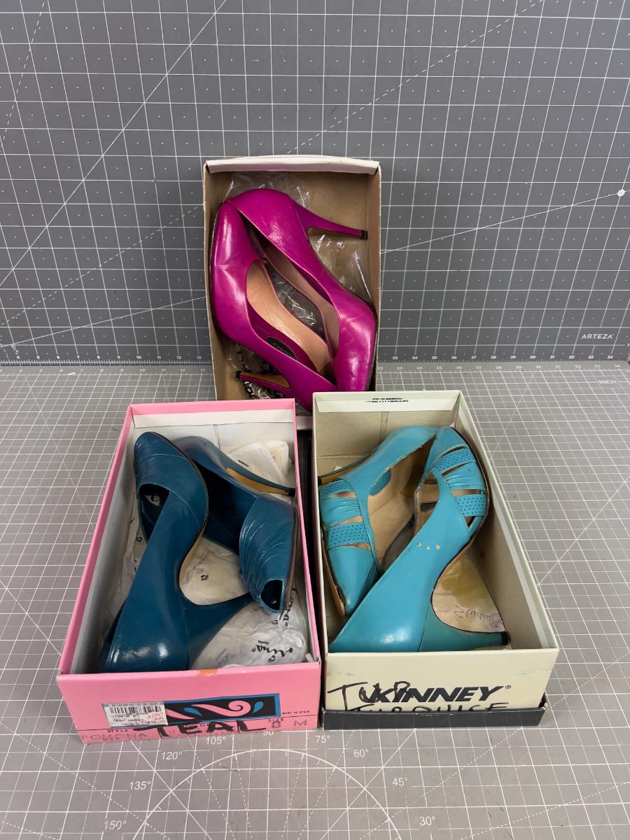 HEELS: Teal, Dark Turquoise and Pink Size 8