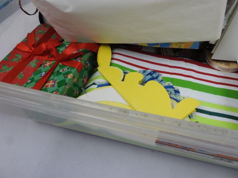 Hefty Bin Full of Various Gift Wrapping: Tissue Paper, Ribbons, Bags, Tins, and More