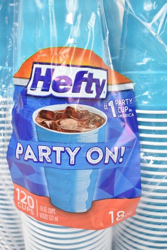 Hefty Party On! 120 Cups, 18 oz Blue & Ultra Soft, 12 Mega Rolls - New