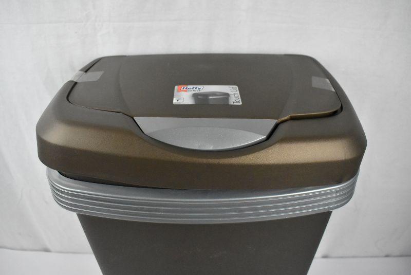 Hefty Select Touch Lid Garbage Can, Brown & Gray. Lid Doesn't stay on or closed