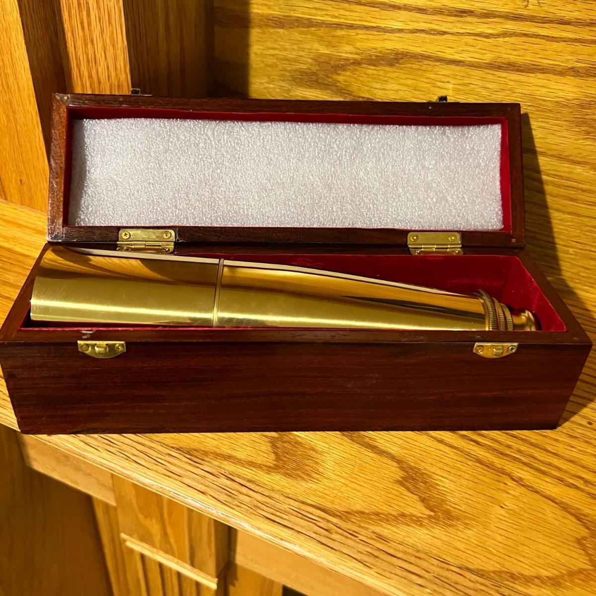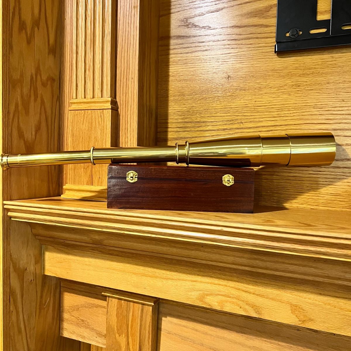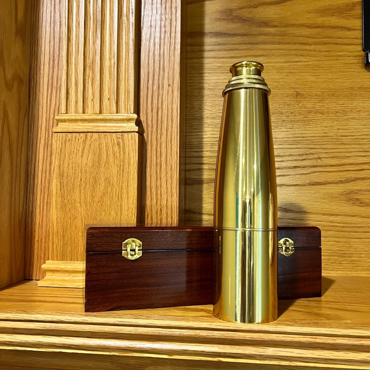 New! The 18x50 Collapsible Anchormaster Spyscope Telescope from Barska is a member of the Classic Connoisseur Collection. There is nothing that expresses classic elegance and traditional sophistication more than brass. This precision-made, high quality brass optical product makes a stunning addition to any décor and is as functional to use as it is pleasant to look at. The collapsible spyscope extends to 28" inches for viewing and collapses for storage. It is stored in an elegant mahogany storage chest.