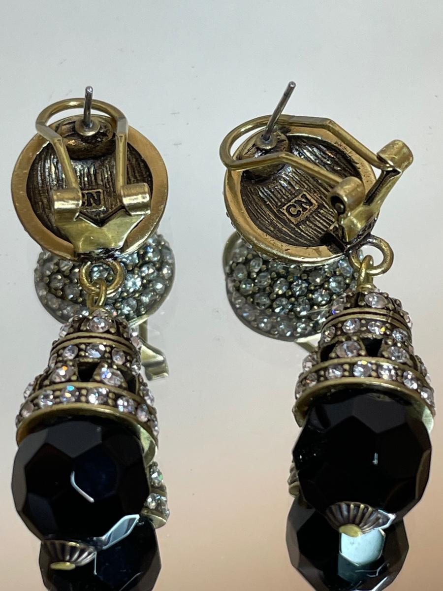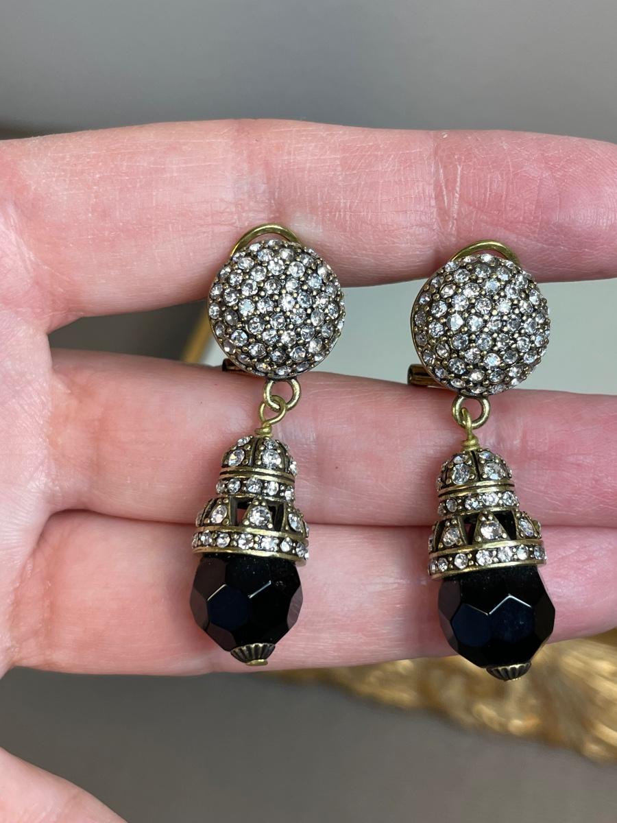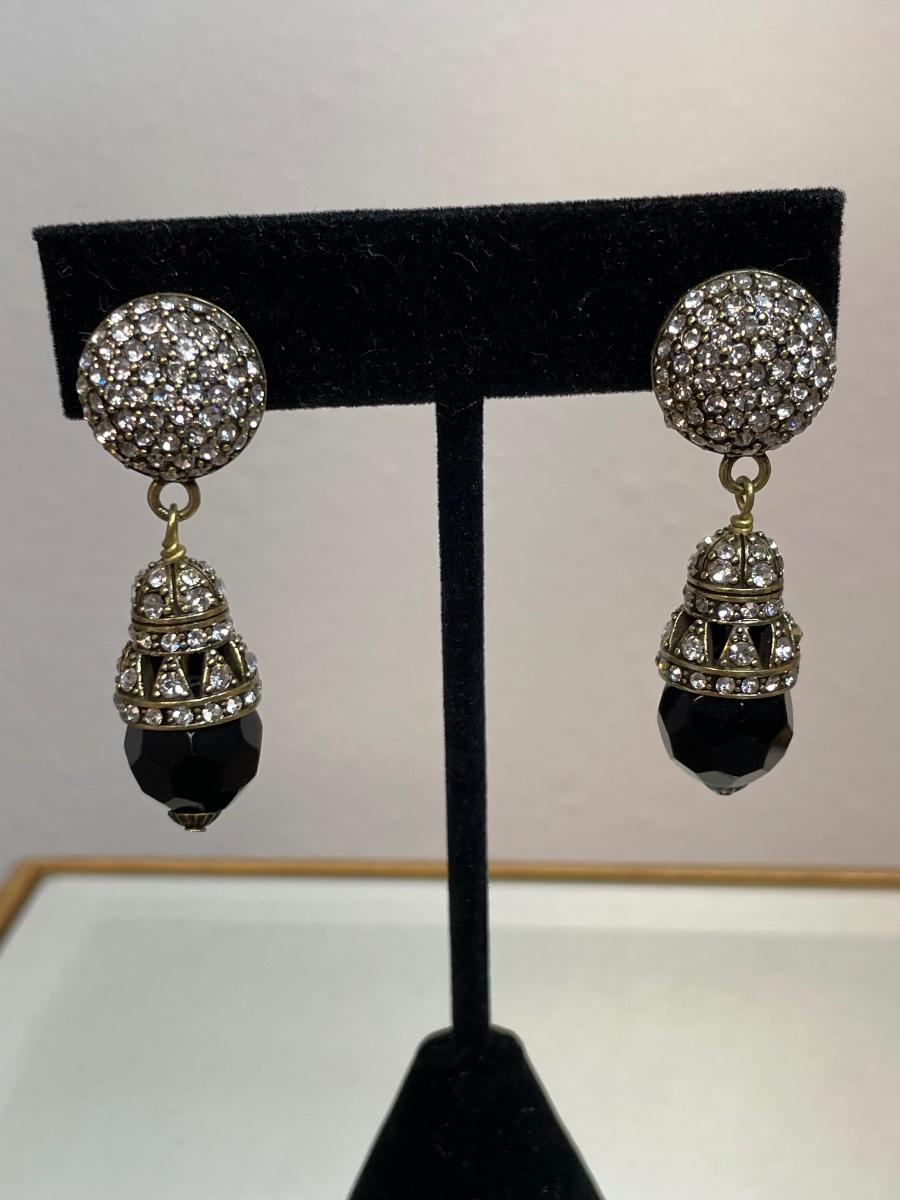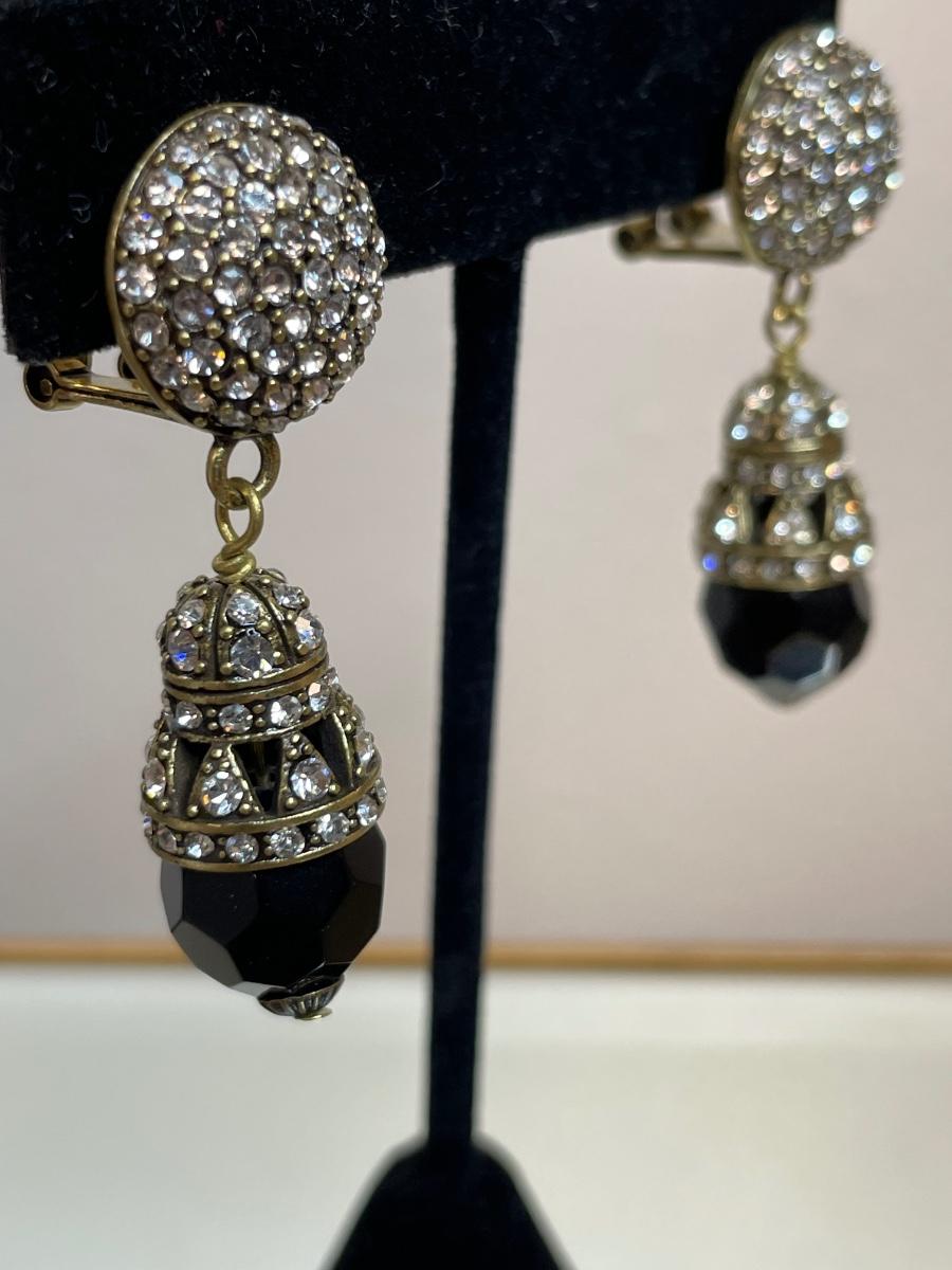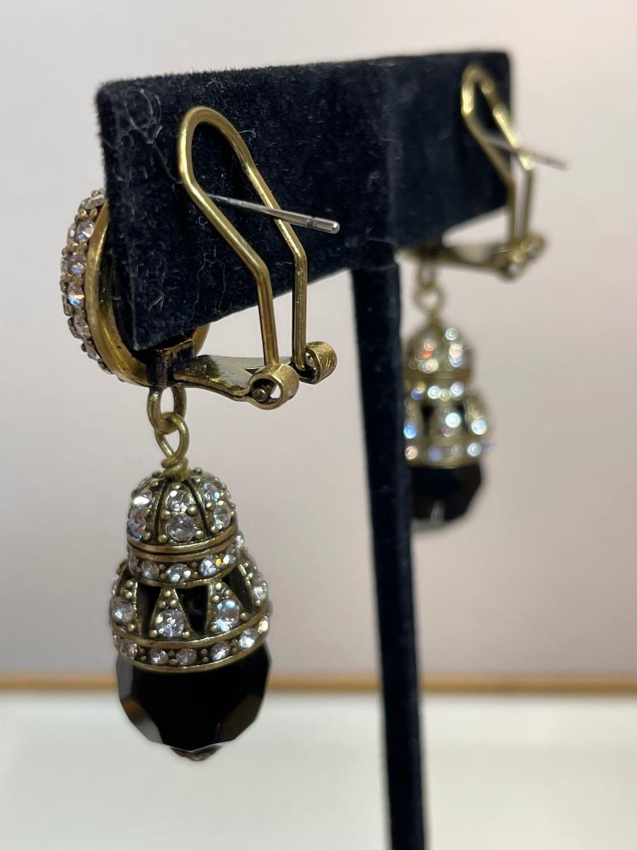 Gold tone with clear crystal rhinestones, like new. Pierced with omega backs.