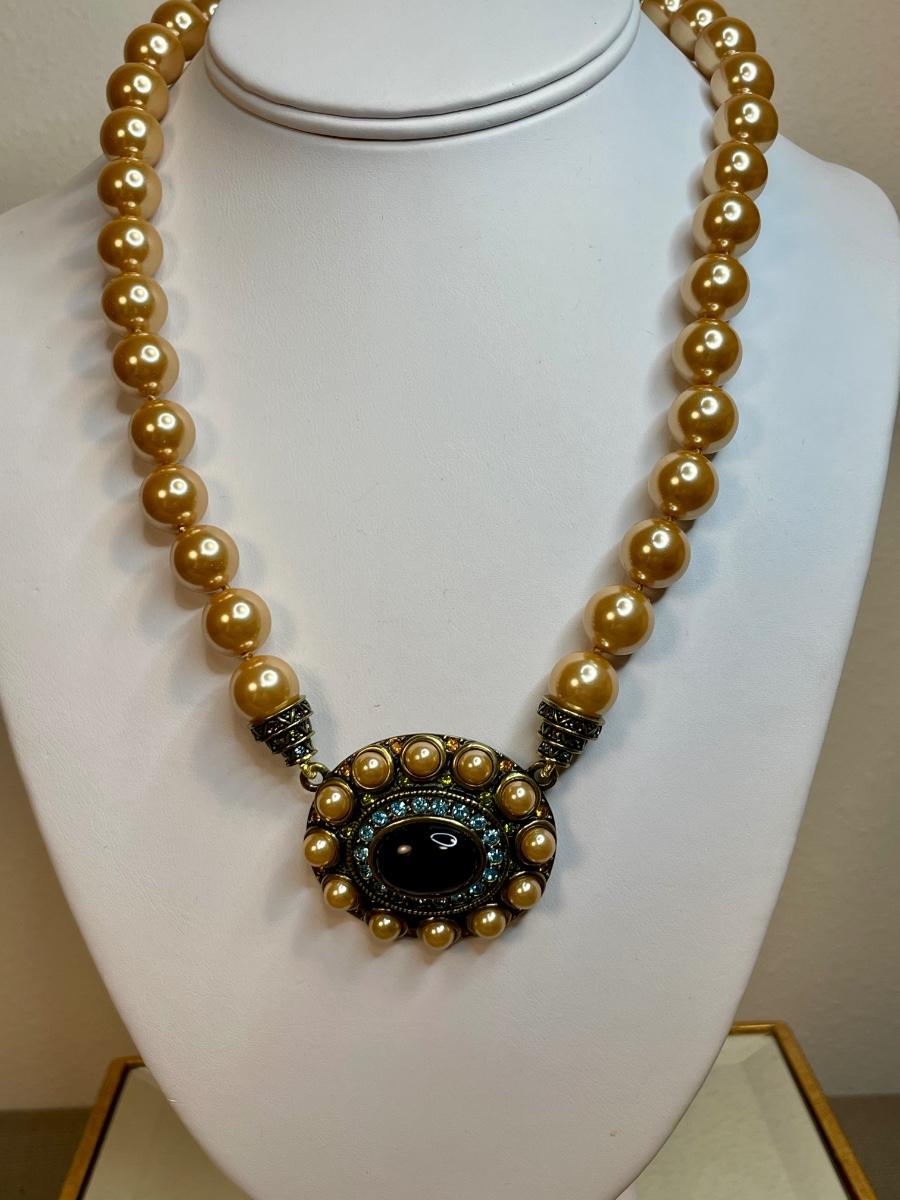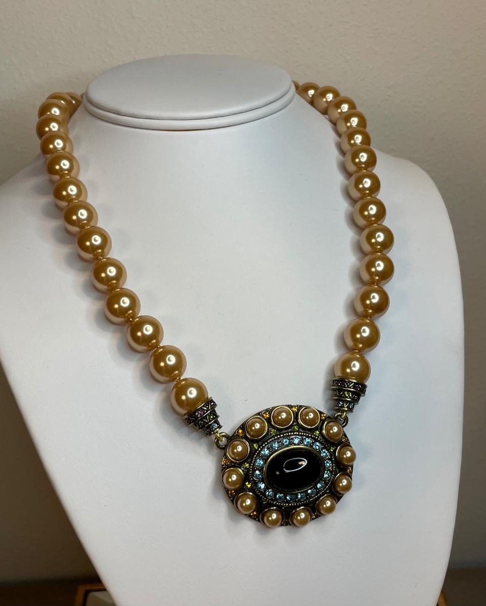 Glass faux pearls, adjustable length up to 23 inches. New, never worn. See matching ring lot J3
