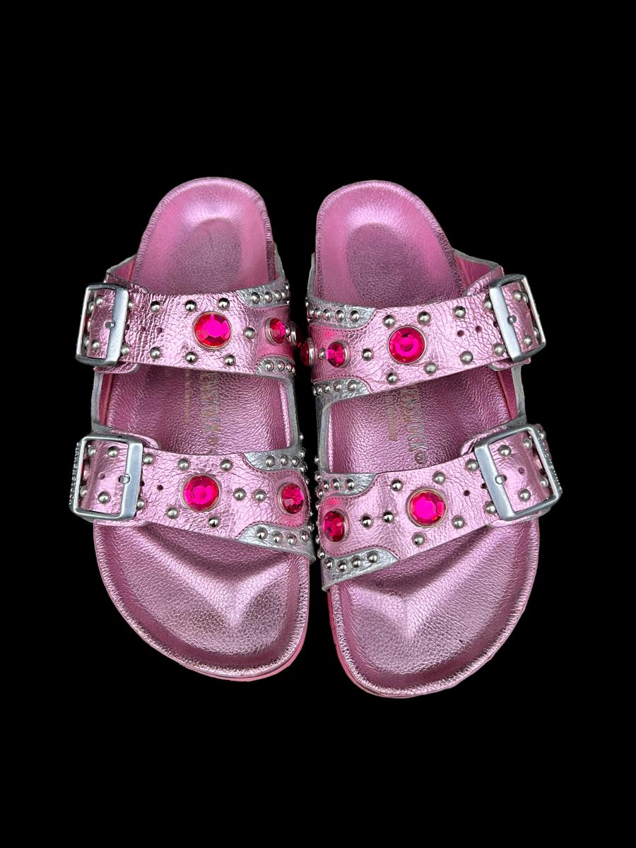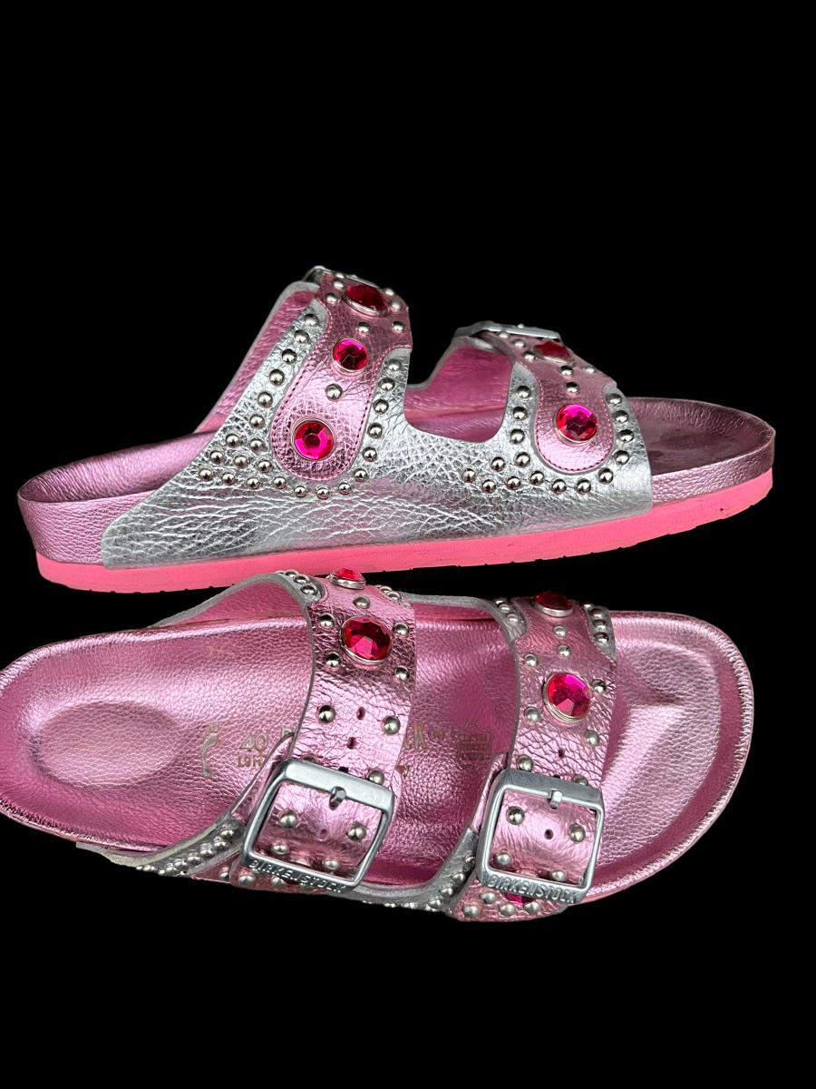 RARE Heidi Klum BIRKENSTOCK Sandals Slide SAPPHIRE silver-pink EU40 US9-9.5
