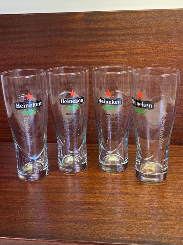 Set of four Heineken Pilsner glasses, in perfect condition.