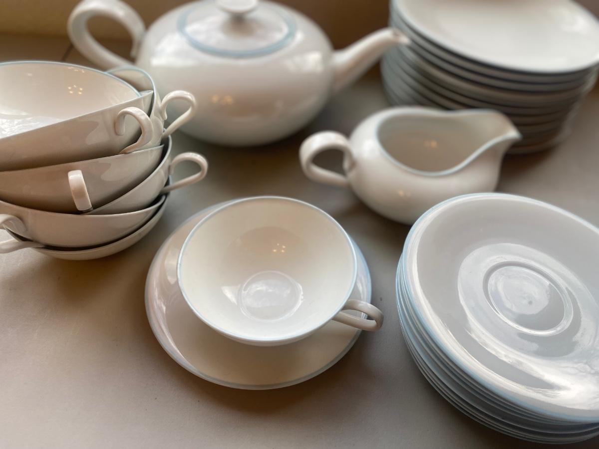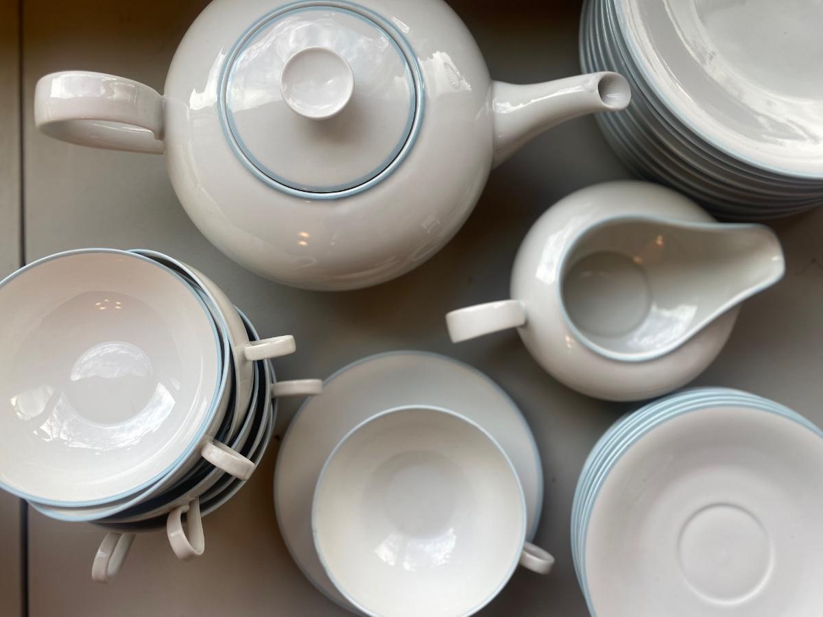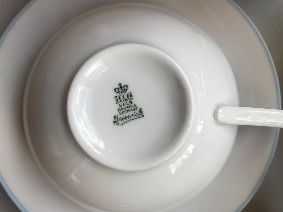 Heinrich Bavaria selb H C Mid Century Blue band fine bone porcelain China tea set