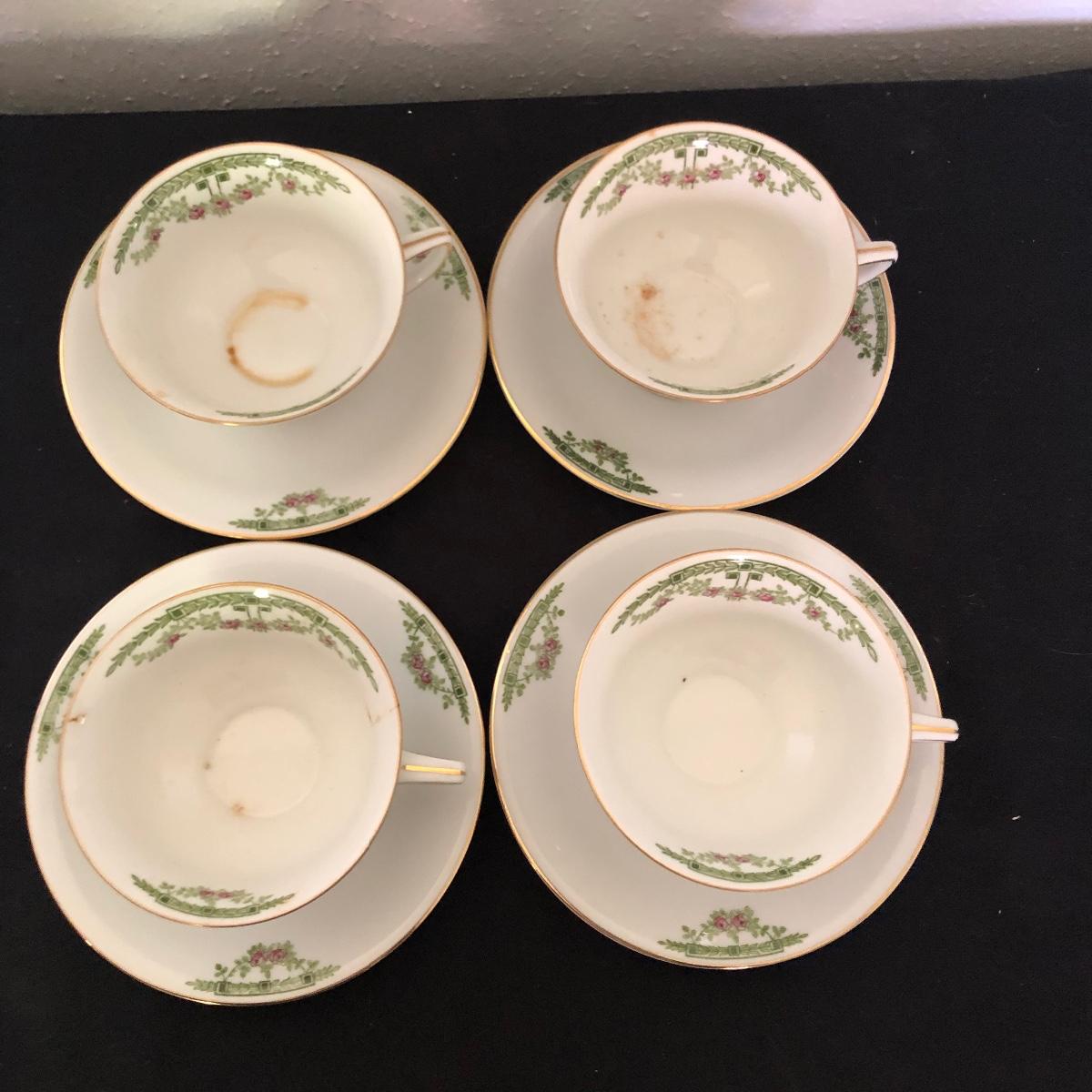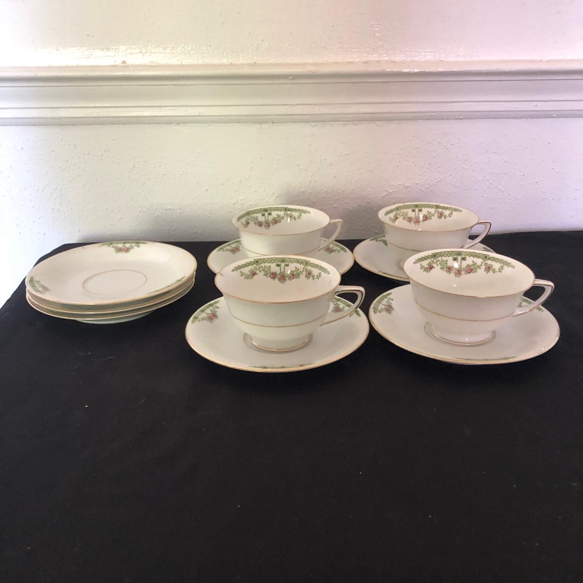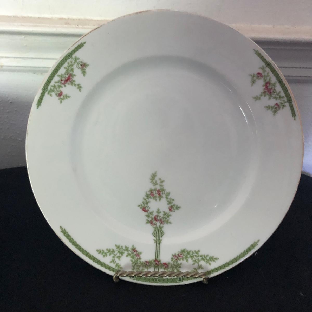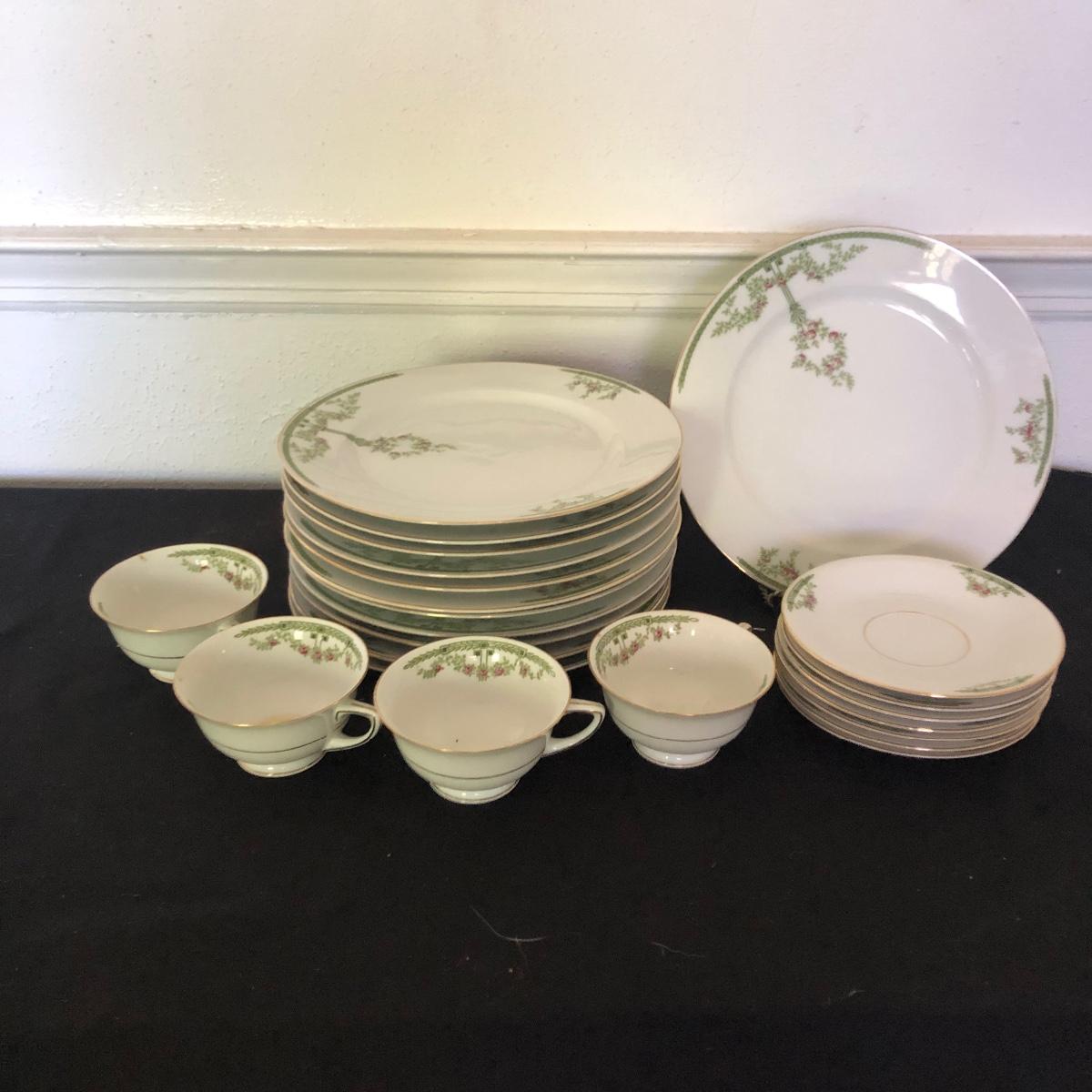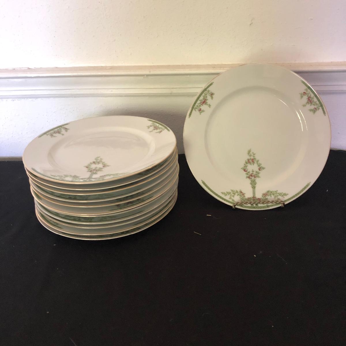 This Heinrich and Co. Bavarian includes twelve gold rimmed dinner plates, four teacup's and seven saucers. Dinner plates measure 10”D.