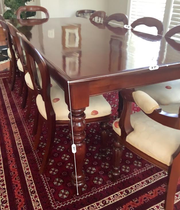 Heirloom Solid Large Mahogany Dining Table w/ 10 Chairs