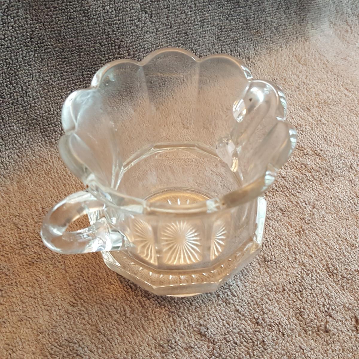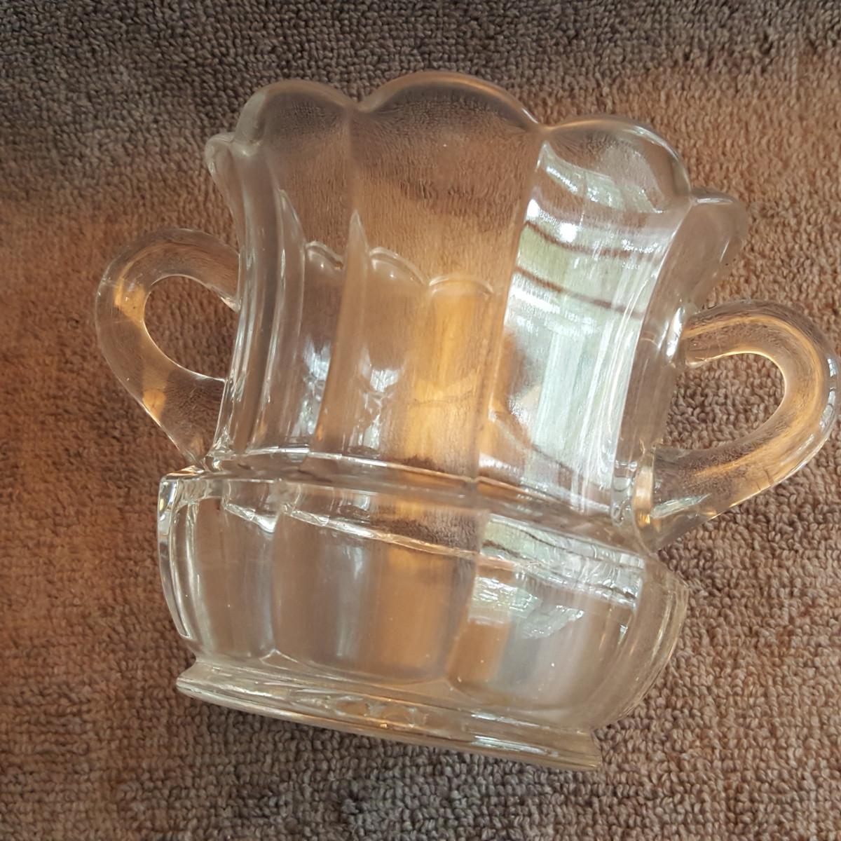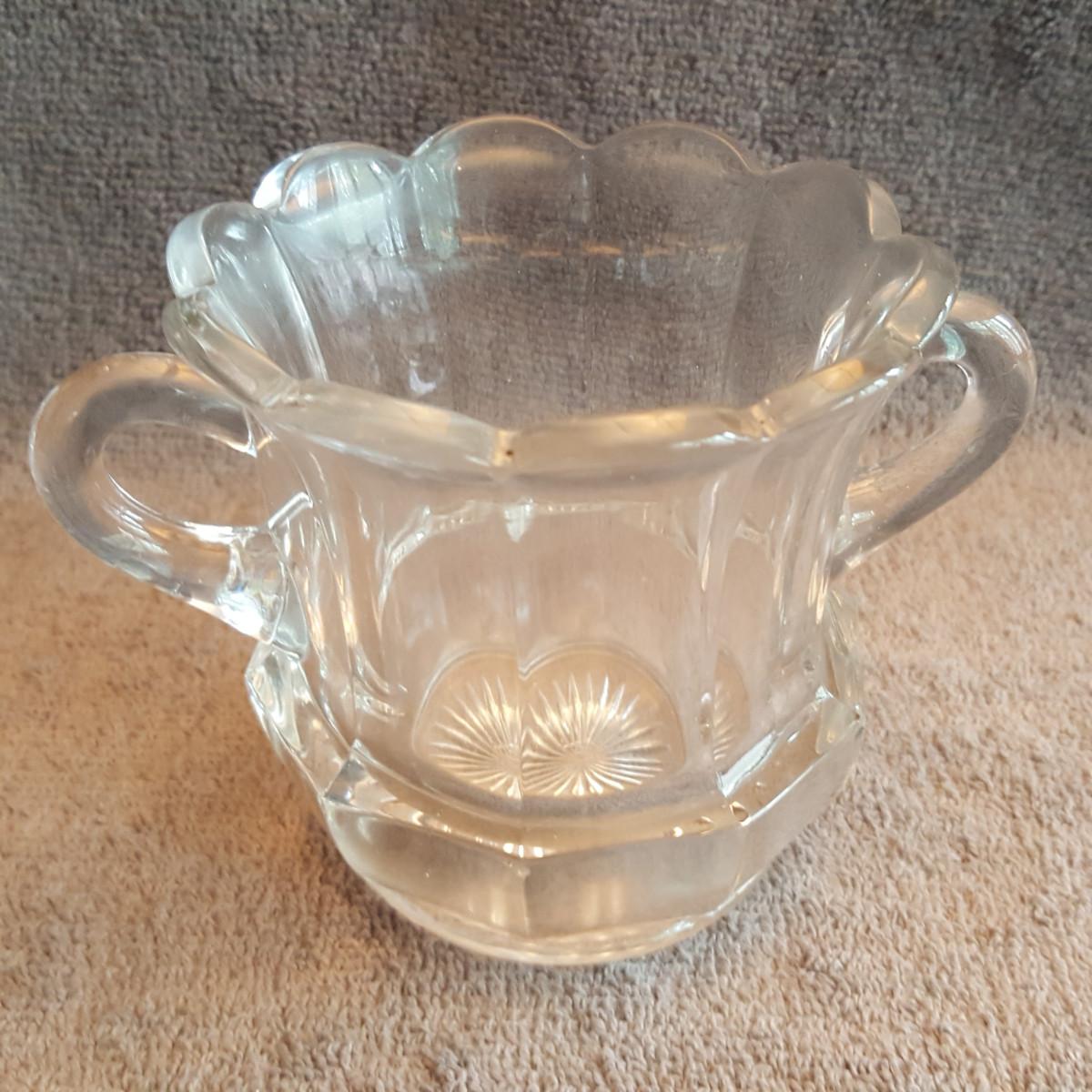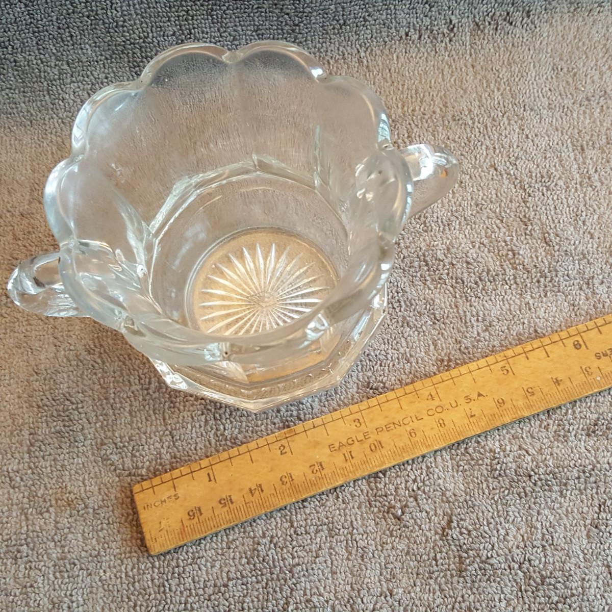 This auction lot is for a Heisey Glass Sugar. Marked with the Diamond H design. We believe this is called the Early Colonial Pattern but whatever it is a nice old dish that needs a new home. See photos for sizing.
