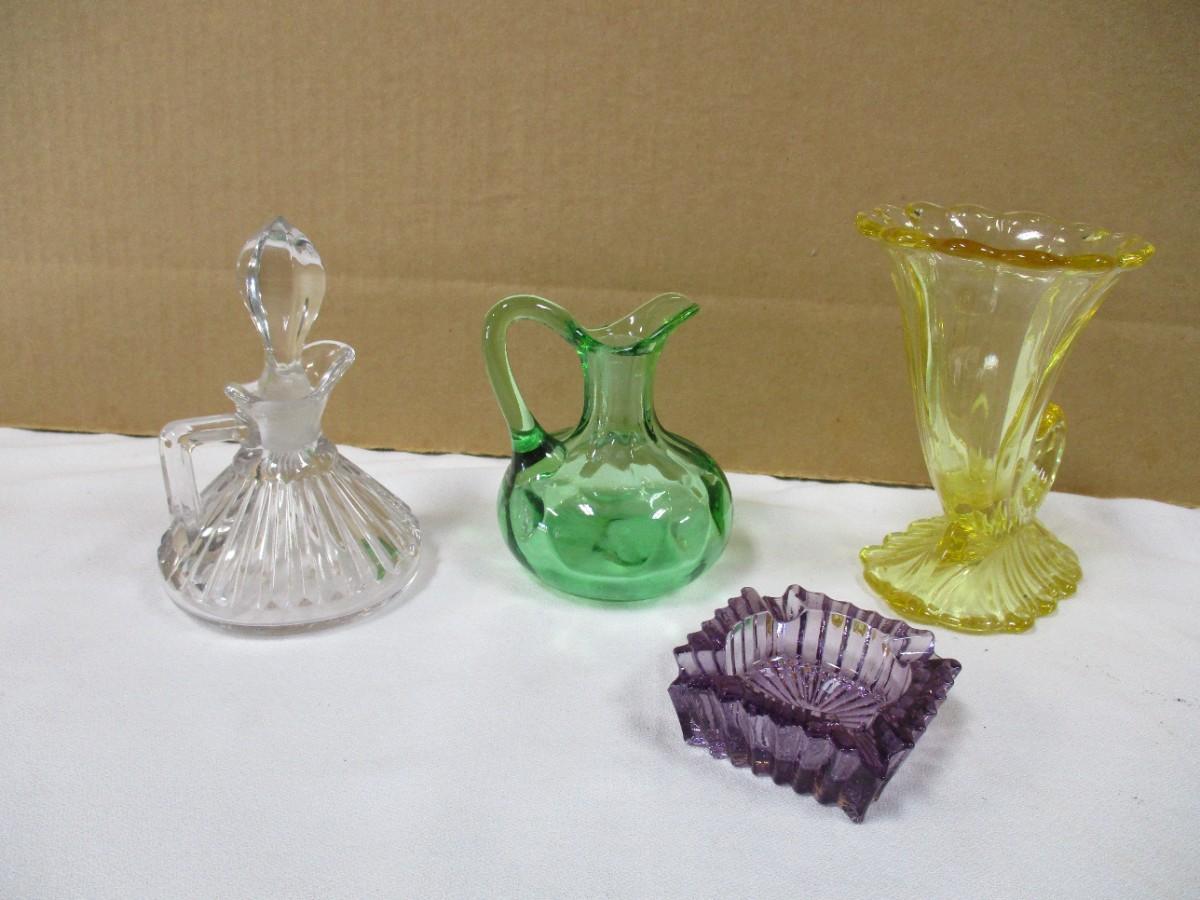 Heisey Cornucopia Vase - Ashtray - Glass Cruet - ashtray does have a chip