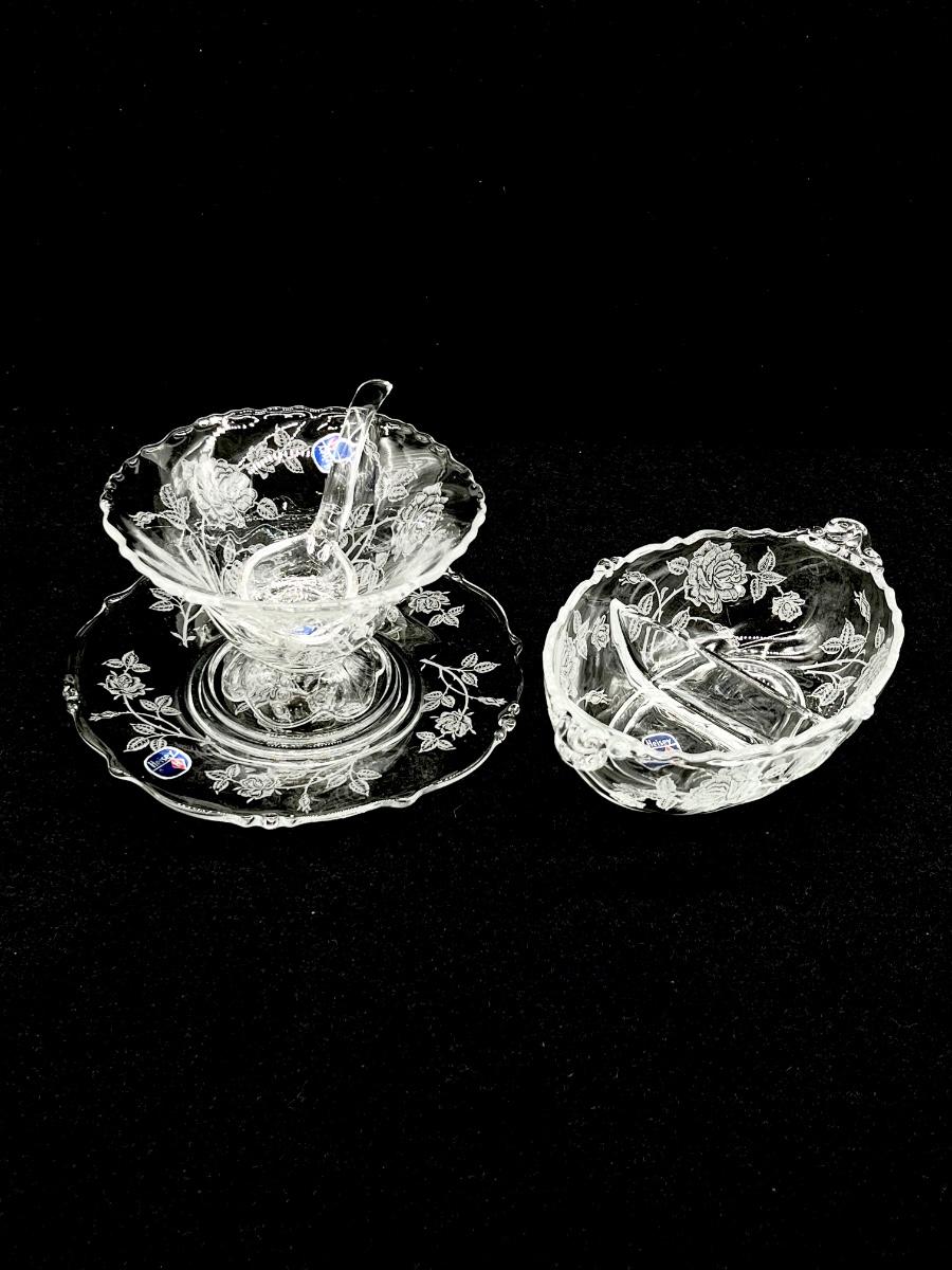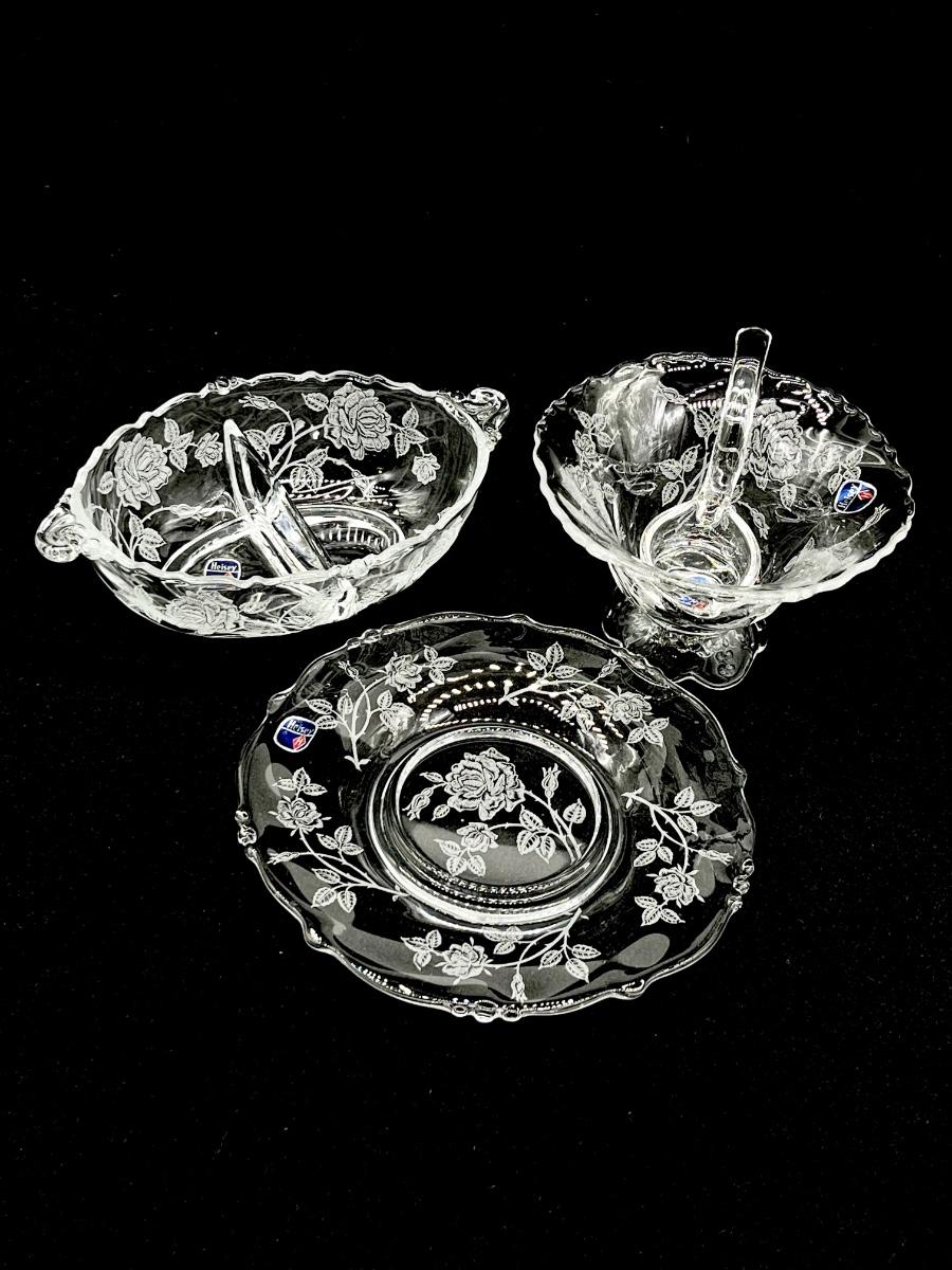 HEISEY ~ Etched Rose 2 Piece Serving Set