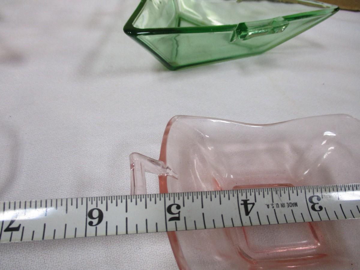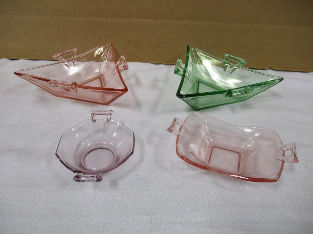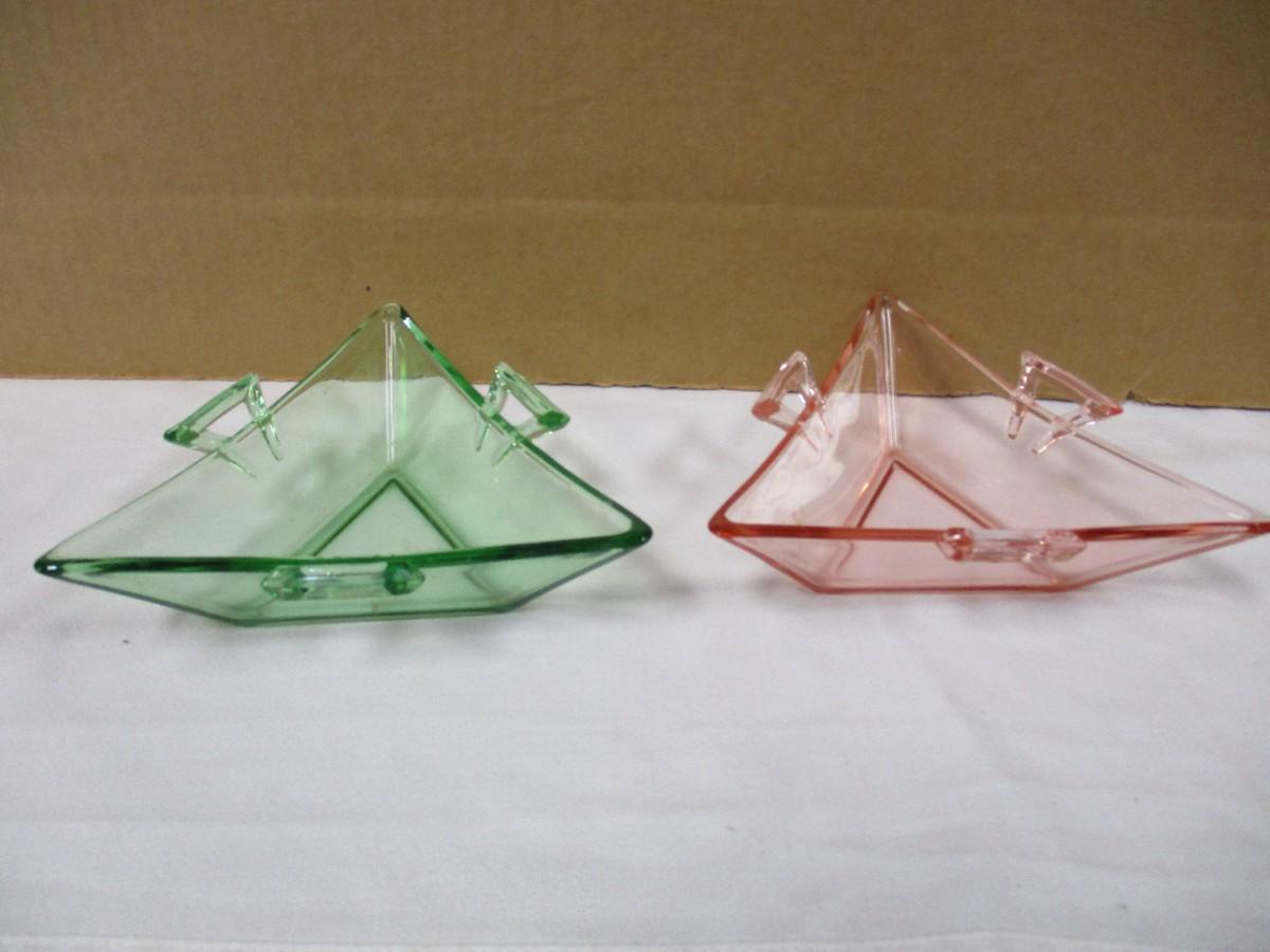 Heisey Pink & Green Triangular Candy Dish & Purple & Pink Candy Dishes