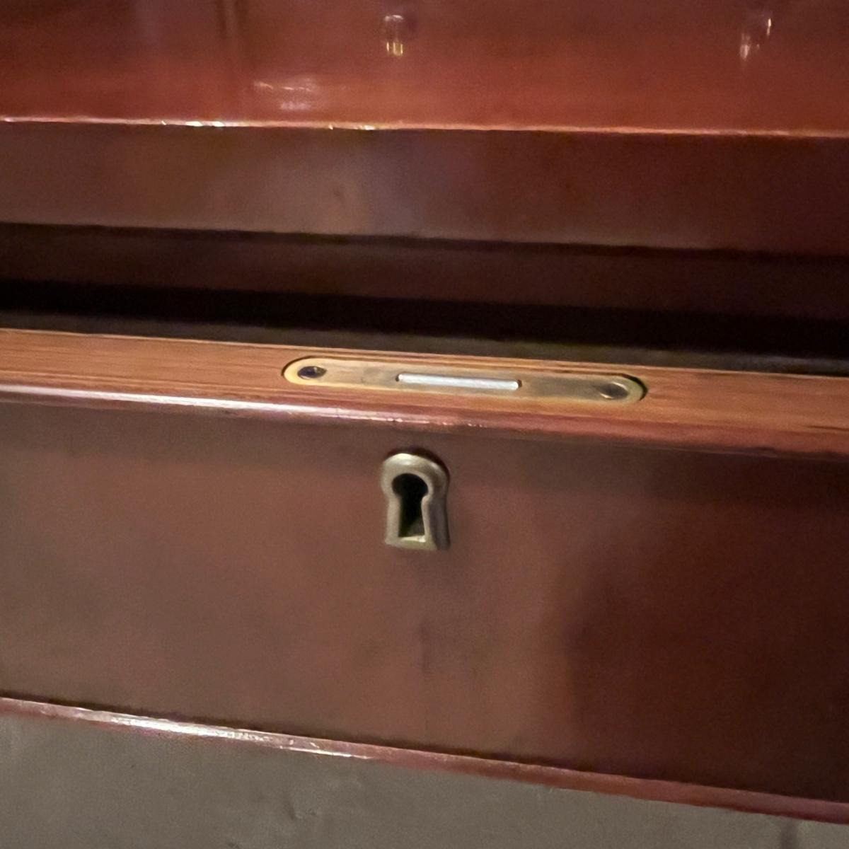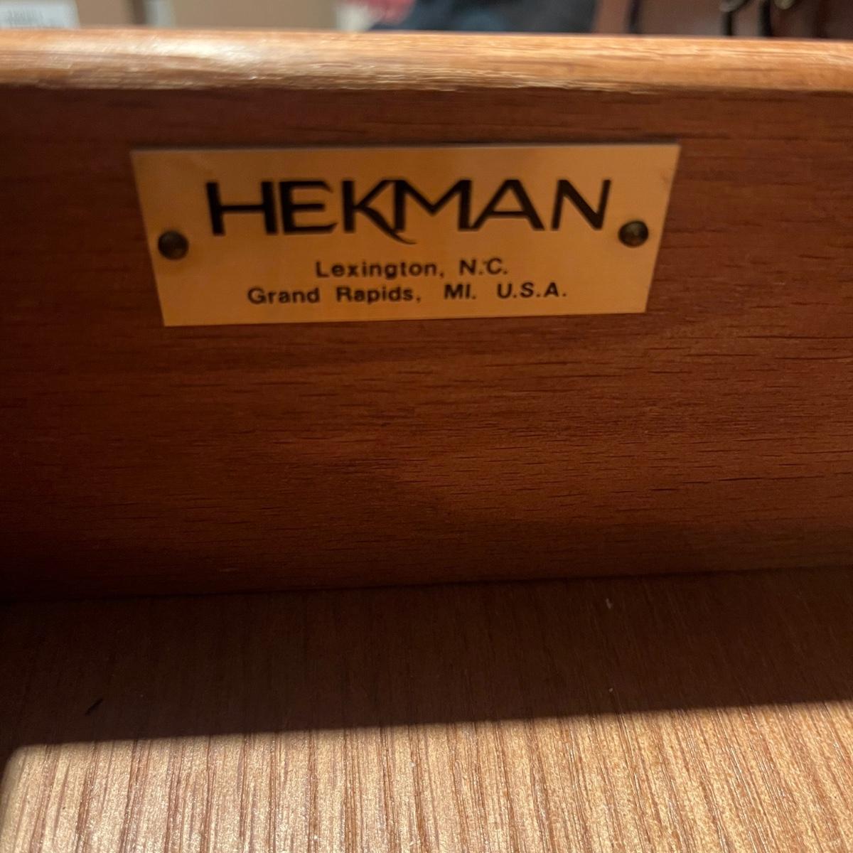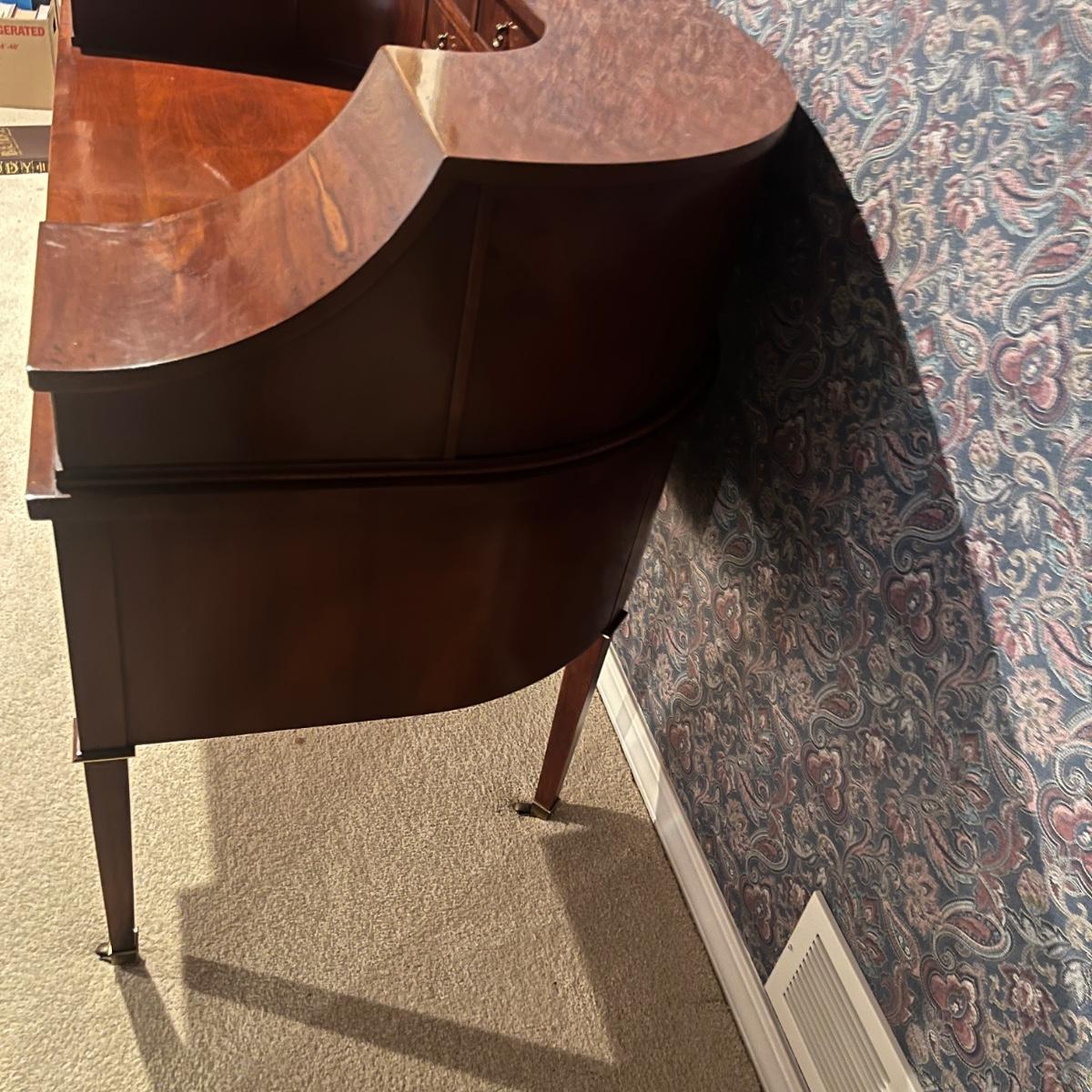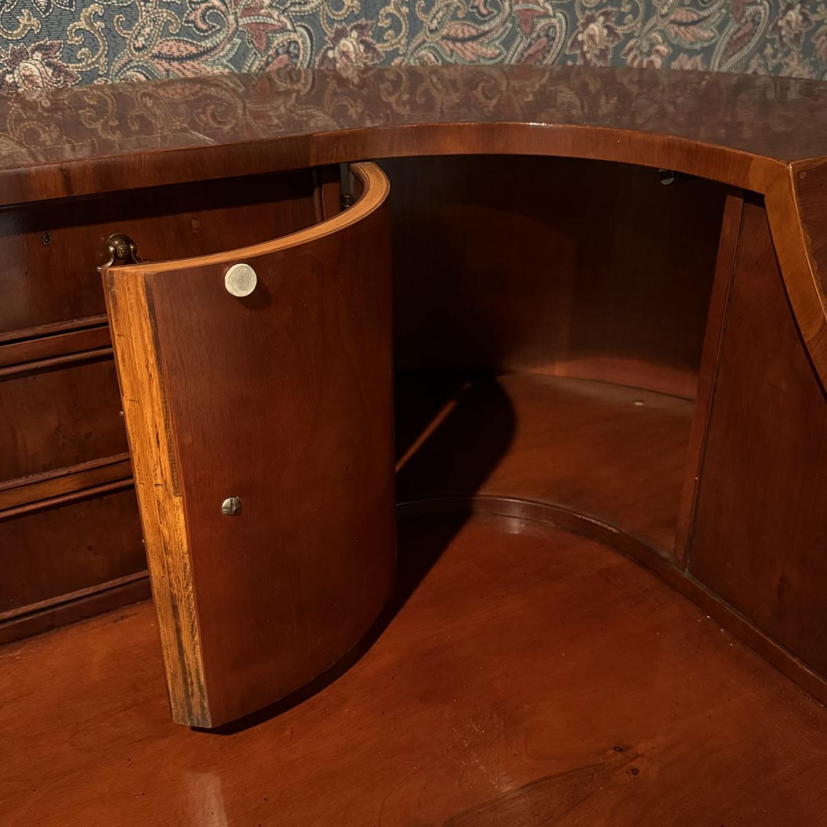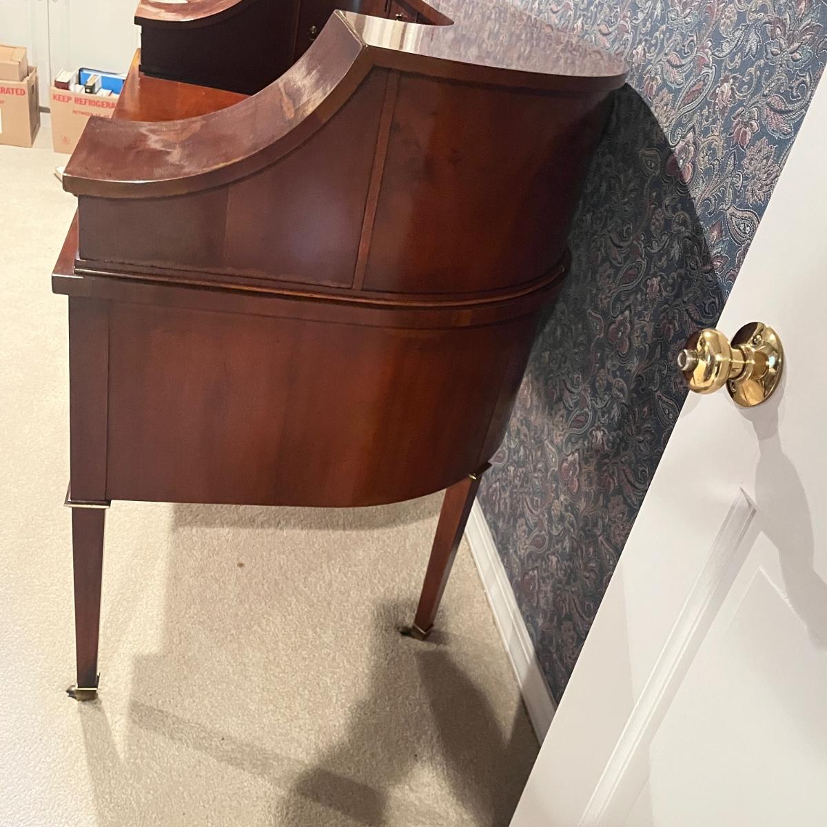 Lot includes a Hekman Carlton House style desk with 13 dovetailed drawers and two side compartments and casters on each leg. Desk measures 54” x 29” x 40”H. No key is included.