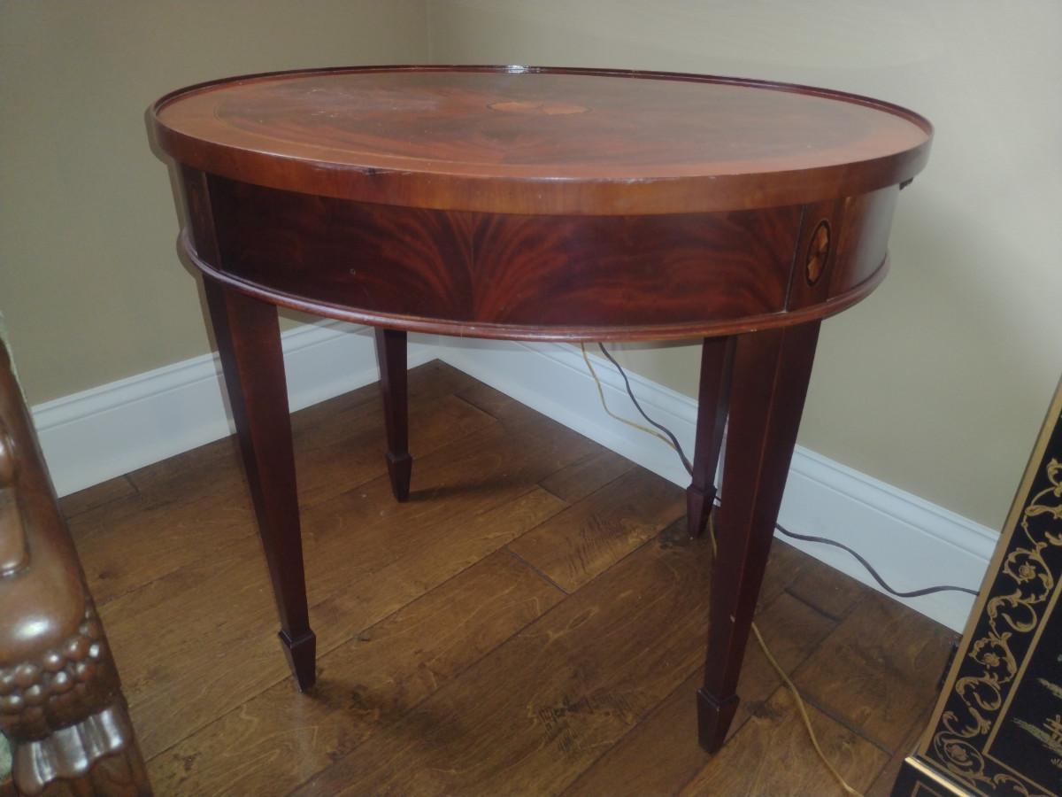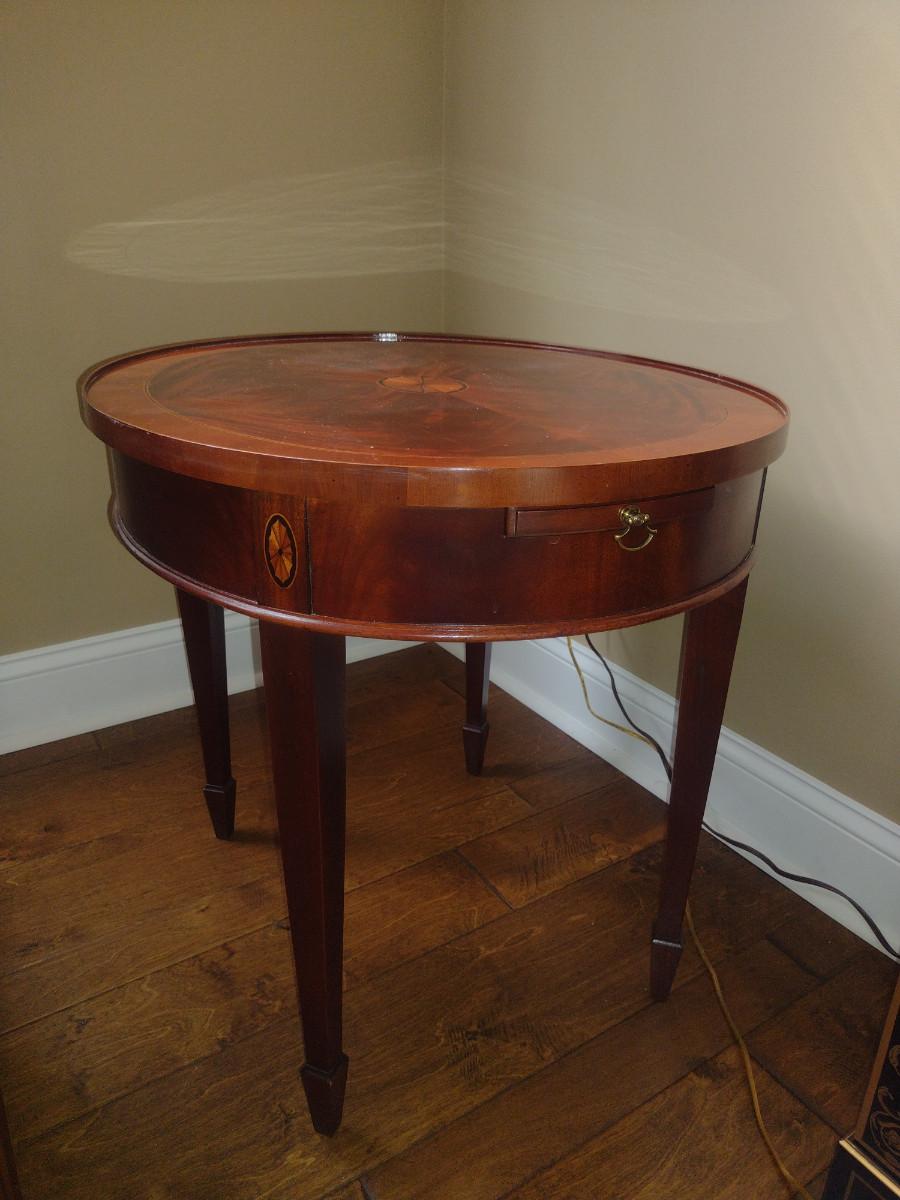 Hekman Furniture Co. Mahogany Finish Side/Accent Table with Inlay Design- Approx 25 3/4" x 22" x 23 1/4"