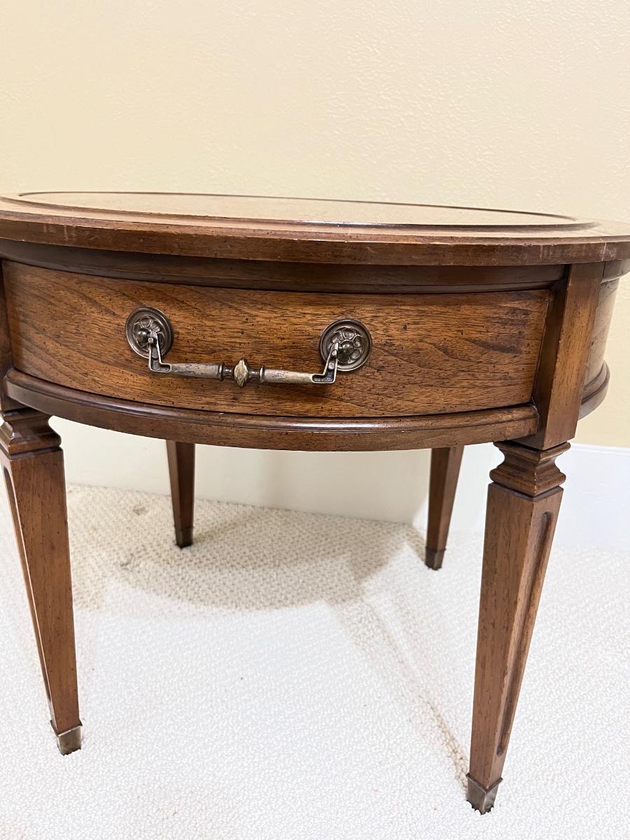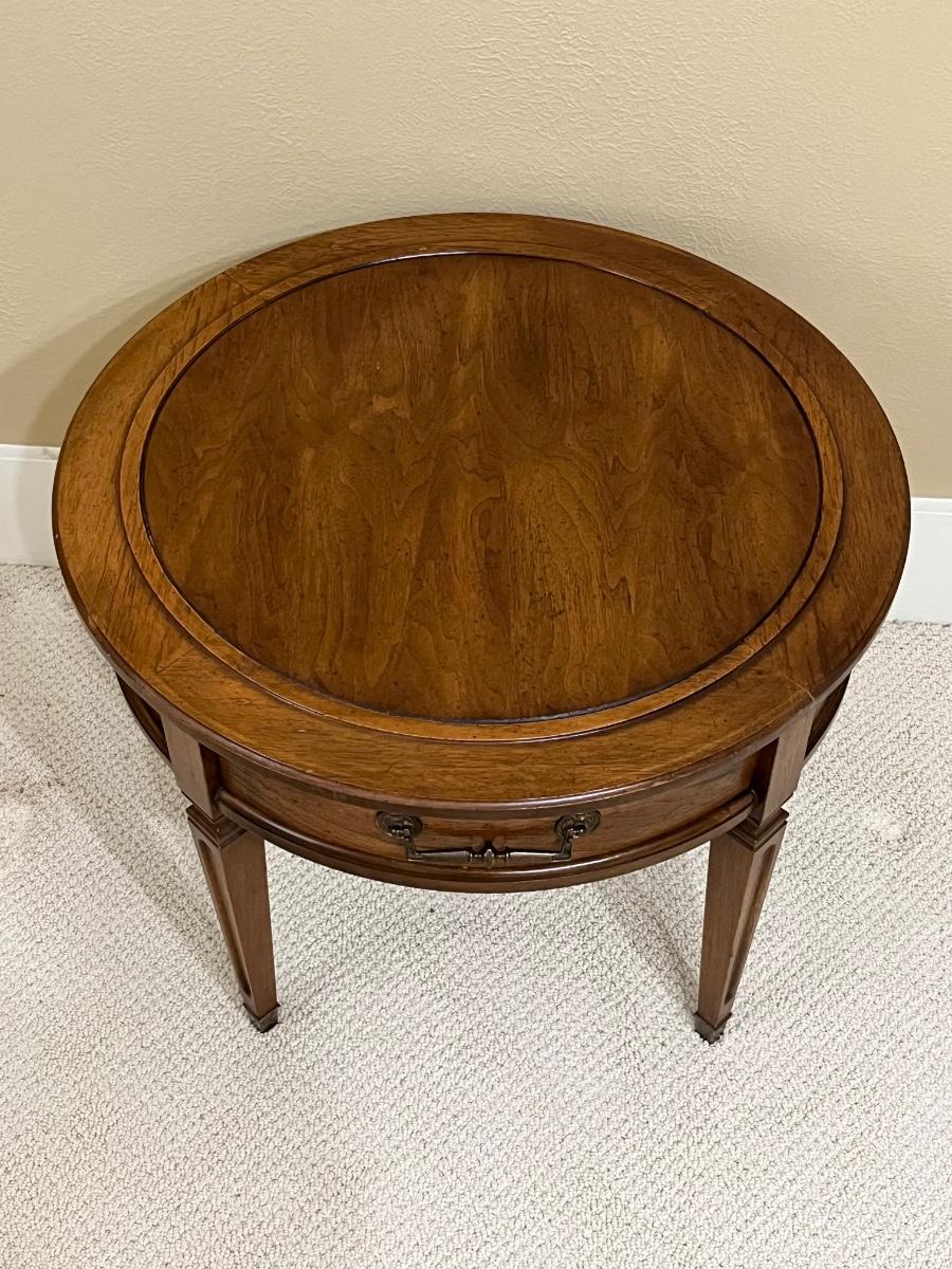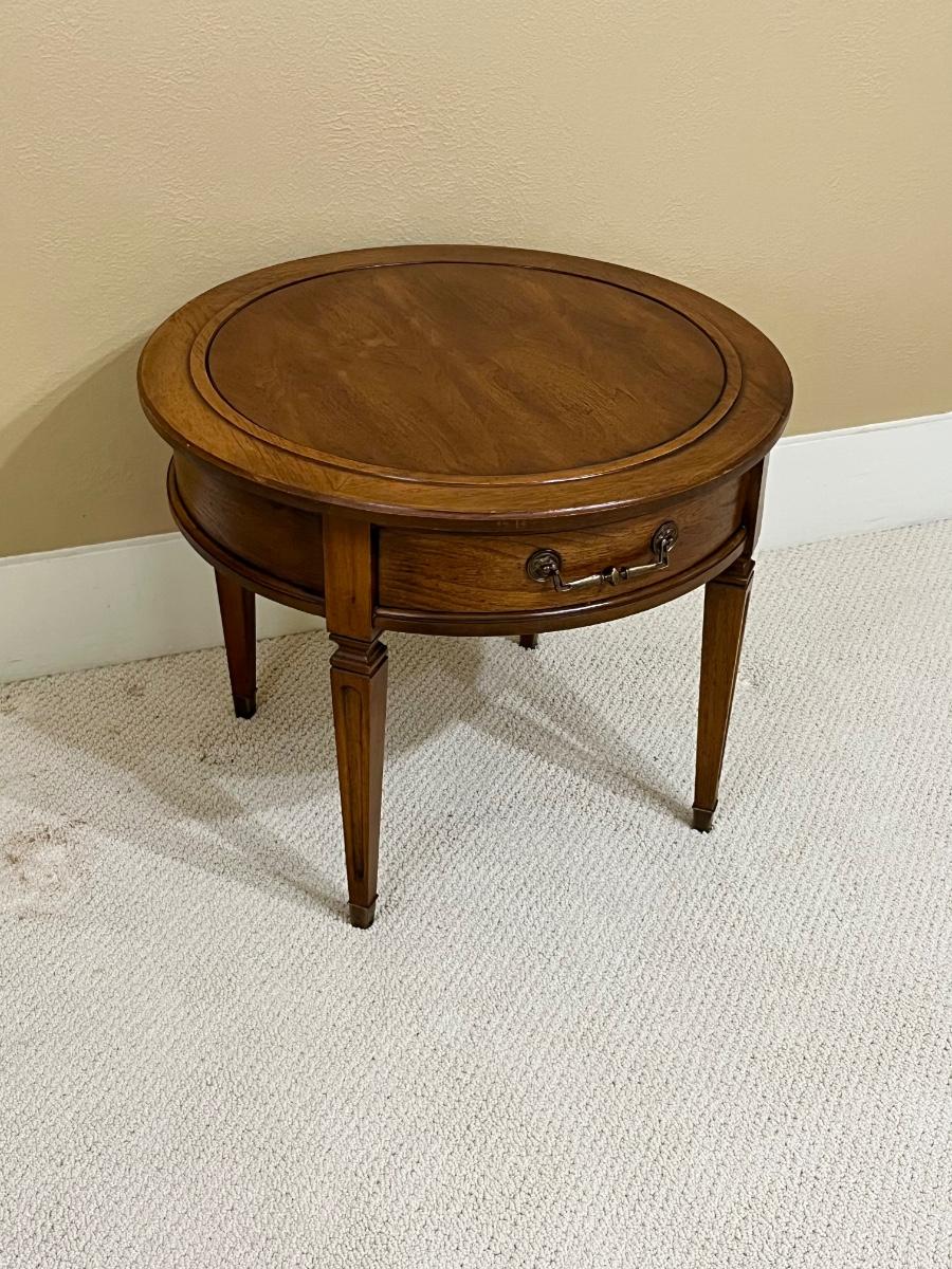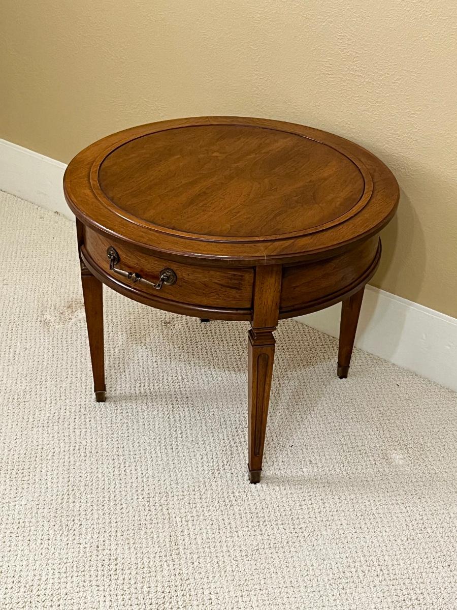 HEKMAN ~ Solid Wood Round Side Table ~ Brass Handle