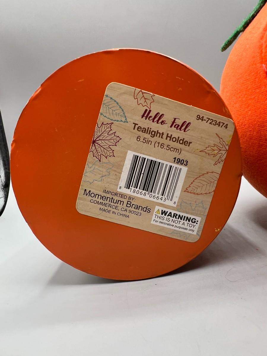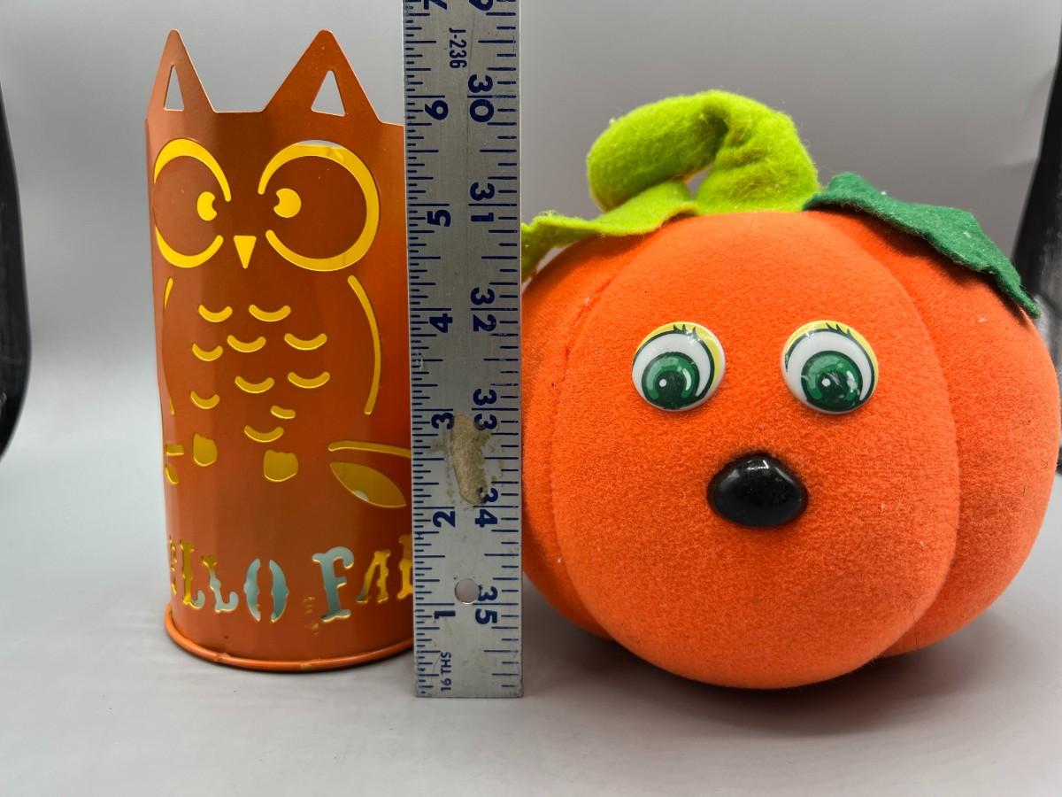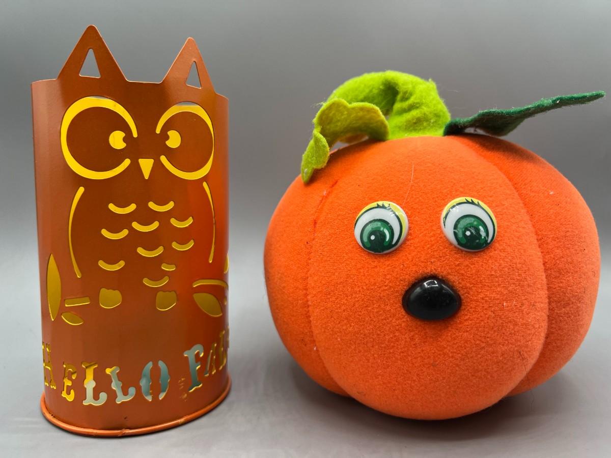 Hello Fall Tealight Candle Holder & Felt Funny Looking Halloween Pumpkin Home Decor