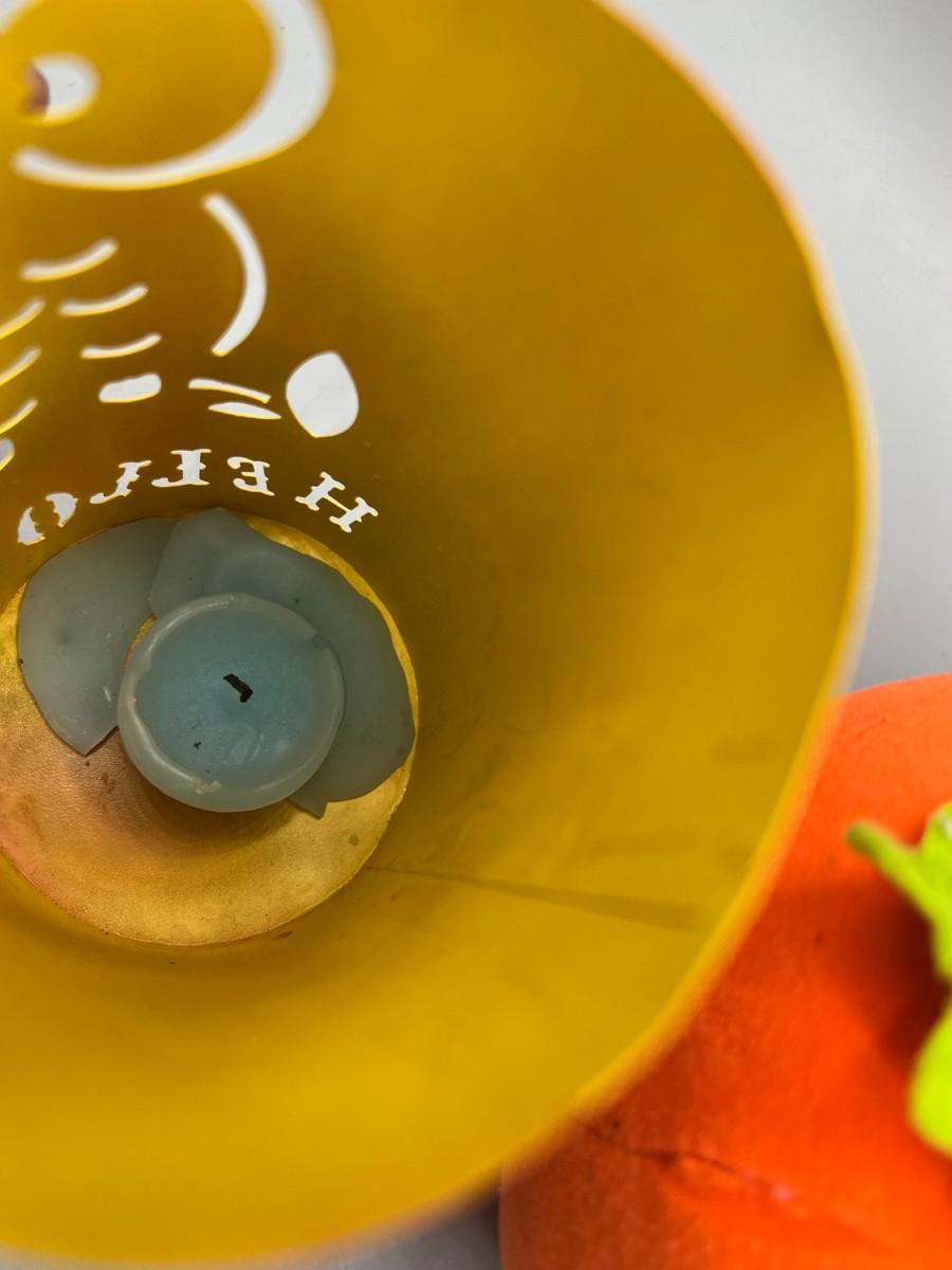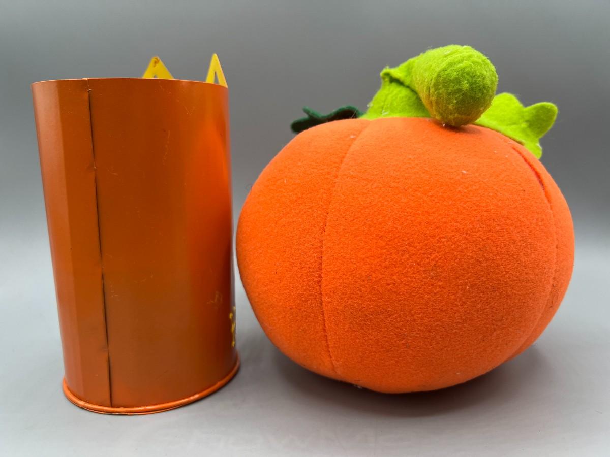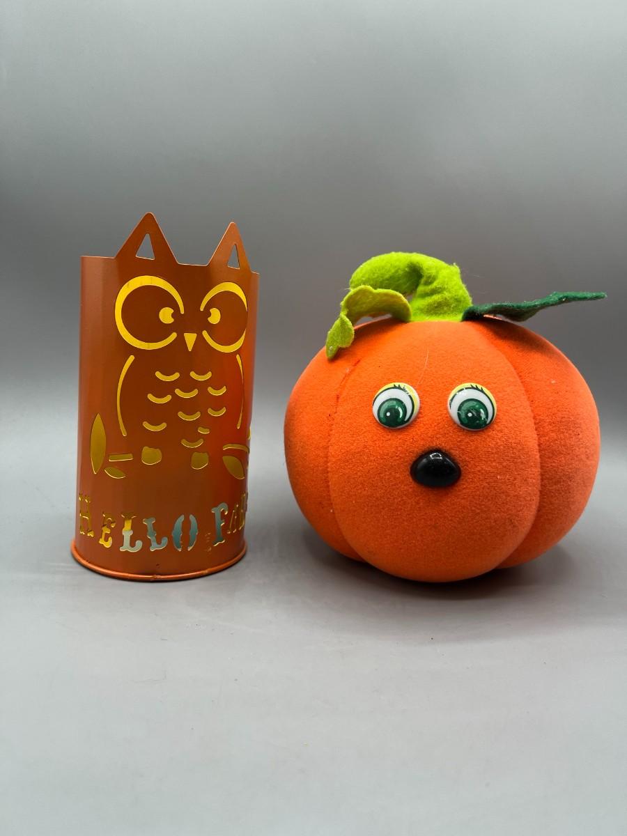 Hello Fall Tealight Candle Holder & Felt Funny Looking Halloween Pumpkin Home Decor