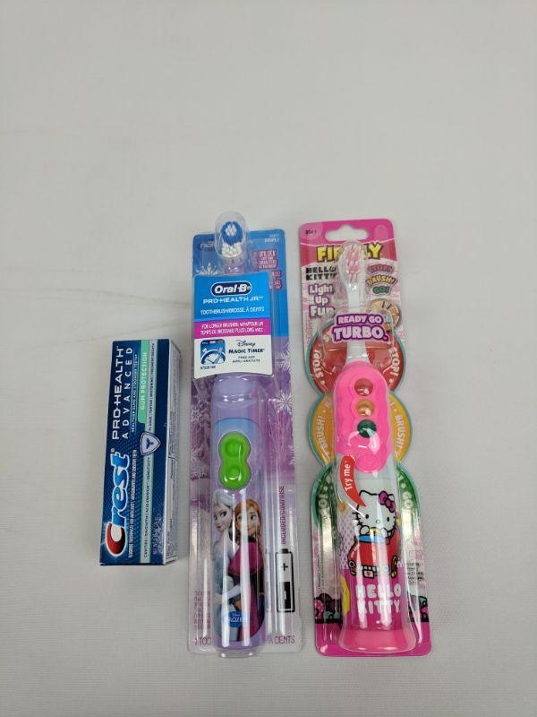 Hello Kitty Power Toothbrush, Frozen Oral-B Toothbrush & Crest Toothpaste - New