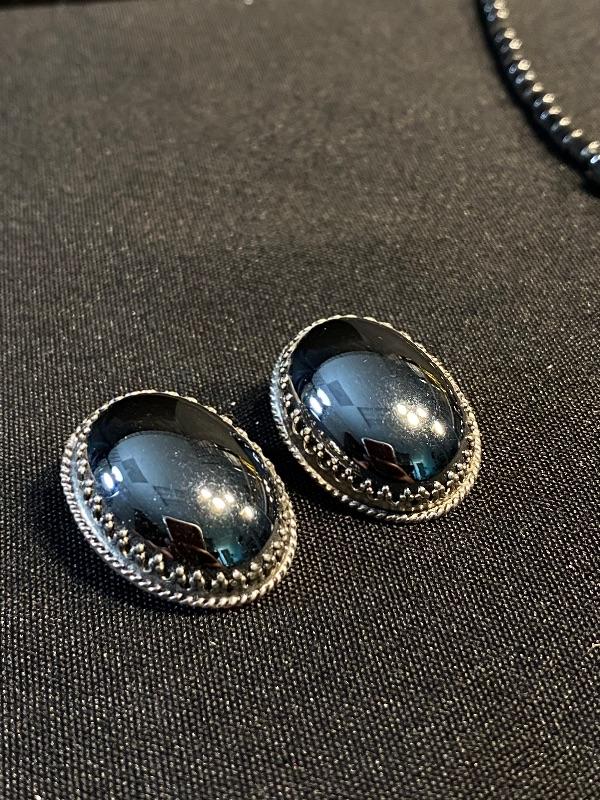 Hematite Choker Style Necklace & Clip Earrings