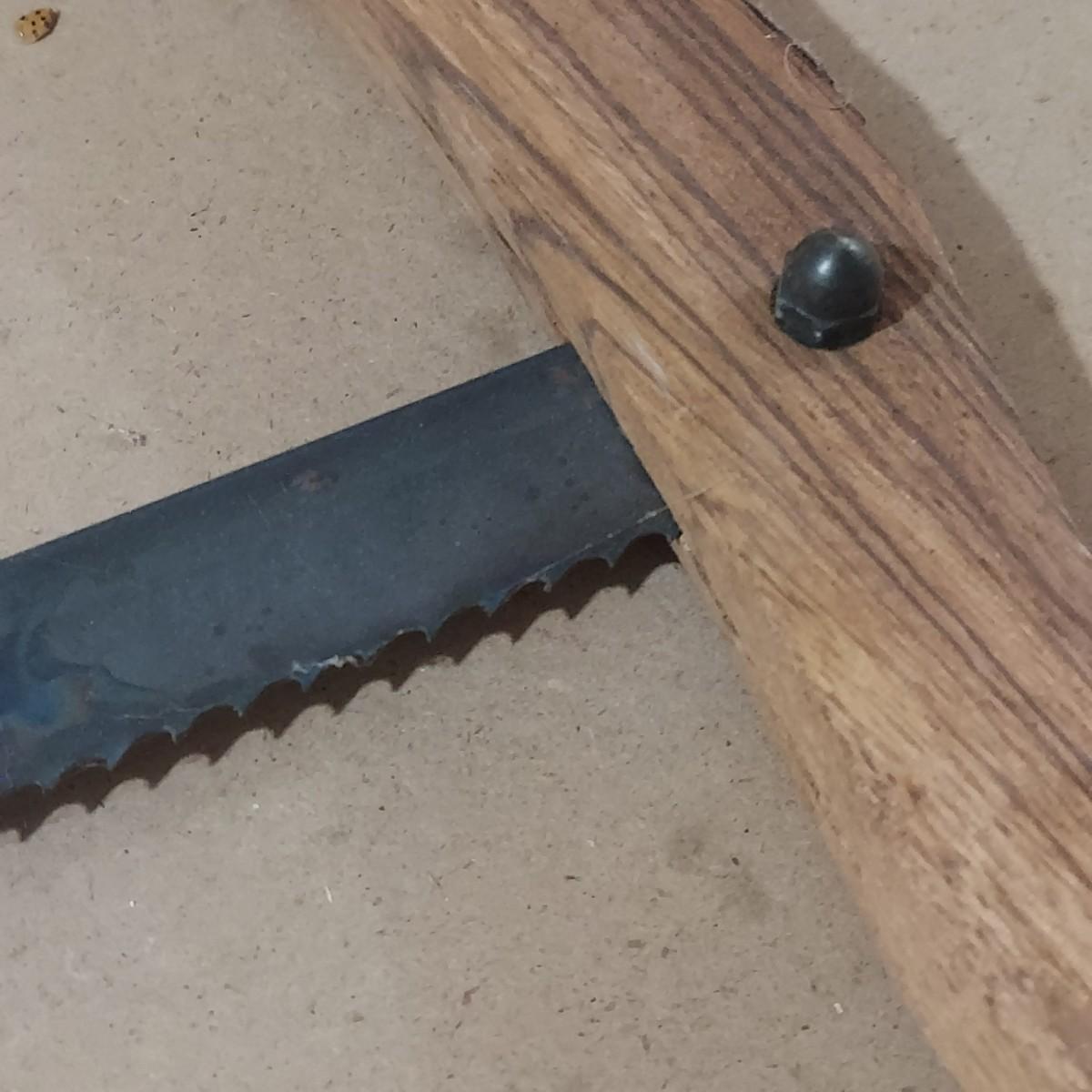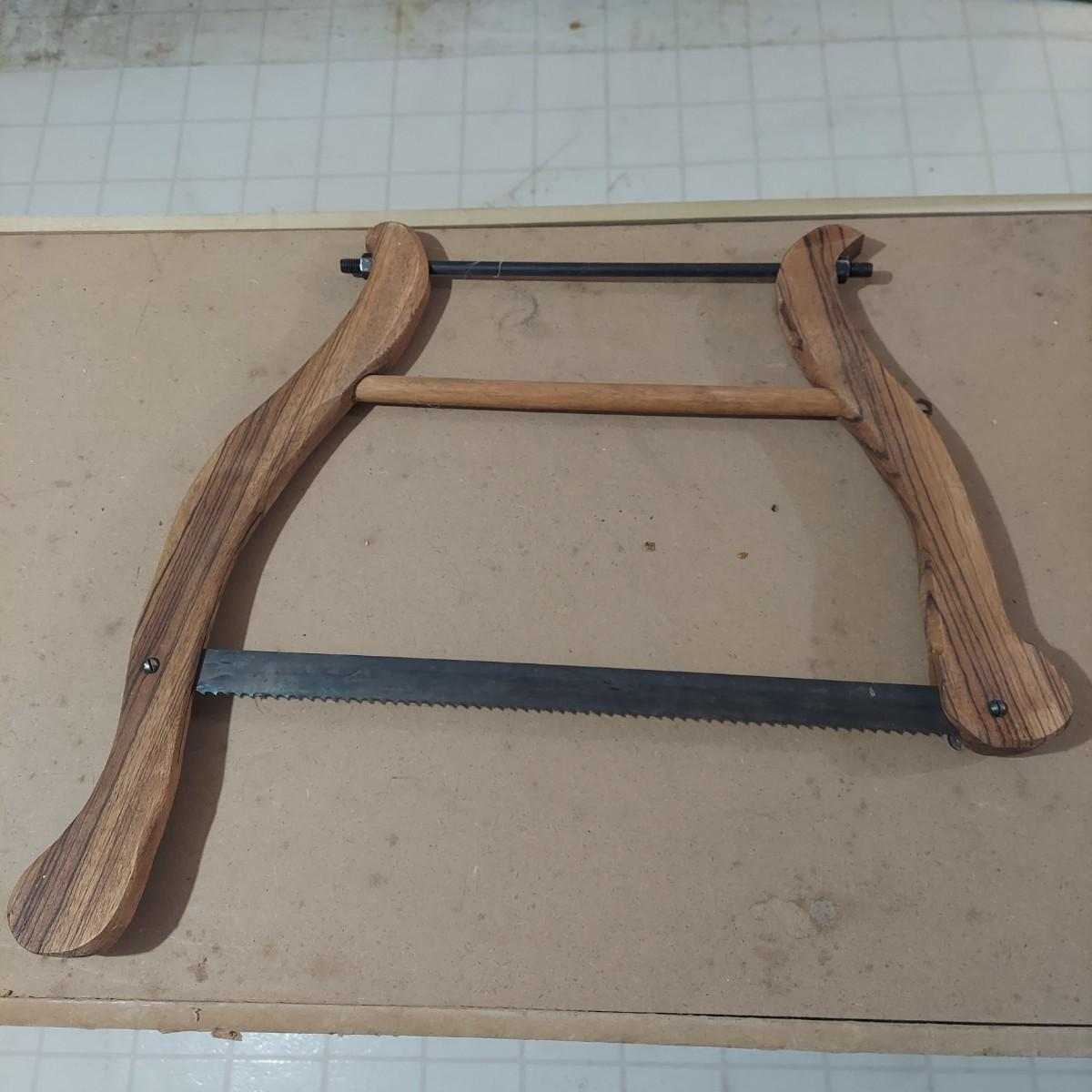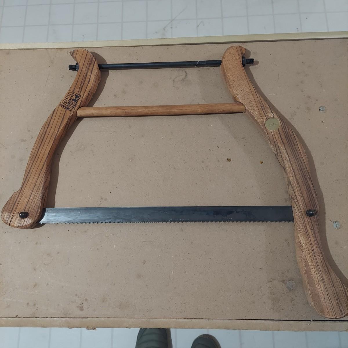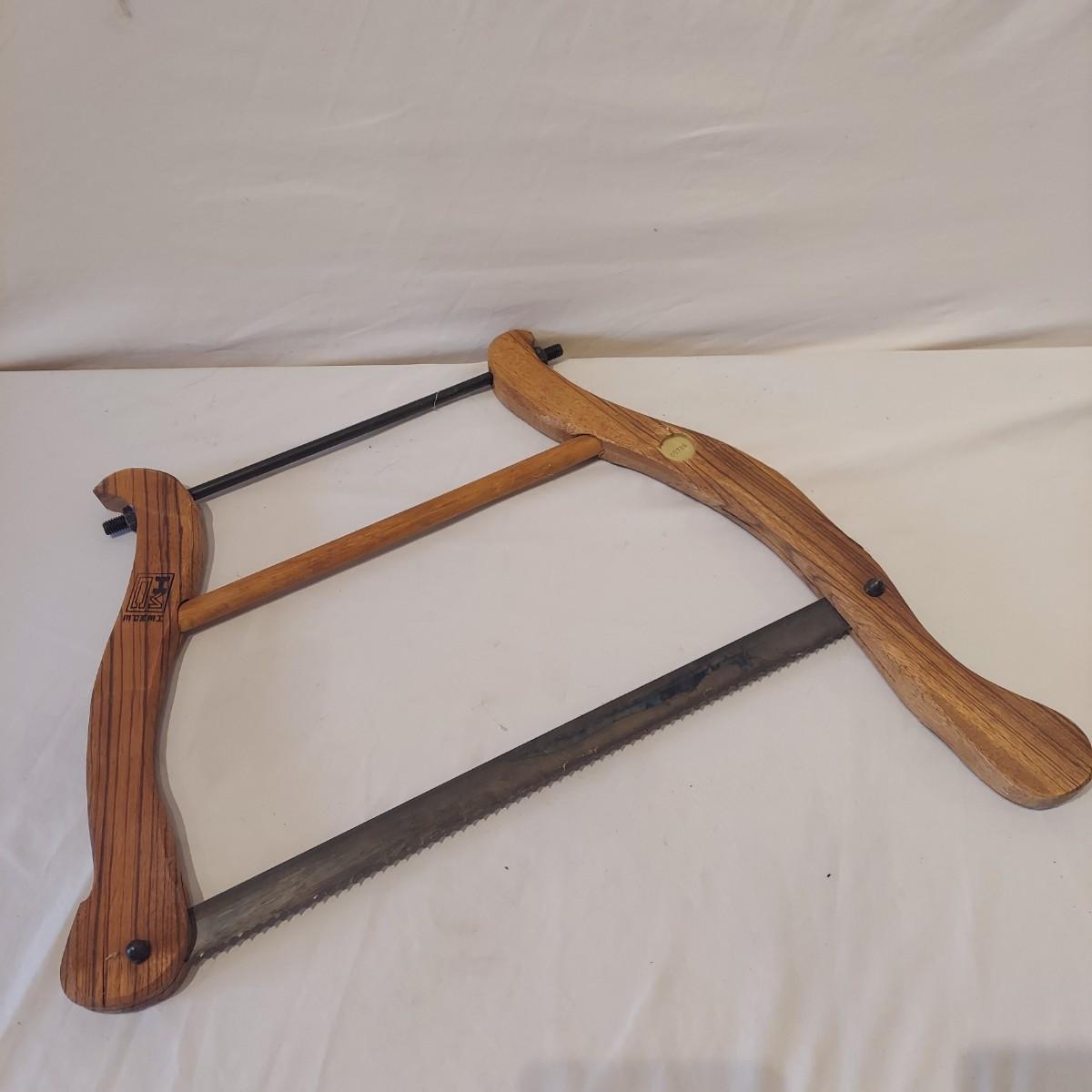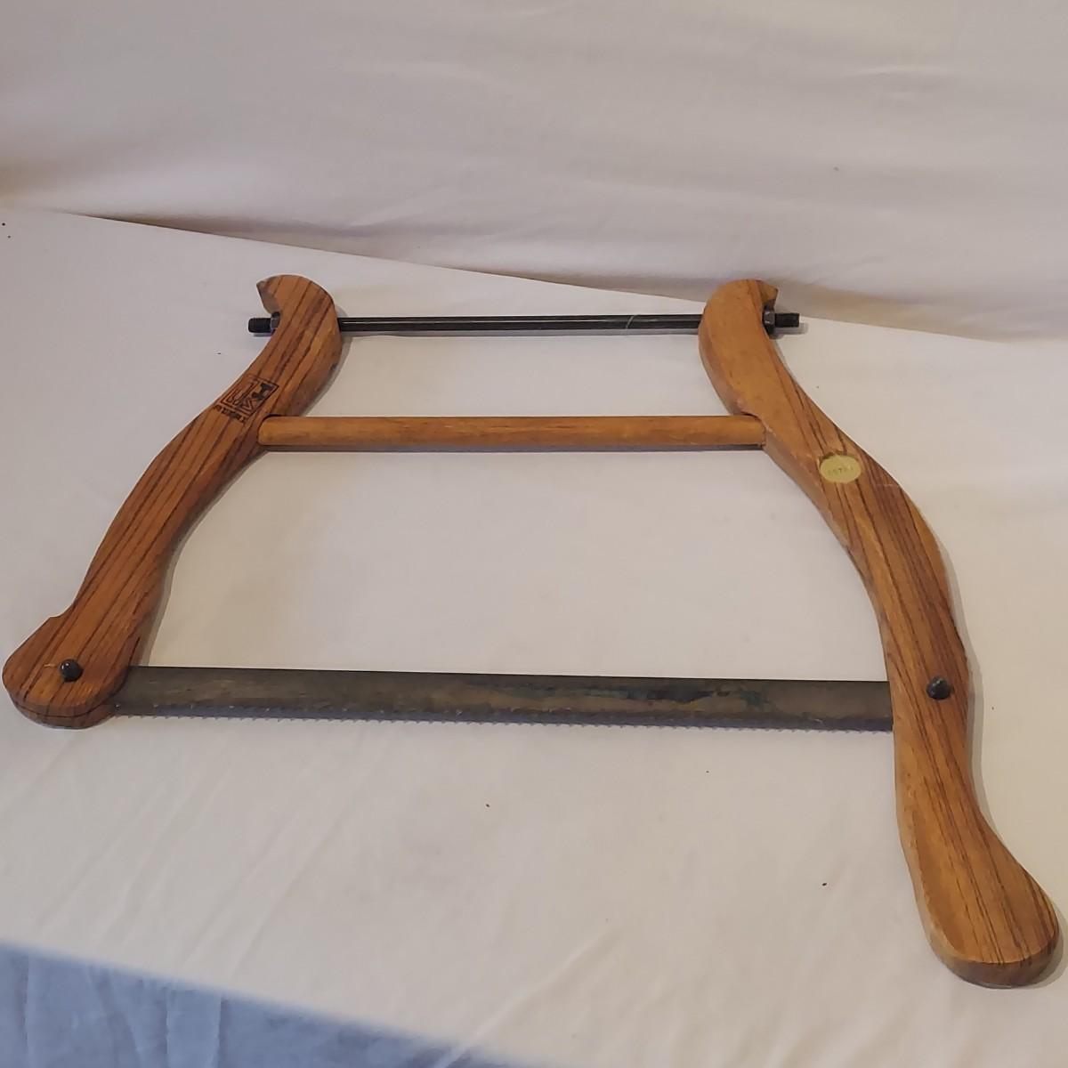 Lot includes a Hempe brand bow saw with a solid wood frame. Saw measures approximately 19" x 18”. Please see photos for details. Shipping available.