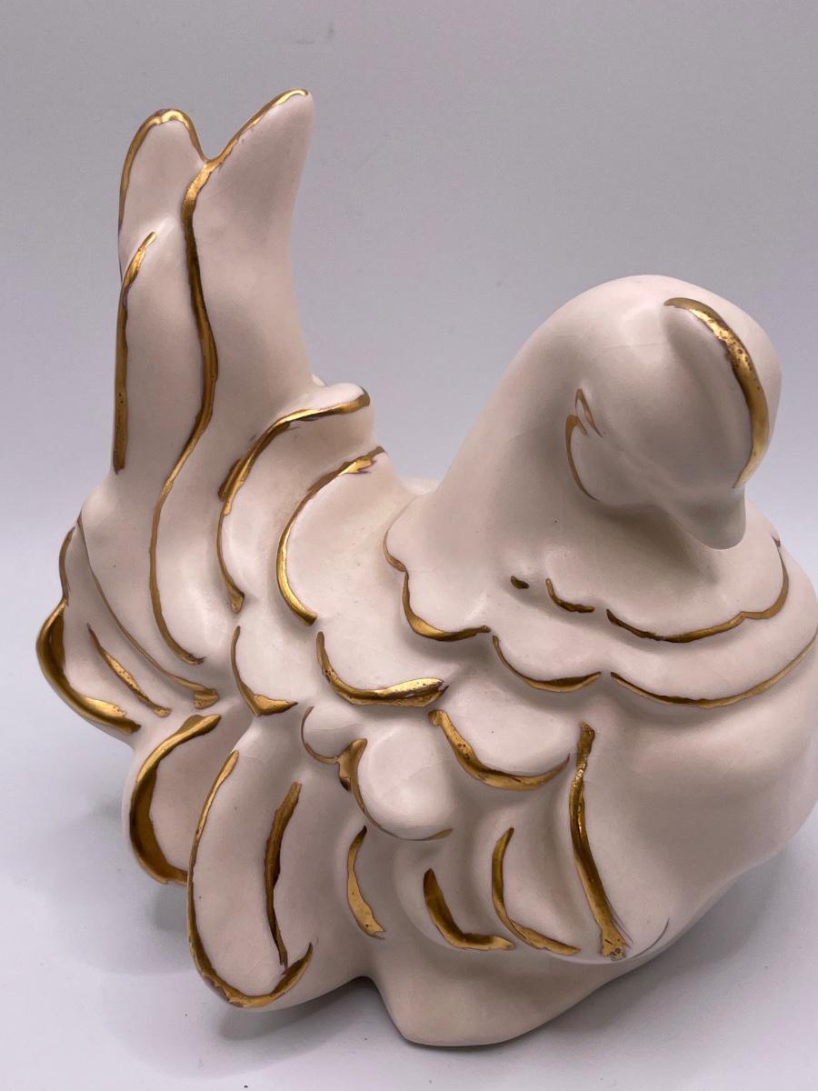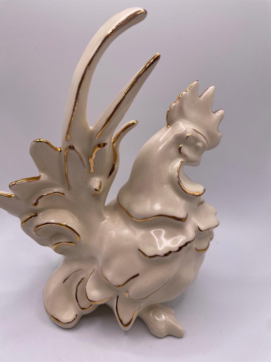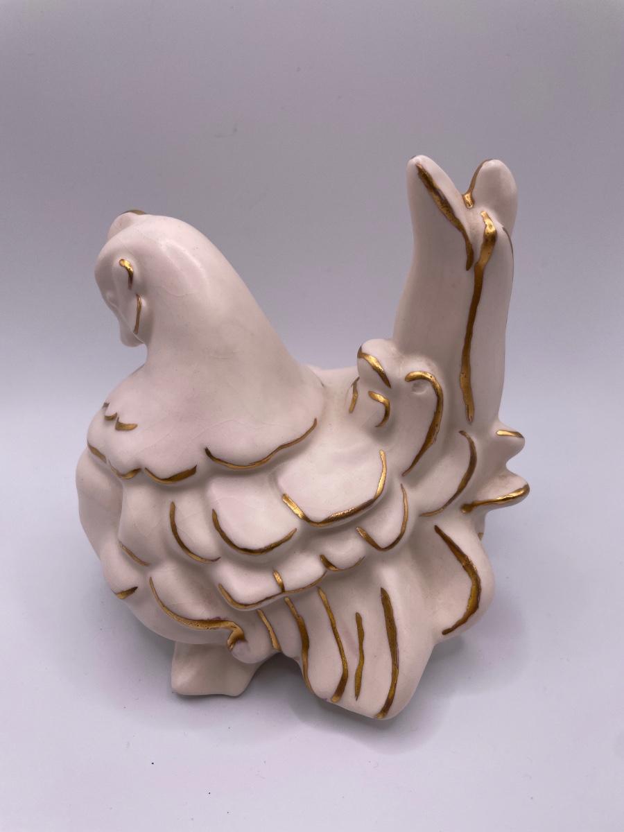 Hen, rooster and nest S&P shakers with cream and gold hen