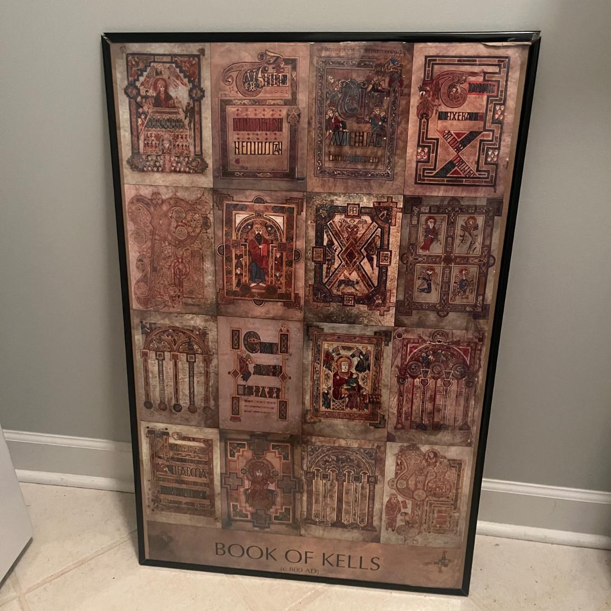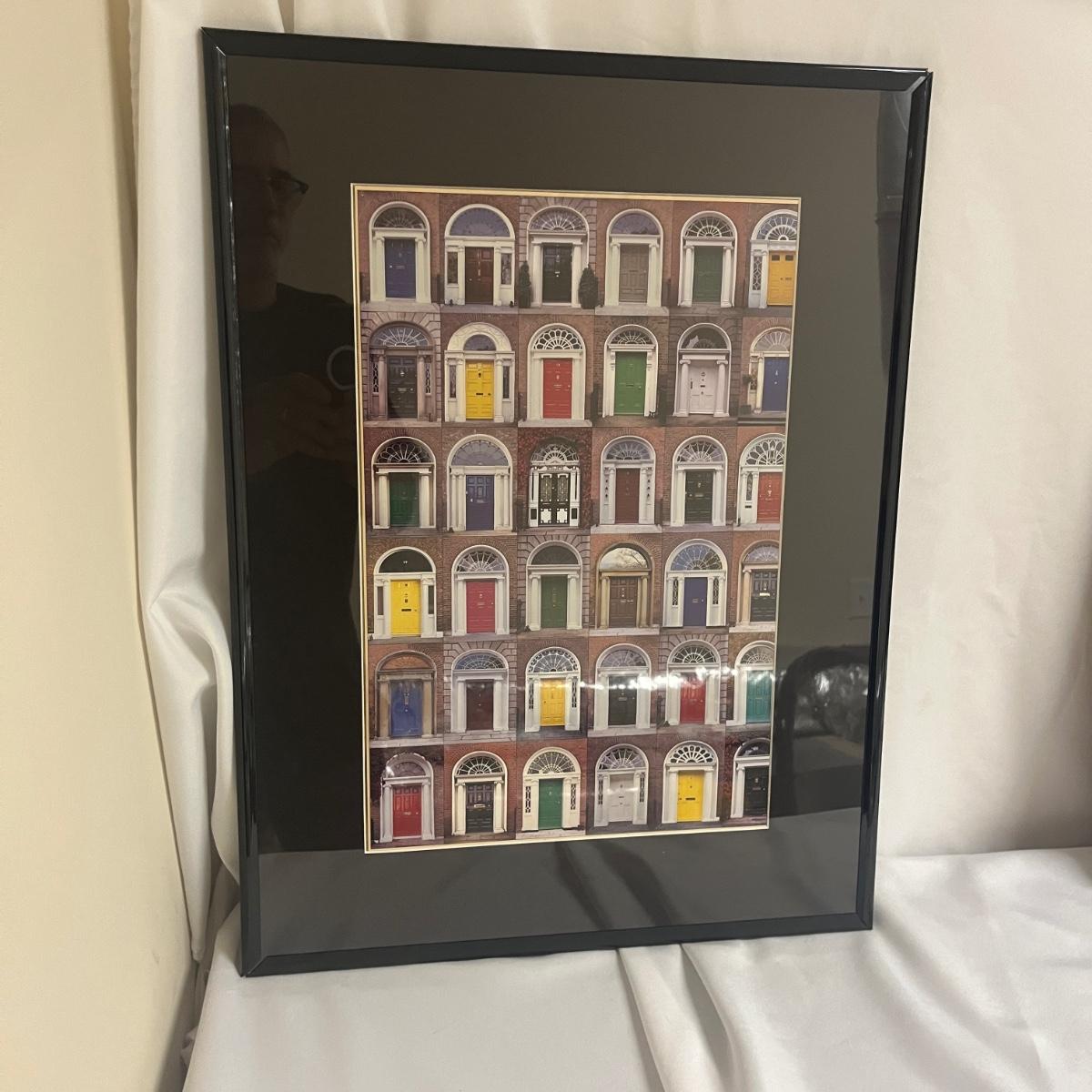 Lot includes a Hendersonville NC poster, poster of ornate and colorful front doors and a Book of Keels poster. All three are framed with plexiglass and clip on sides. Largest frame measures 22.5” x 34.5”.