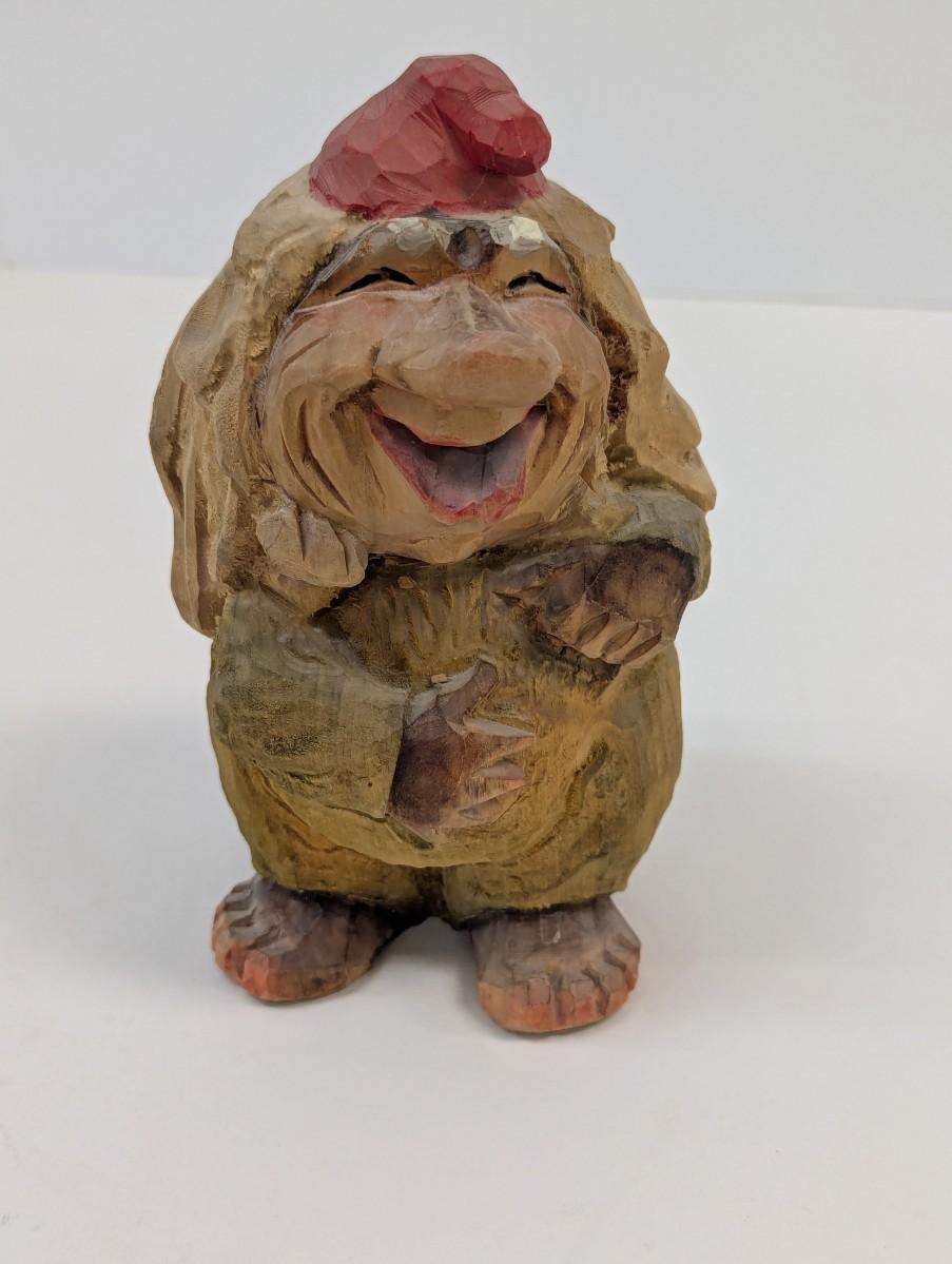 Henning Norway Hand Carved Wood Happy Troll With Cap