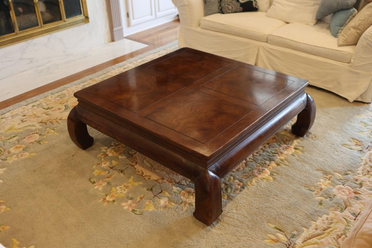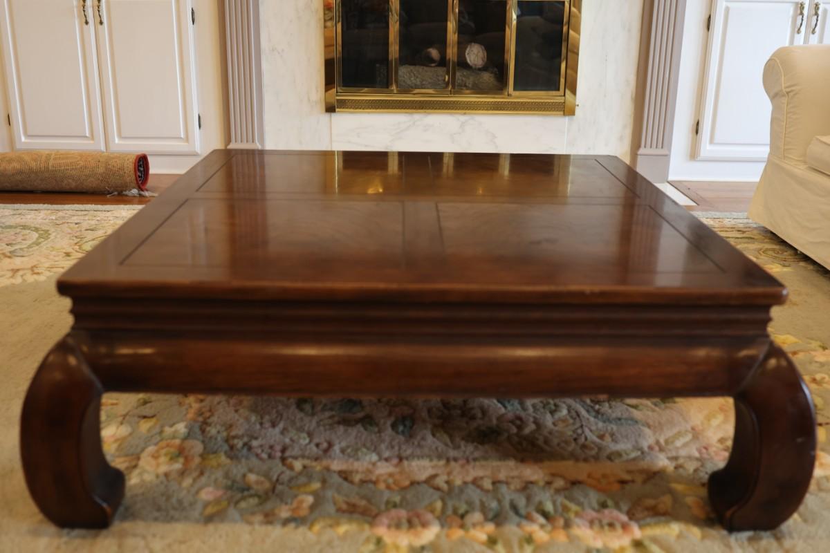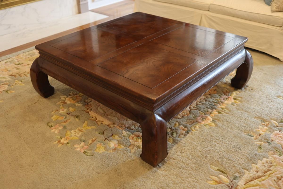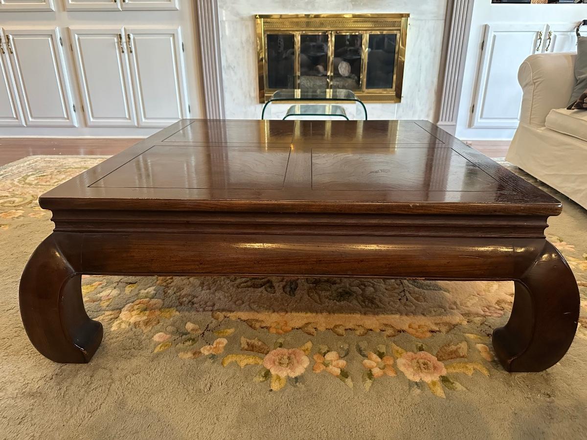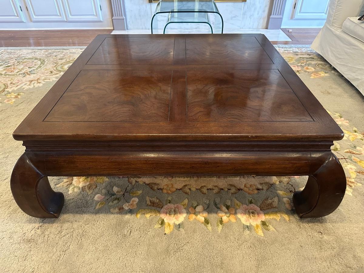 HENREDON Solid Chinoiserie Ming Style Oak and Burl Coffee Table