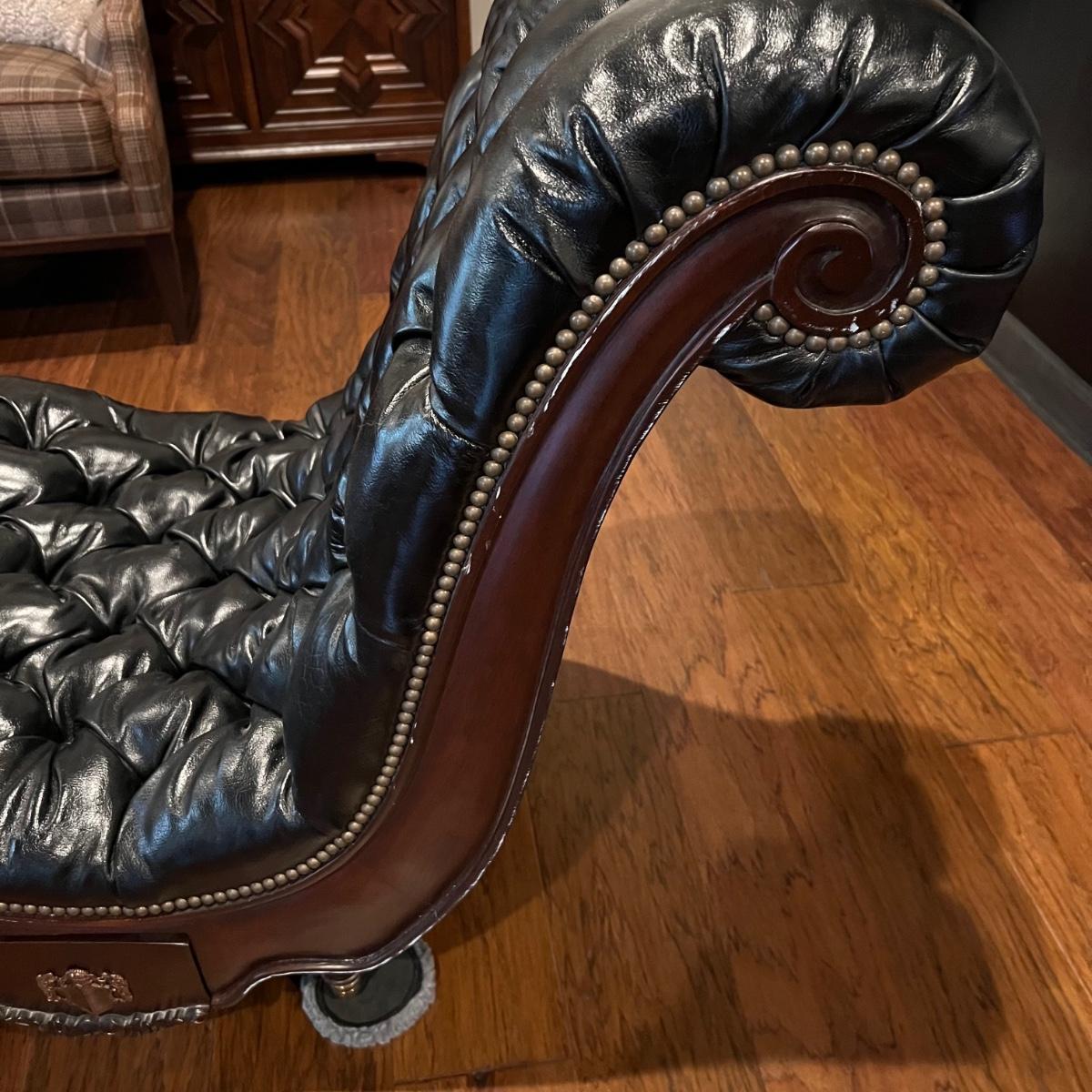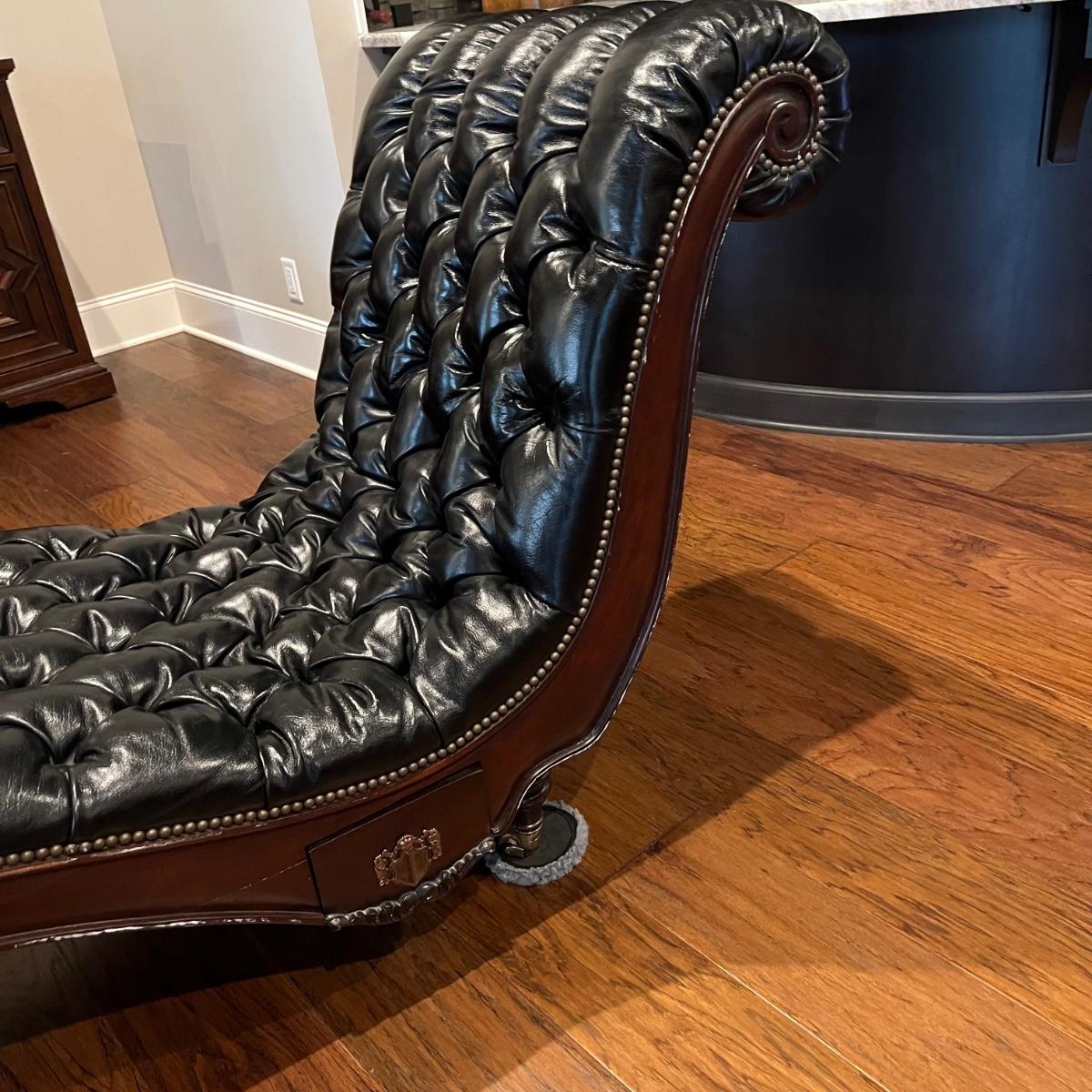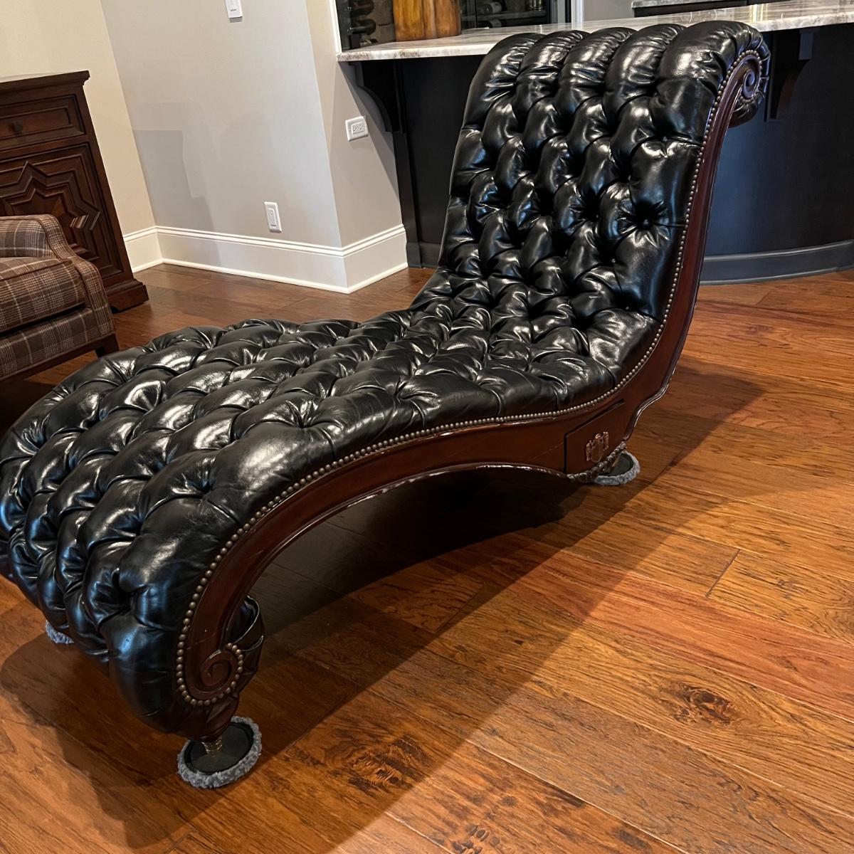 Henredon Button Tufted Leather Chaise (B2-RG)