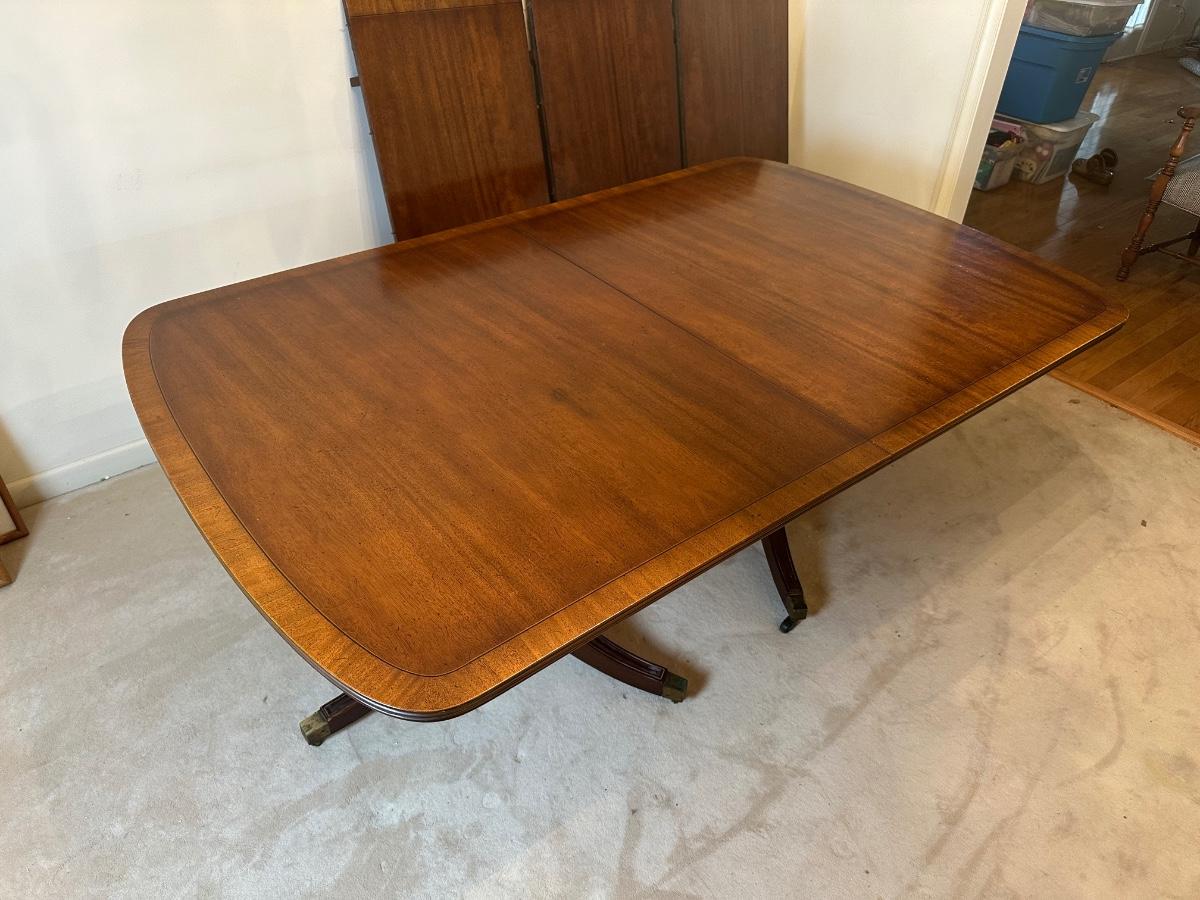 Henredon Mahogany Double-Pedestal Dining Table with Three Leaves