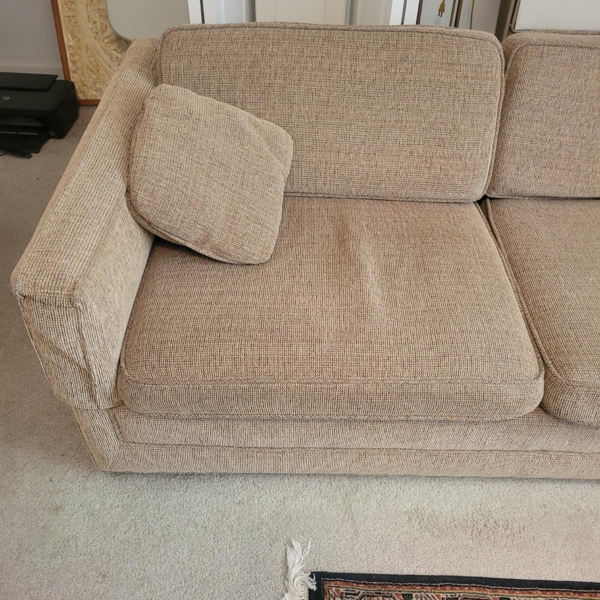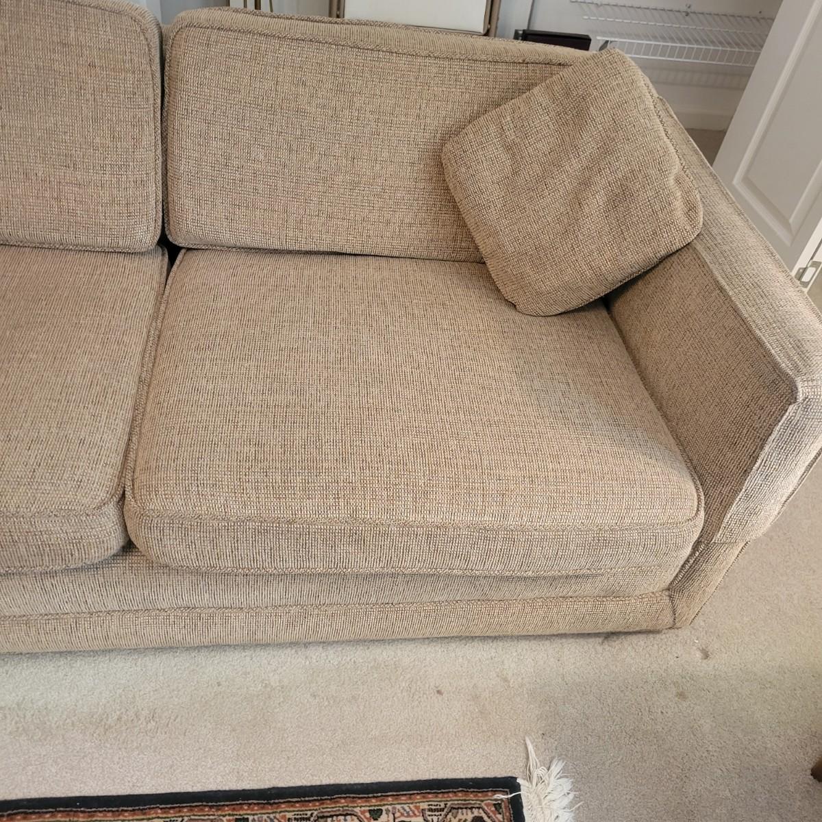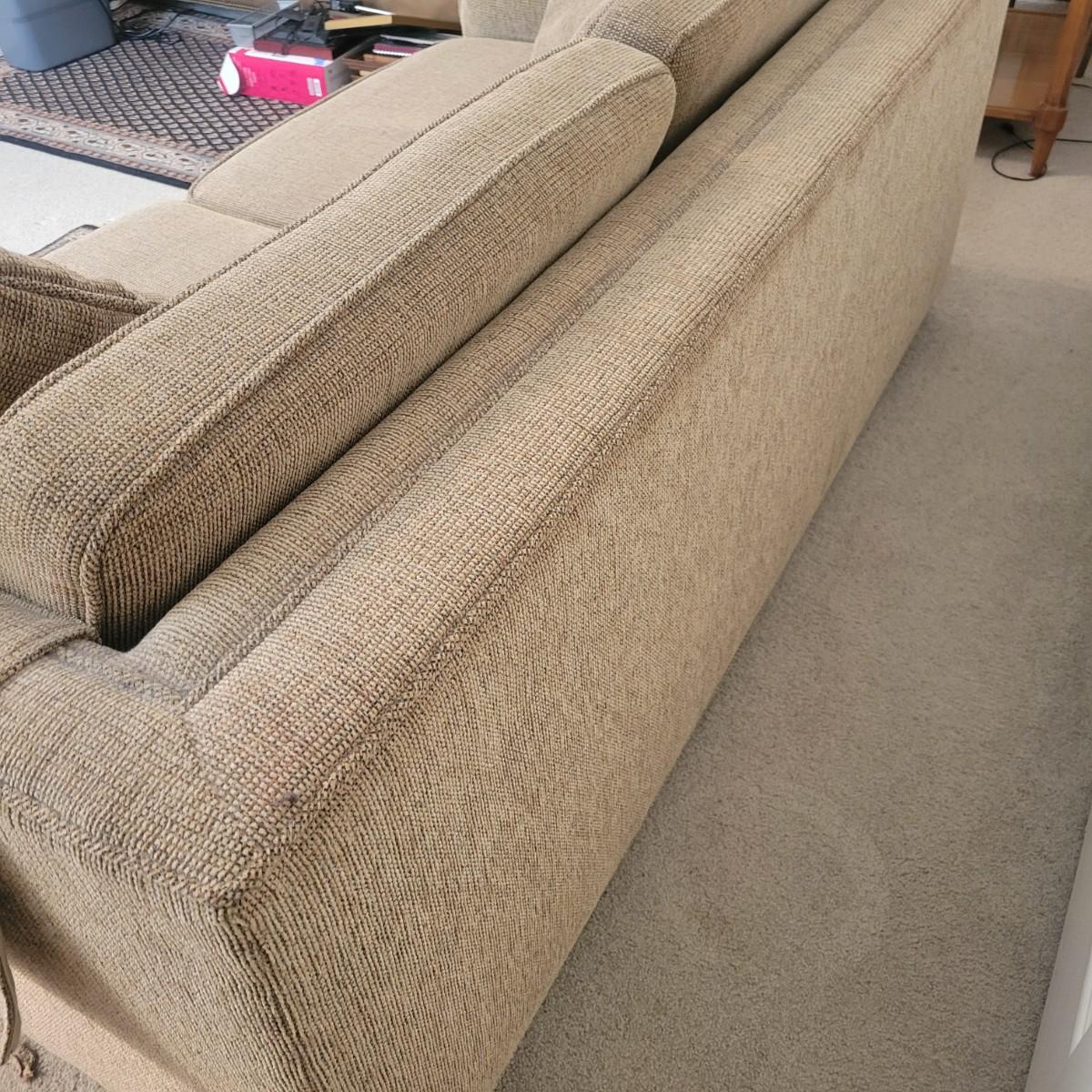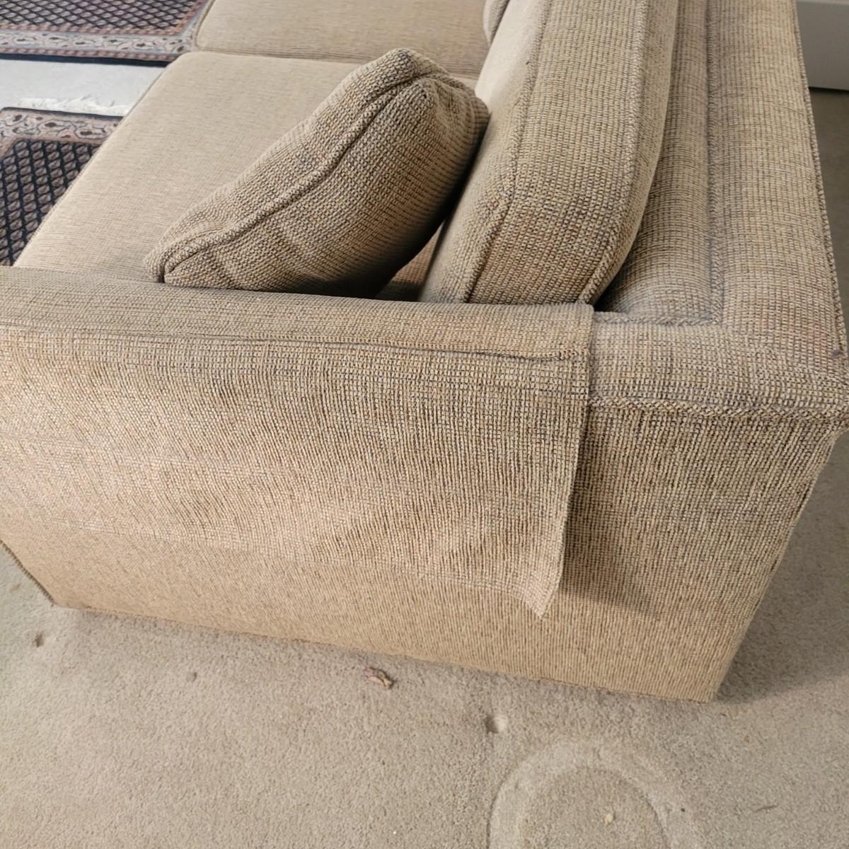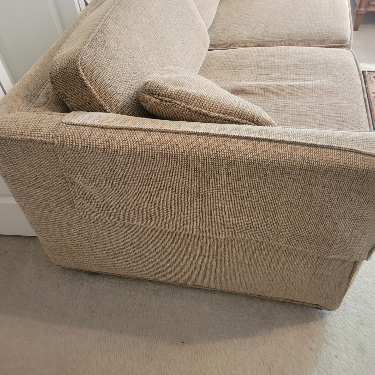 A Henredon sleeper sofa with no notable damage, stains or odors. This sofa comes with arm covers and matching pillows. The pull out is a full sized mattress. Sofa measures approximately 67.5" x 35.5" x 24" with a seat height of 16". Local pickup only. Winning bidder must bring assistance to help move and load this item due to its weight and/or size. The mattress is available to the winning bidder if desired, but the winning bidder is not required to take it.