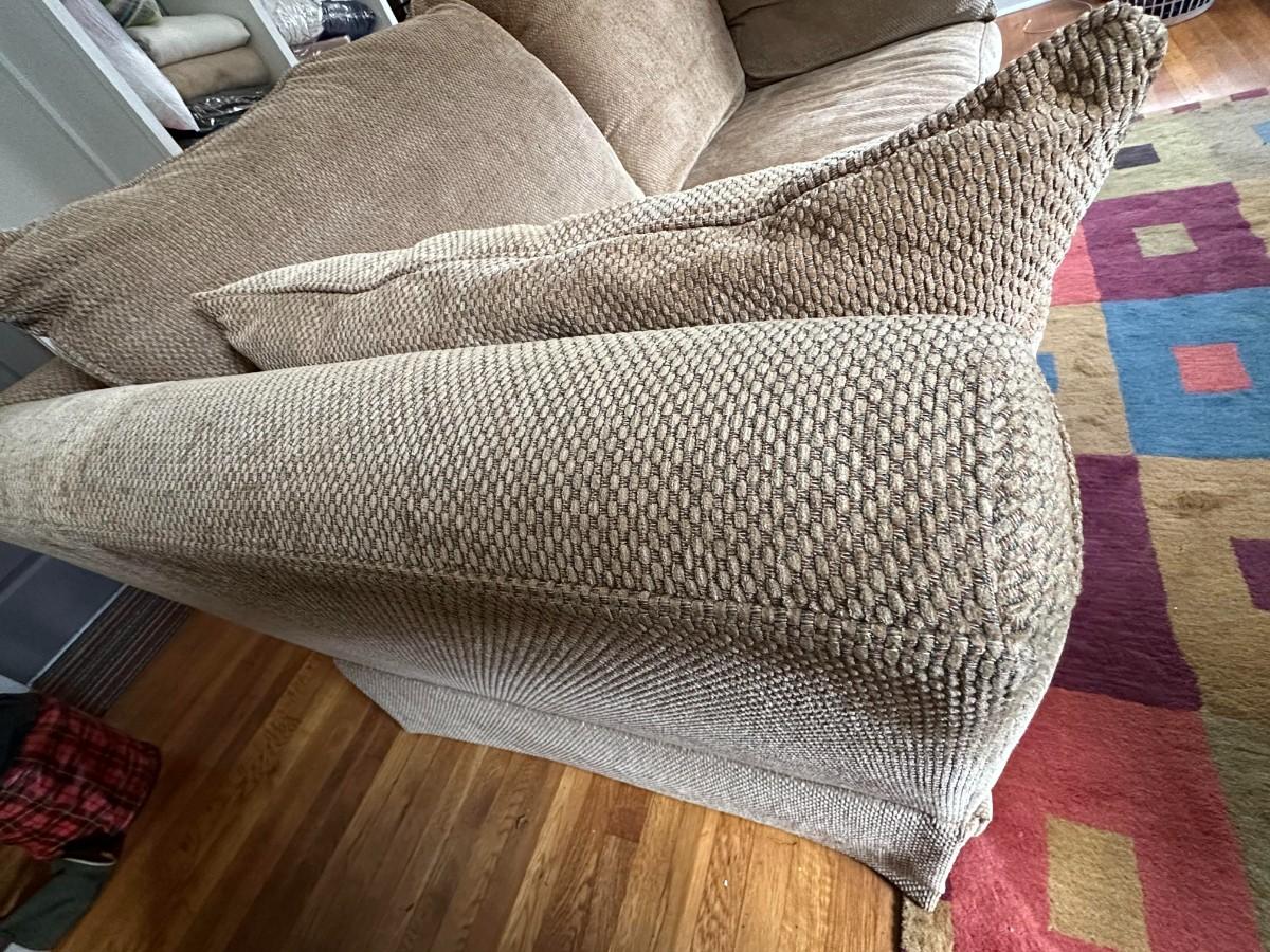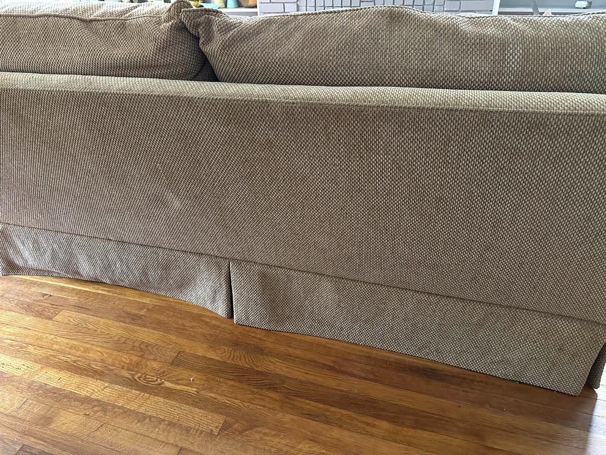 Measures 92"w x 44"d x 38"h. Includes 2 arm covers.