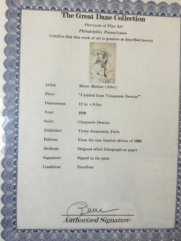 HENRI MATISSE Original Lithograph with COA. LOT B20