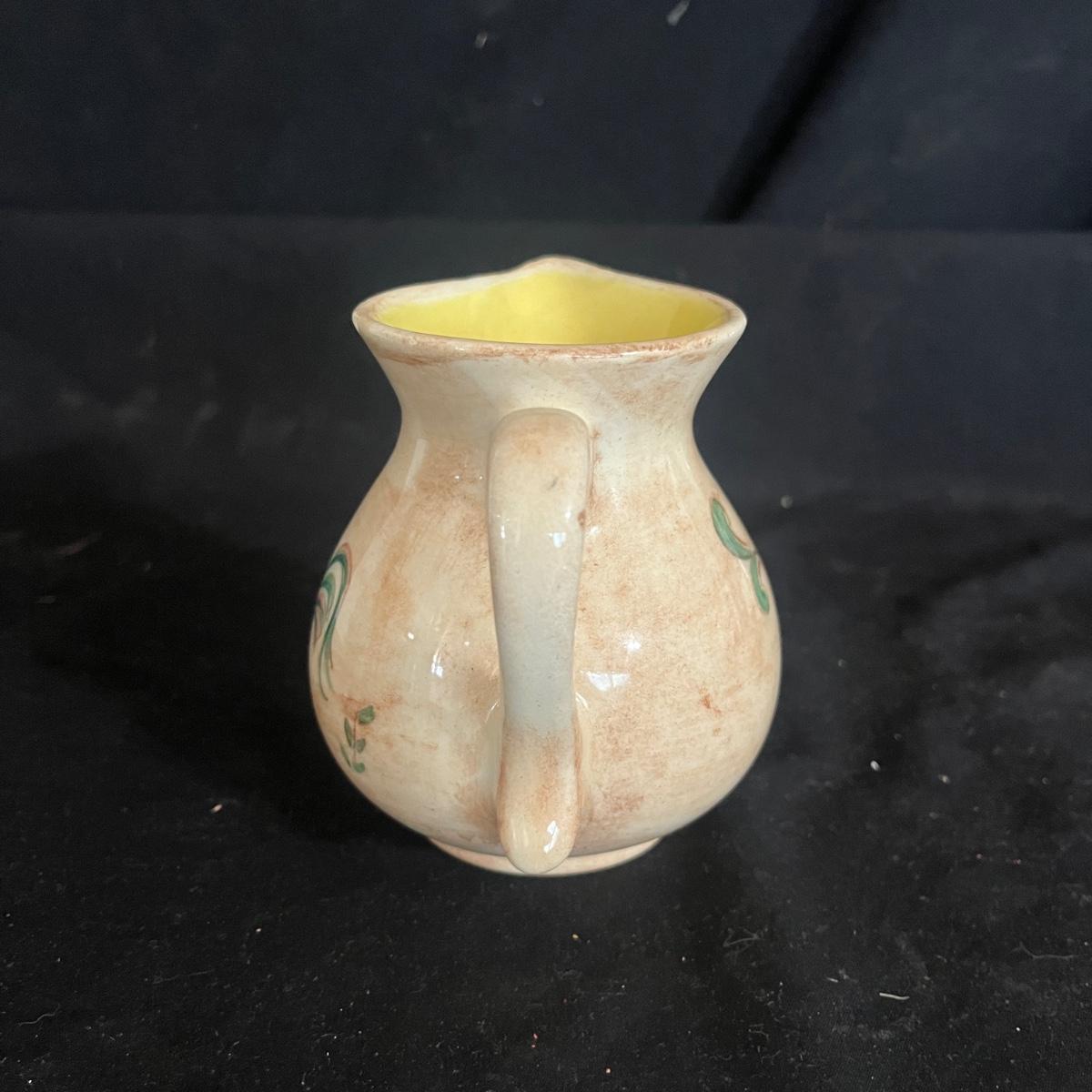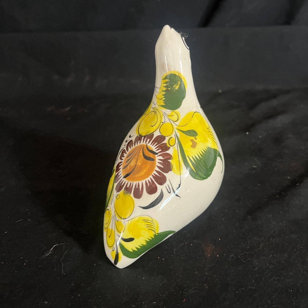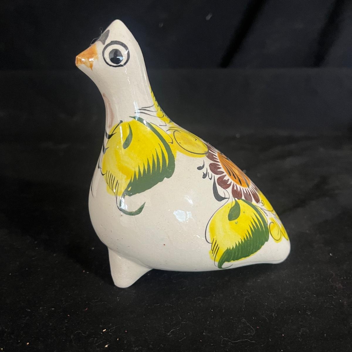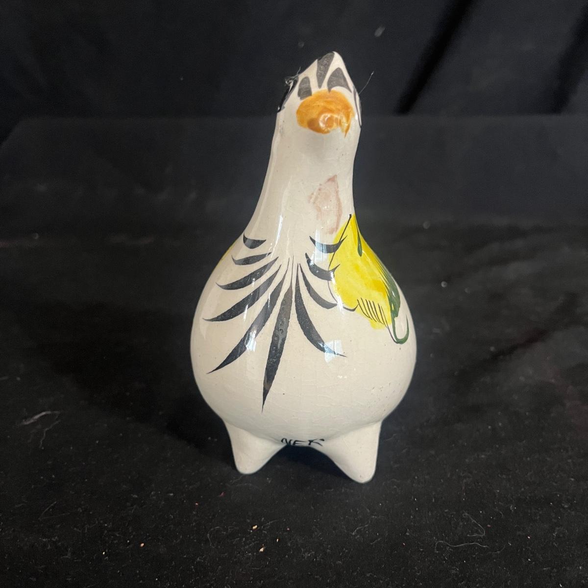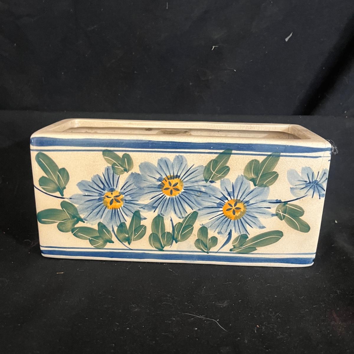 Lot includes Henriot Quimper ceramic dish and plate, four hand made ceramic coasters, two ceramic numbers, small ceramic pitcher, egg holder and bird figurine. Also includes a ceramic planter that measures 8” x 3” x 3.75”H. Planter has crack, see pictures.