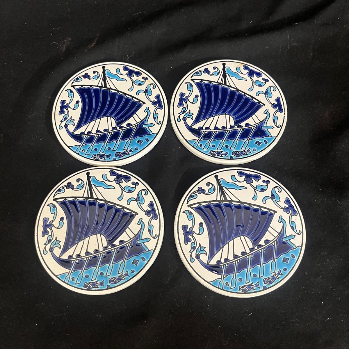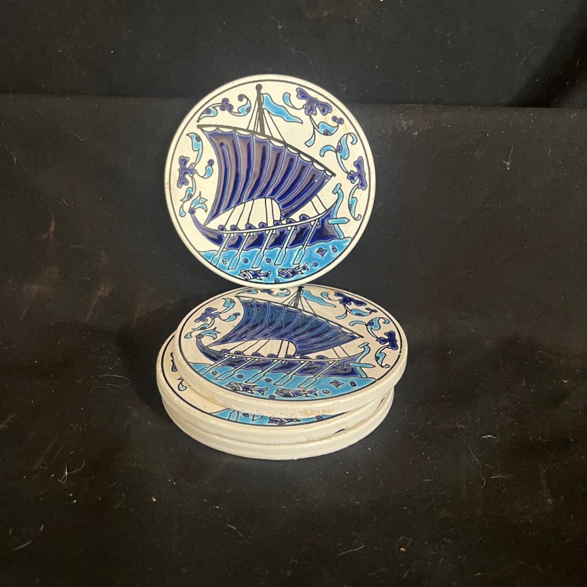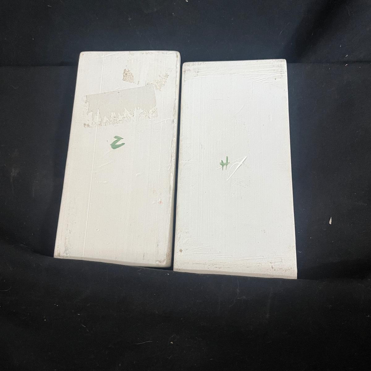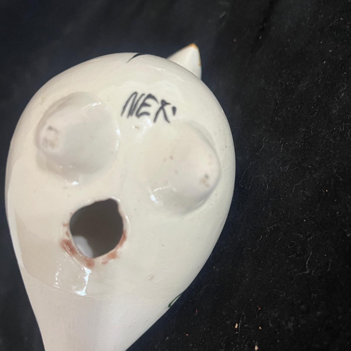 Lot includes Henriot Quimper ceramic dish and plate, four hand made ceramic coasters, two ceramic numbers, small ceramic pitcher, egg holder and bird figurine. Also includes a ceramic planter that measures 8” x 3” x 3.75”H. Planter has crack, see pictures.