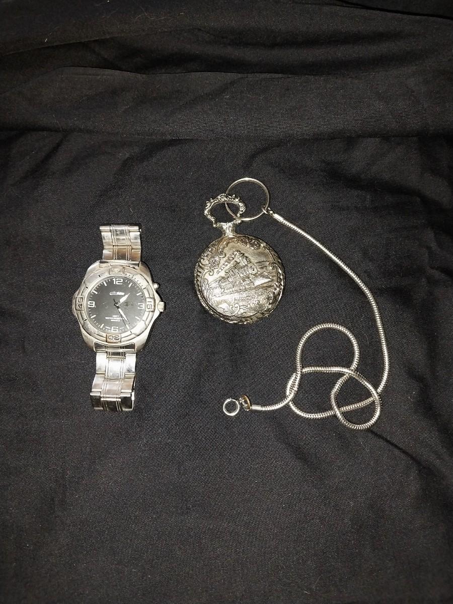 HENRY ANTIMAGNETIC POCKET WATCH AND MENS WATER RESISTENT SIVER TONE WRISTWATCH