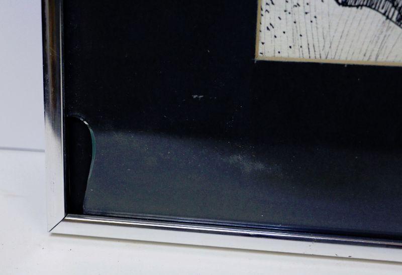 Vintage Ink artwork in fine collector's condition, framed, front glass is cracked at one corner - see pictures. Image - 16" x 20", Frame - 22" x 26.5"", Signed lower right: Henry Kallem.