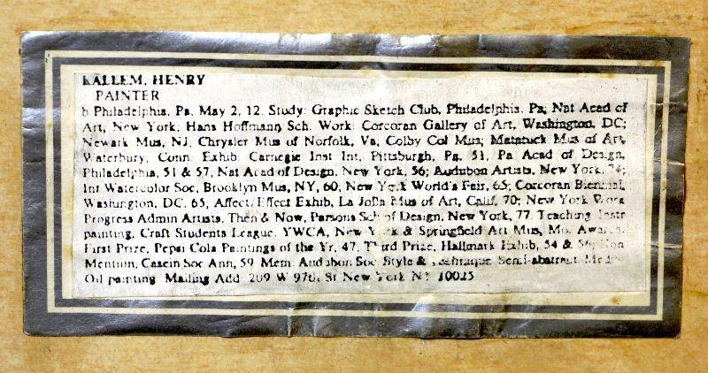 Vintage Ink artwork in fine collector's condition, framed, front glass is cracked at one corner - see pictures. Image - 16" x 20", Frame - 22" x 26.5"", Signed lower right: Henry Kallem.