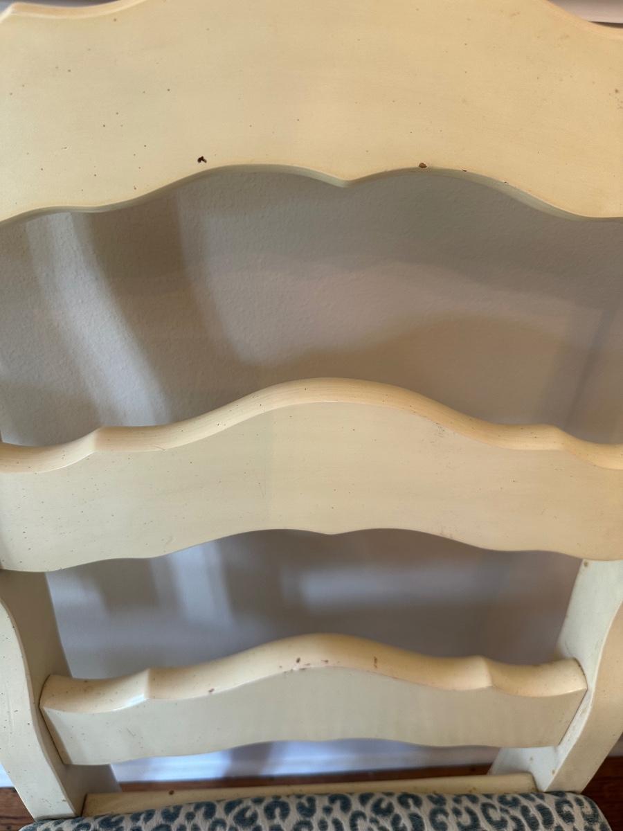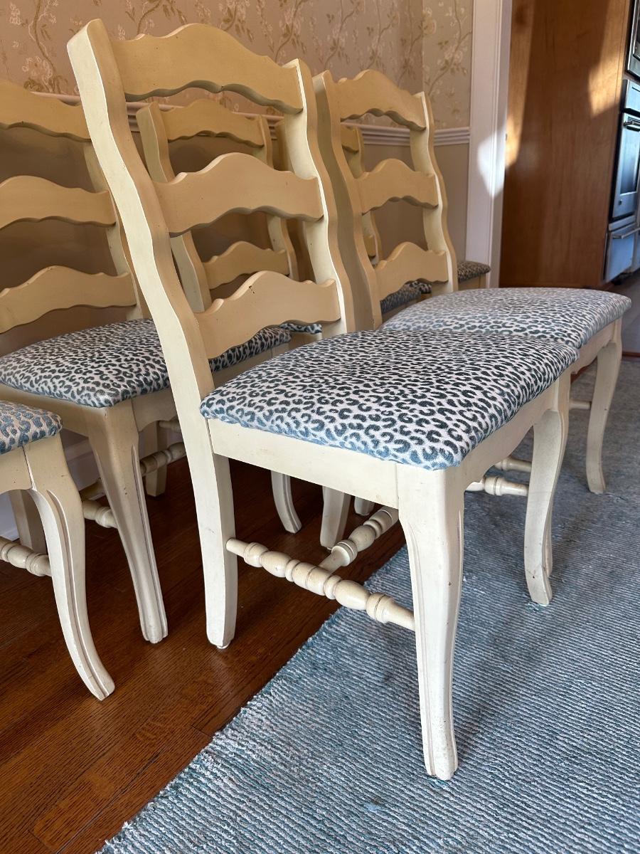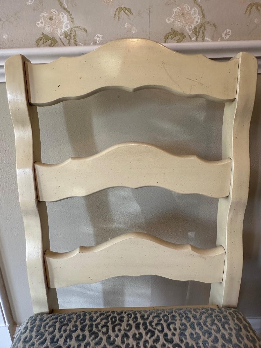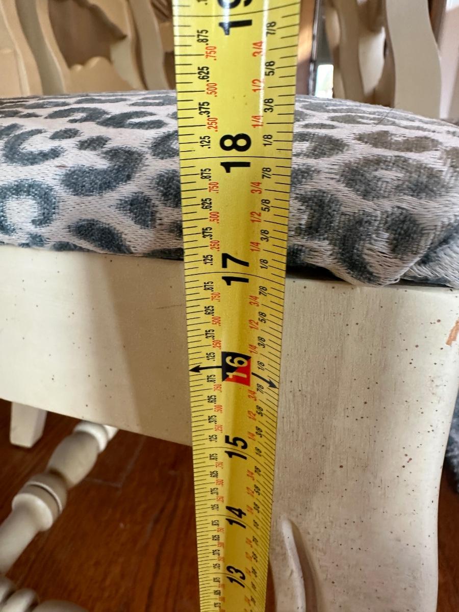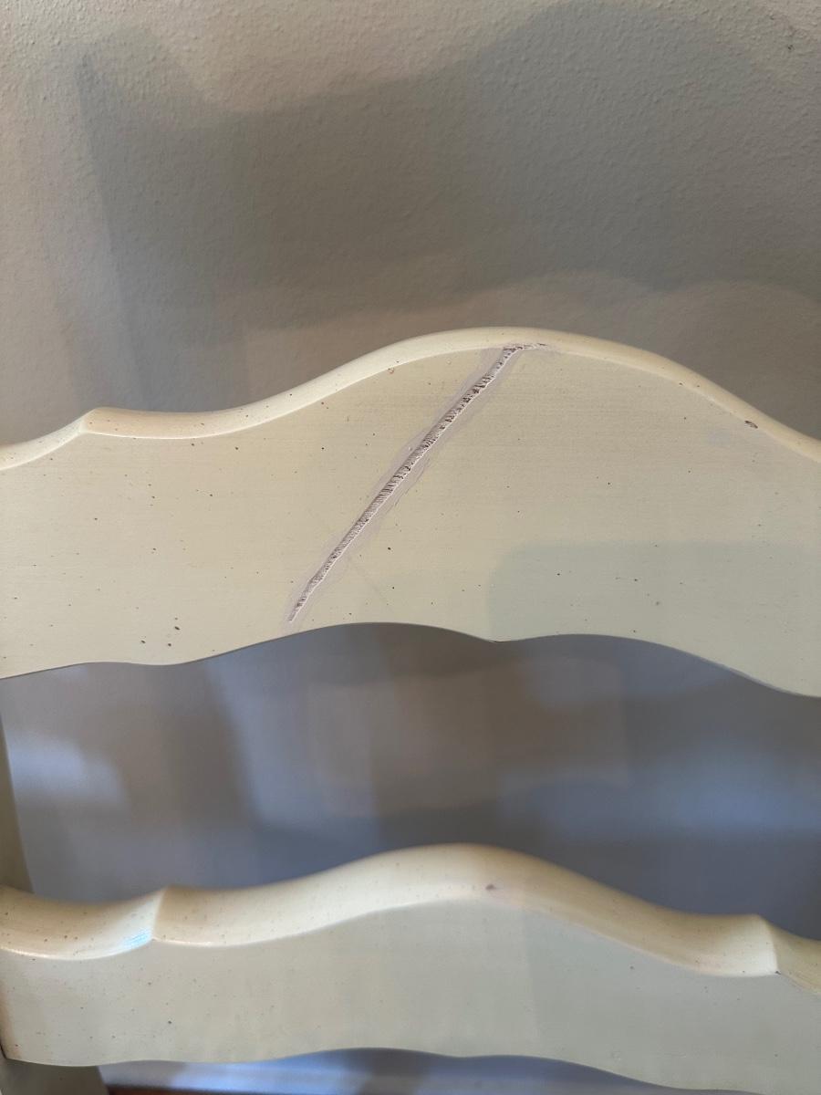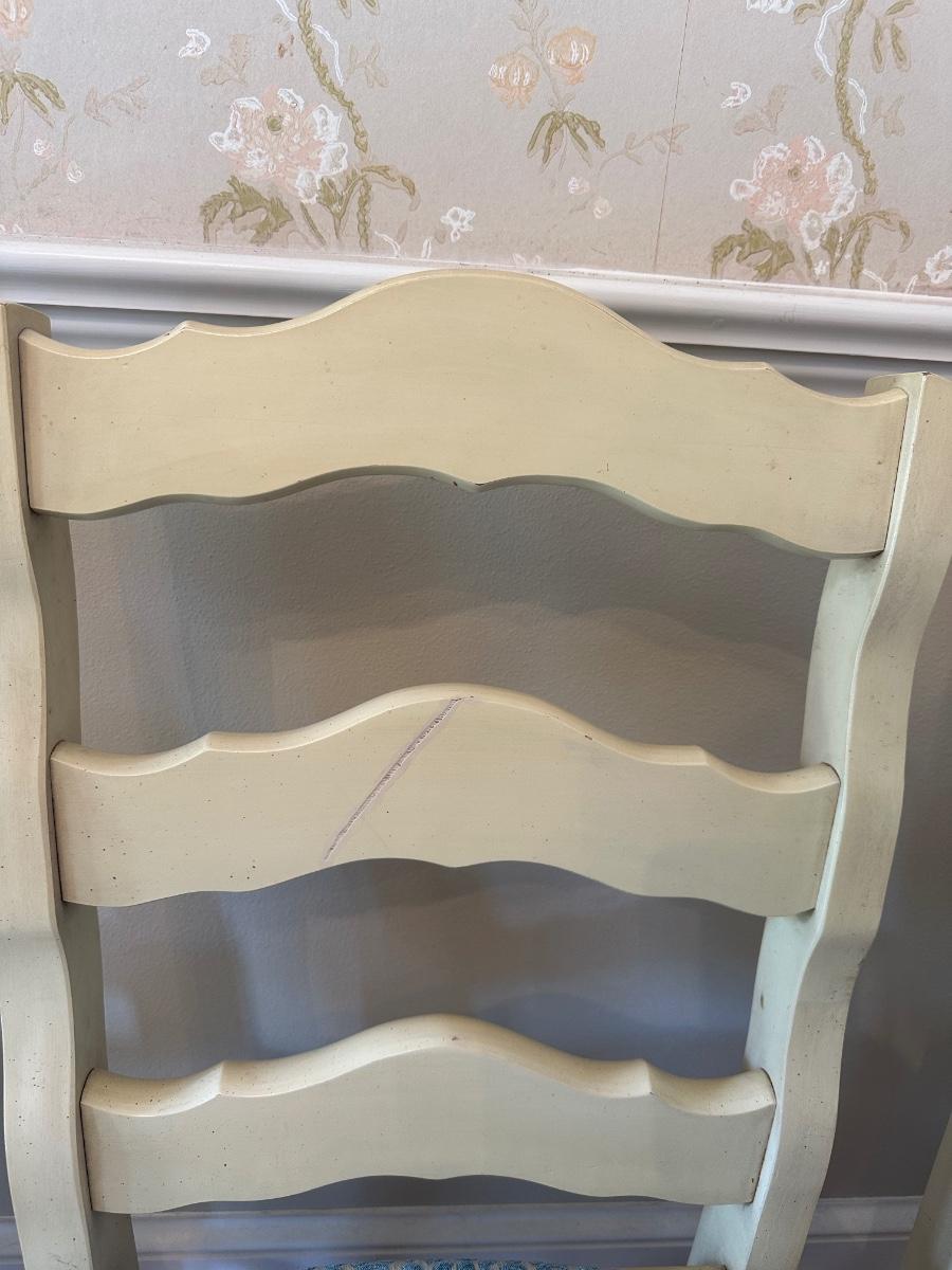 Comes with extra fabric for seat covers! One seat does have a little mark, could possibly come out with proper cleaning. The wood has some scratches, see pictures. .