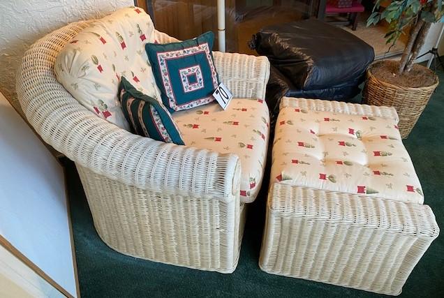 LOT#70: Henry Link Wicker Chair & Ottoman