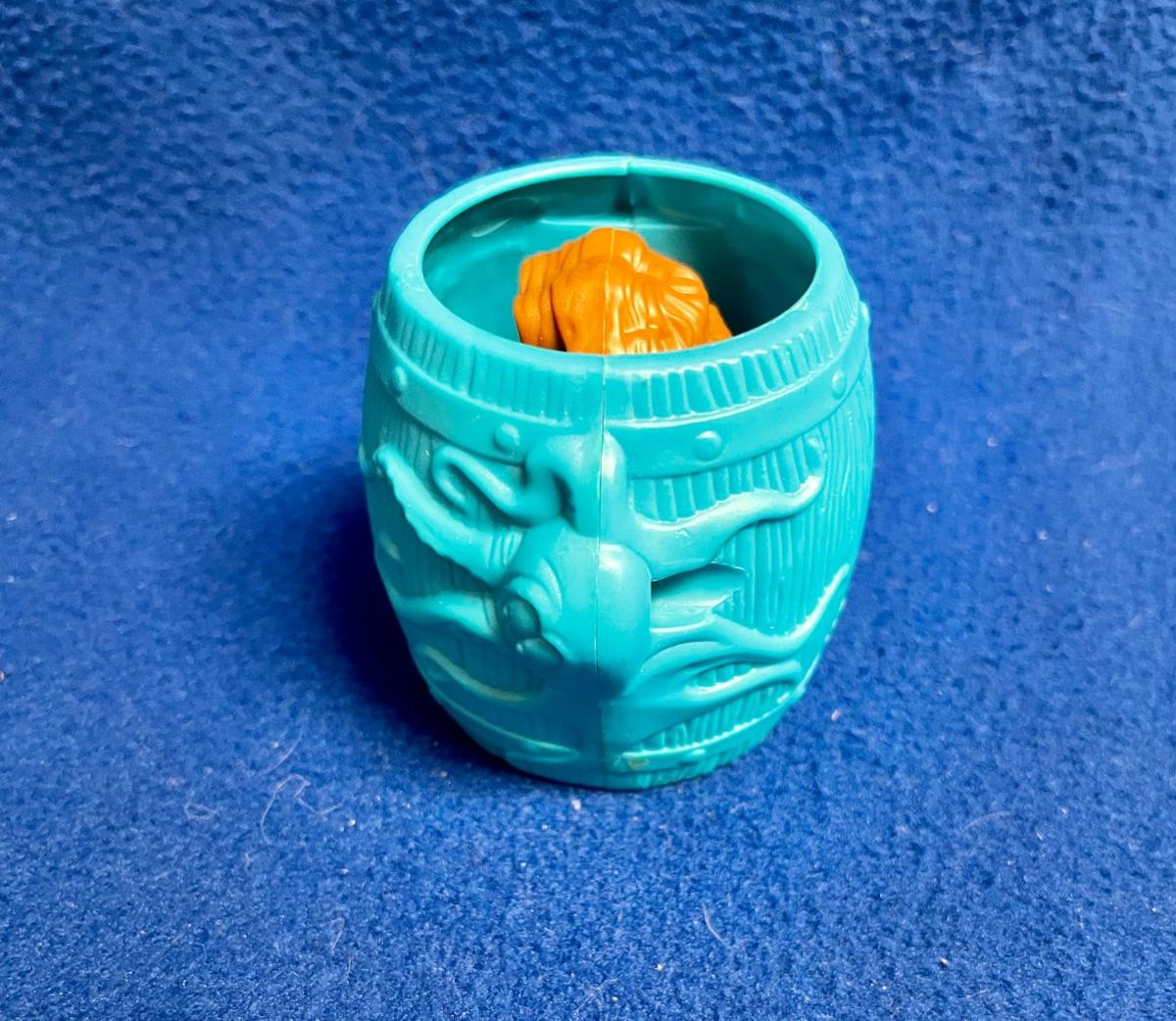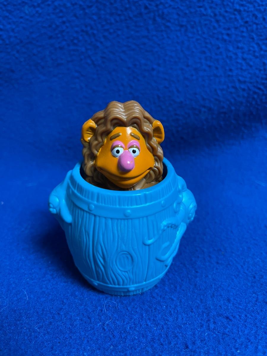 1995 Fozzie Bear in Barrel Sesame Street McDonalds Happy Meal Toy. Head pops up using push putting on bottom.