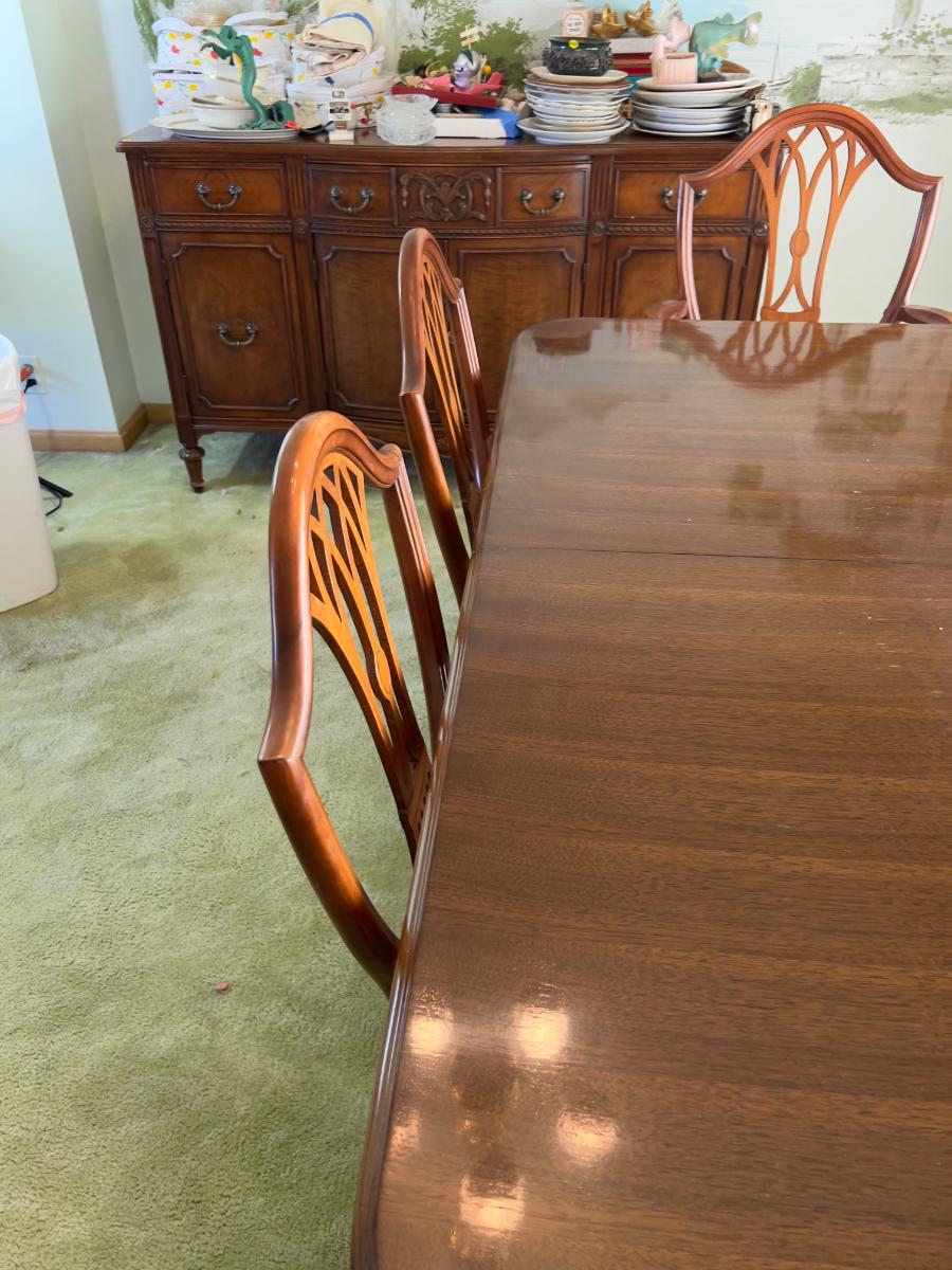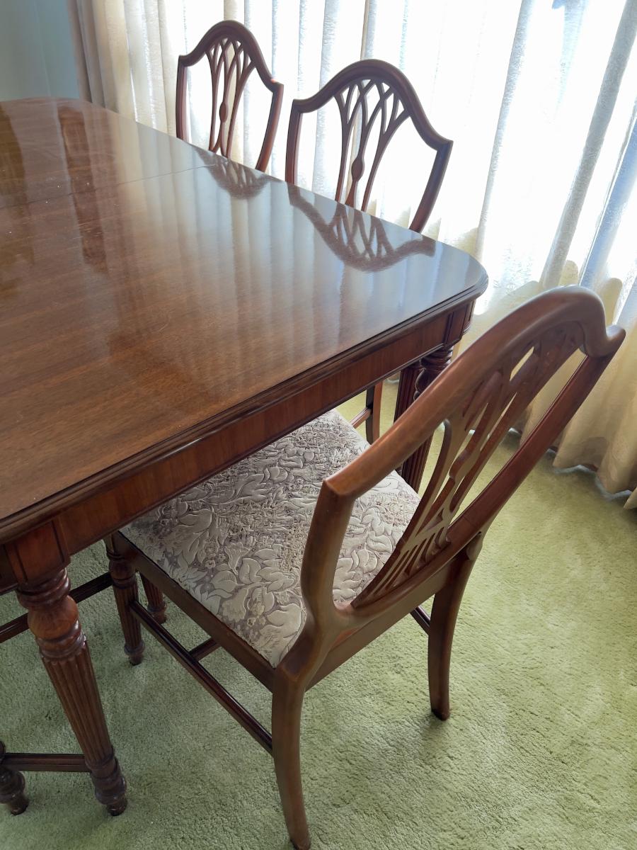 Hepplewhite Sheridan Style Dining Table with Sheild Back Chairs