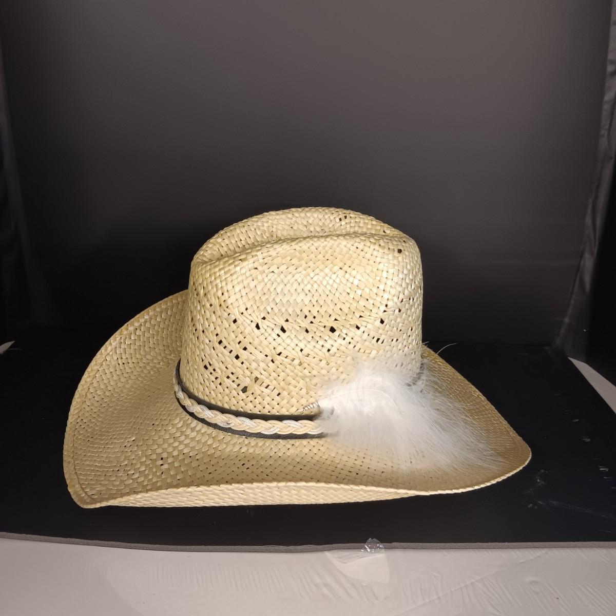 HER VINTAGE LARRY MAHAN'S STRAW WESTERN HAT SIZE 7