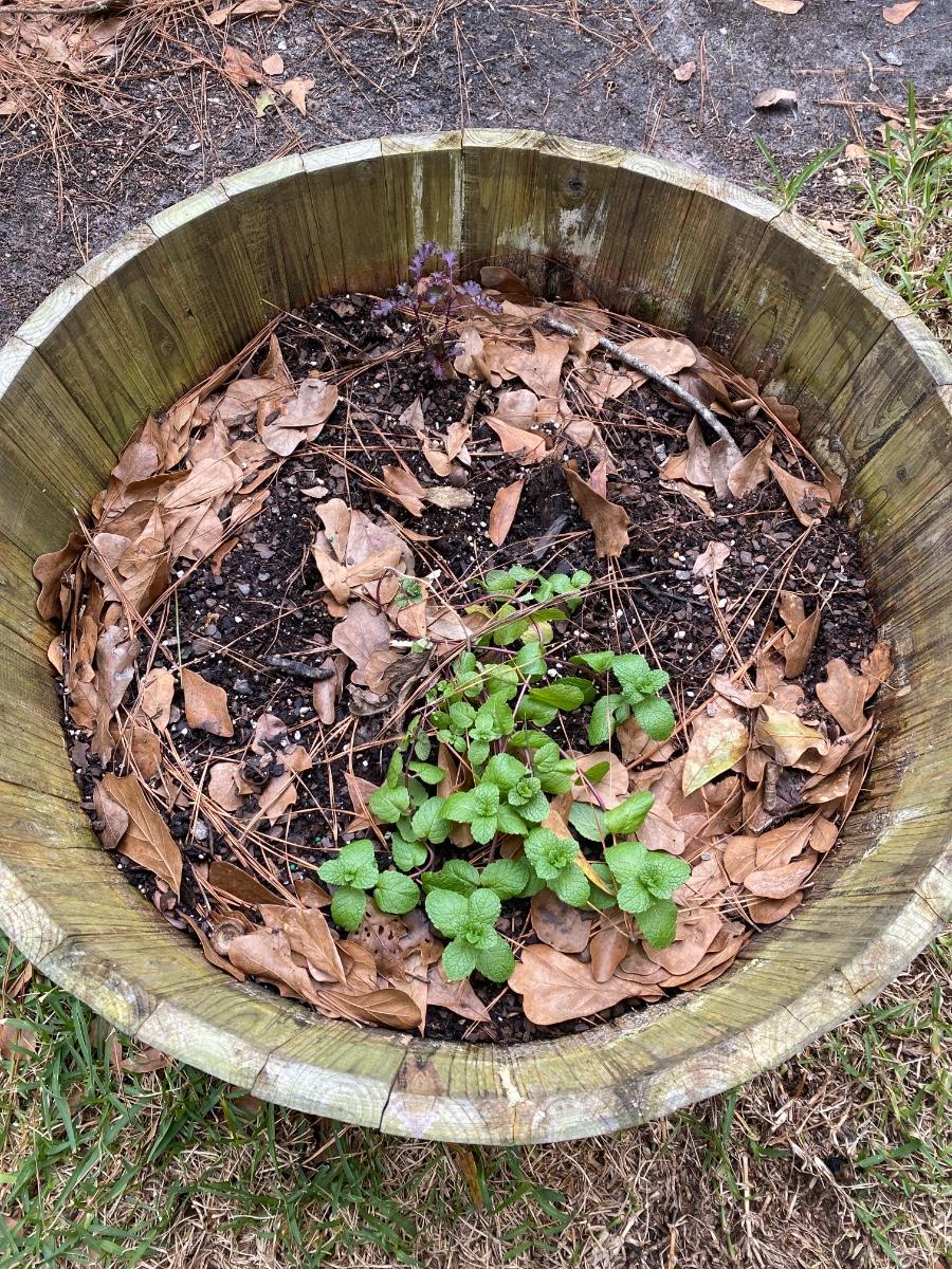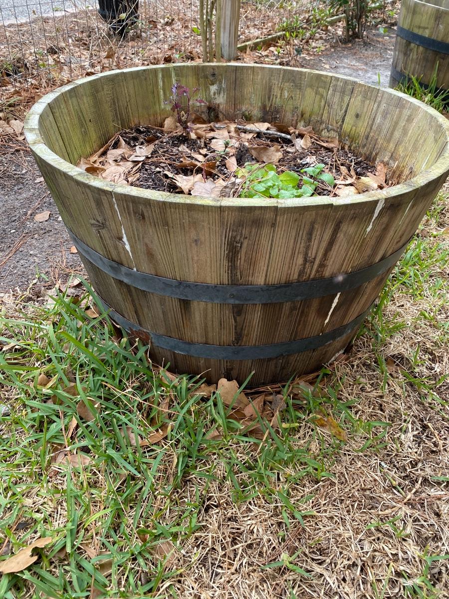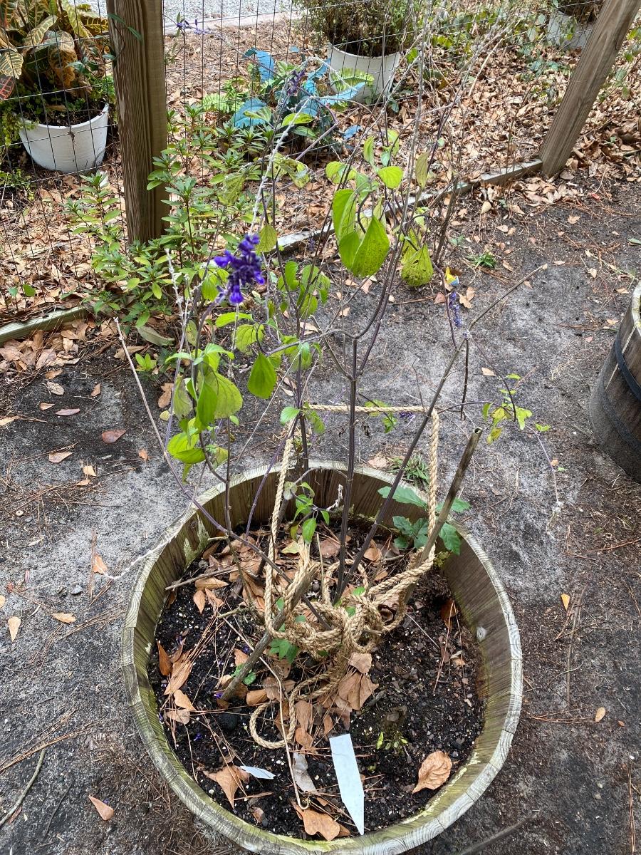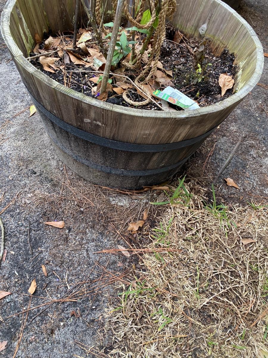 Includes a large blue basil plant. Each planter is very heavy and measures 27" diam. x 16"h. On the side of the house. First one in from brick patio and third one.