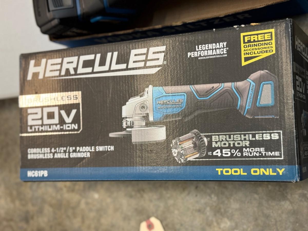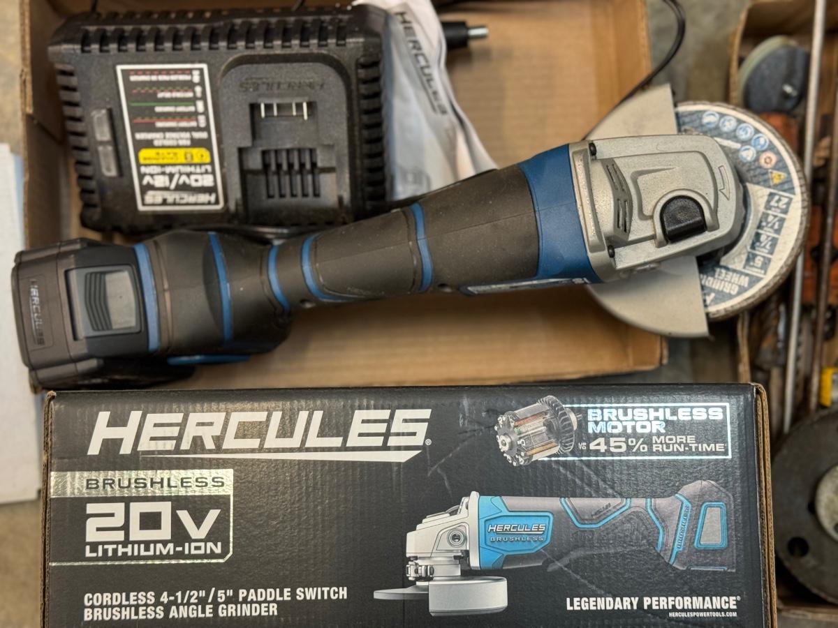 HERCULES 20V 4 1/2" PADDLE SWITCH BRUSHLESS ANGLE GRINDER tested