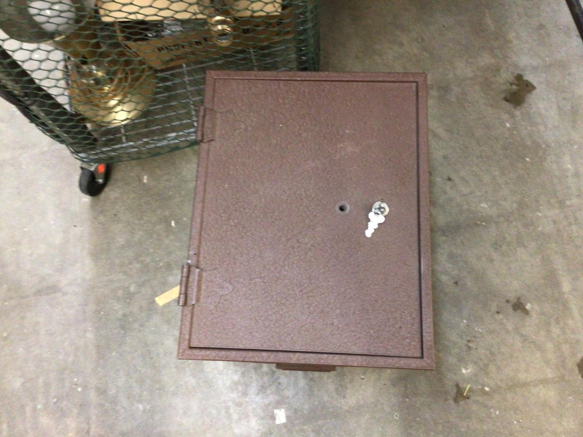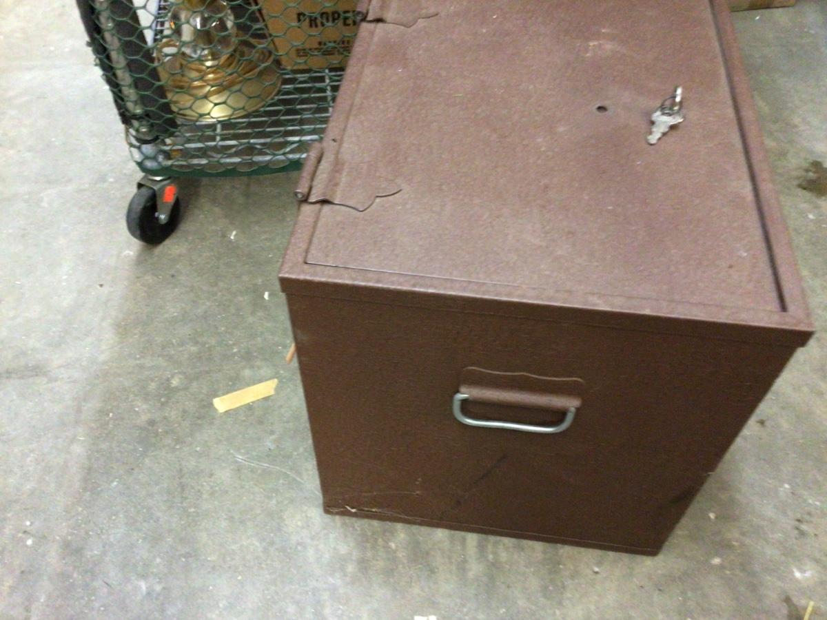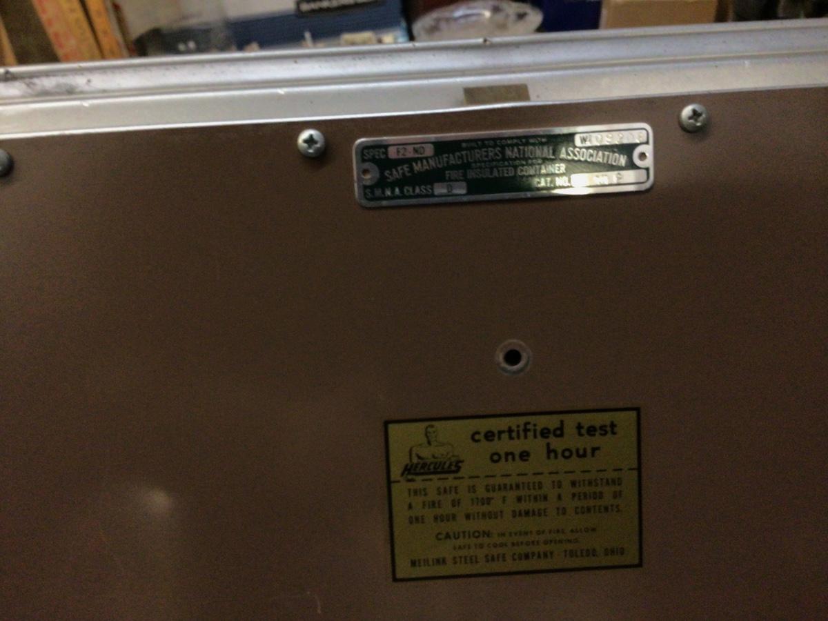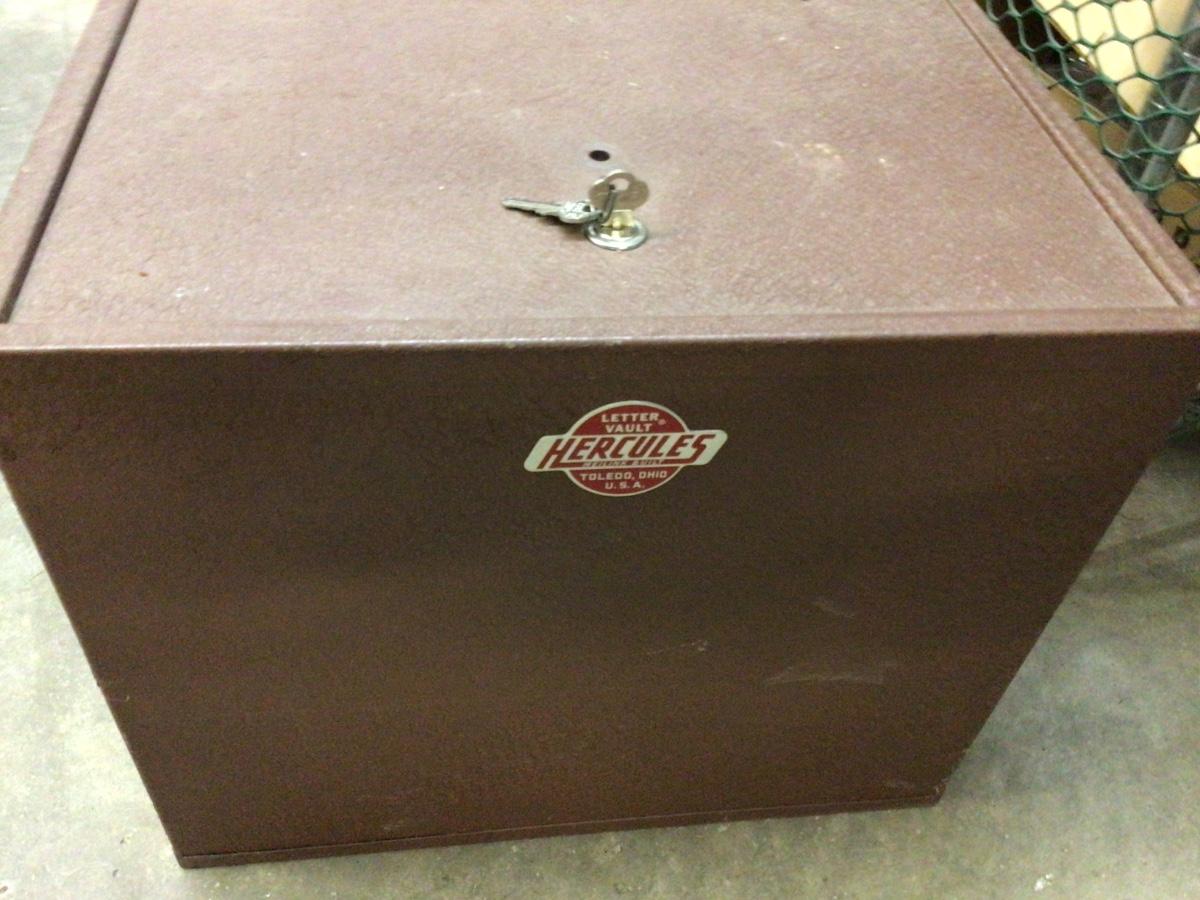 You get this great Hercules industrial safe. It does have the key, but is missing the handle, but that should be an easy fix.